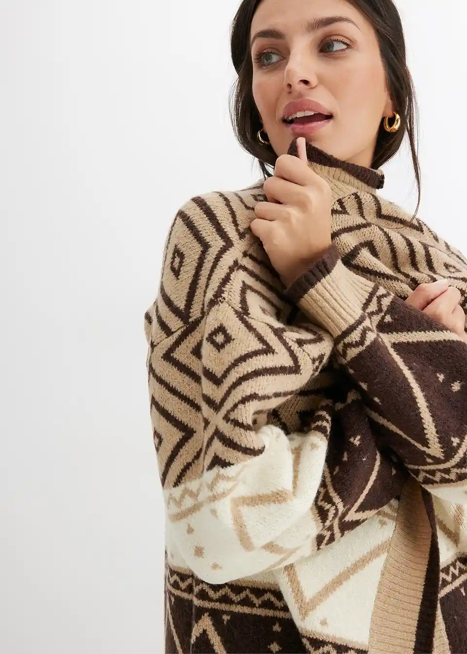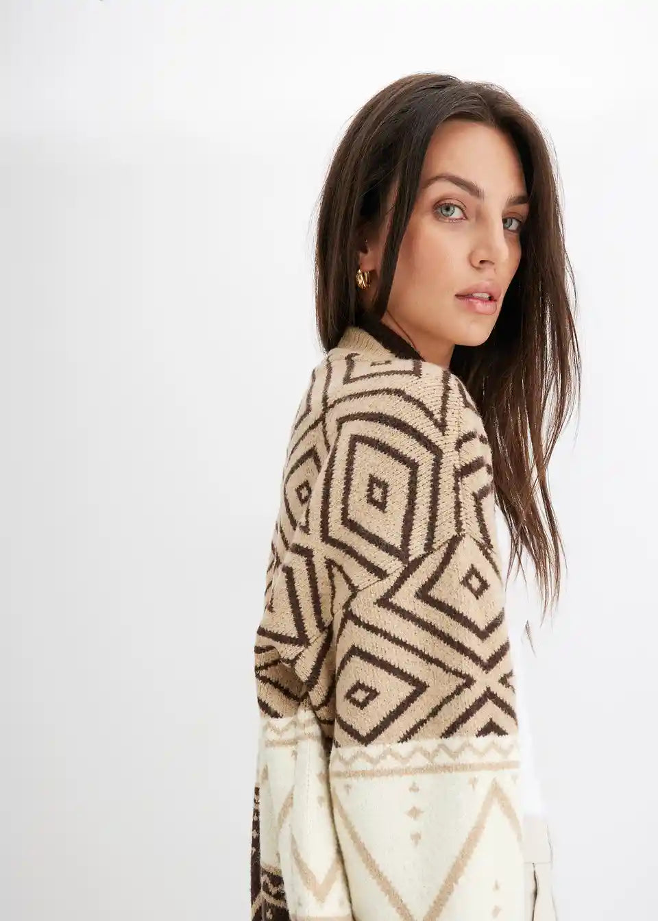 Moderan i ženstven: Oversized kardigan s grafičkim Jacquard-uzorkom