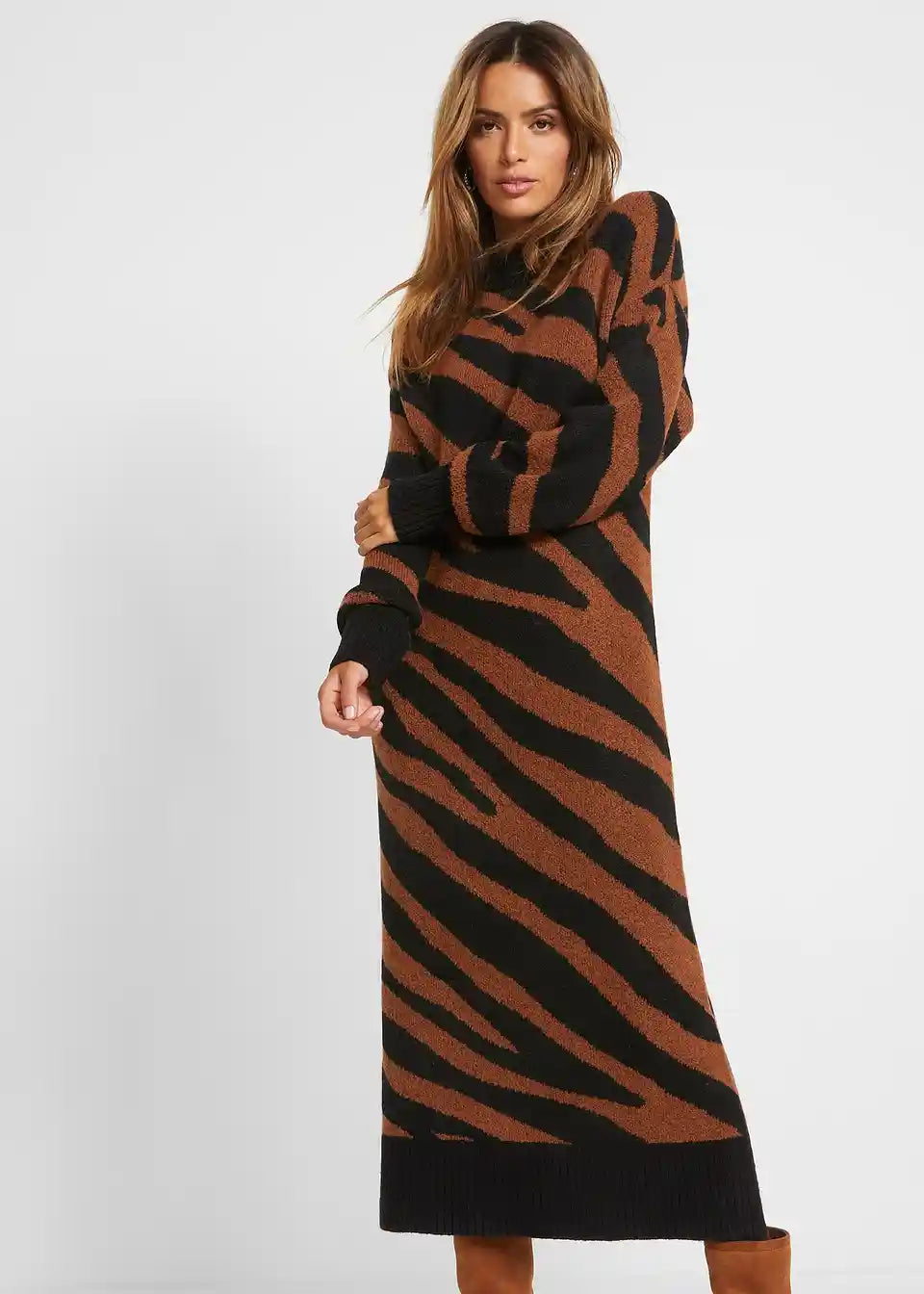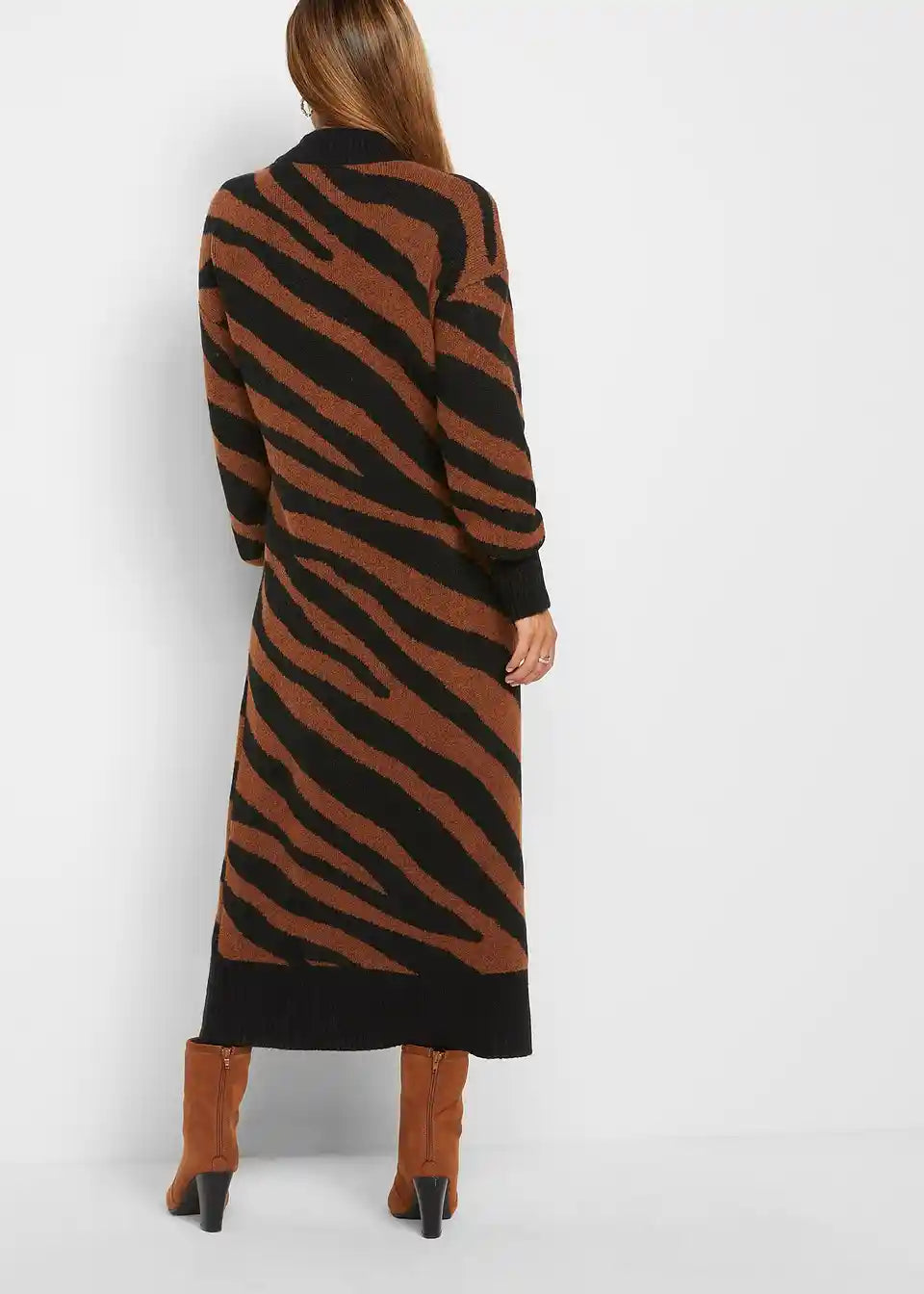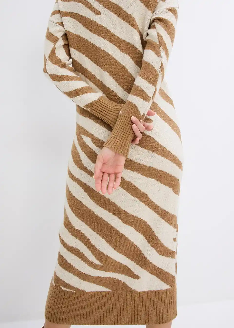 Klasična maxi pletena haljina s visokim ovratnikom