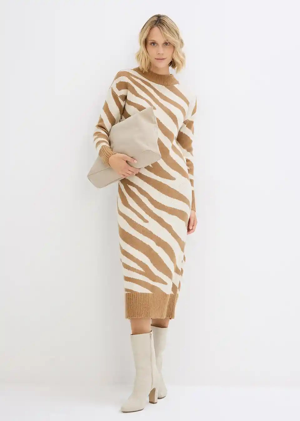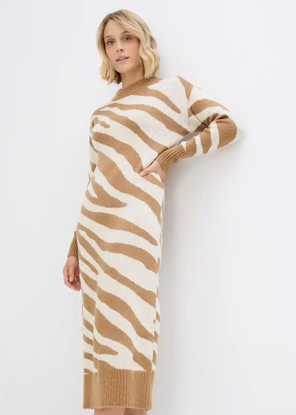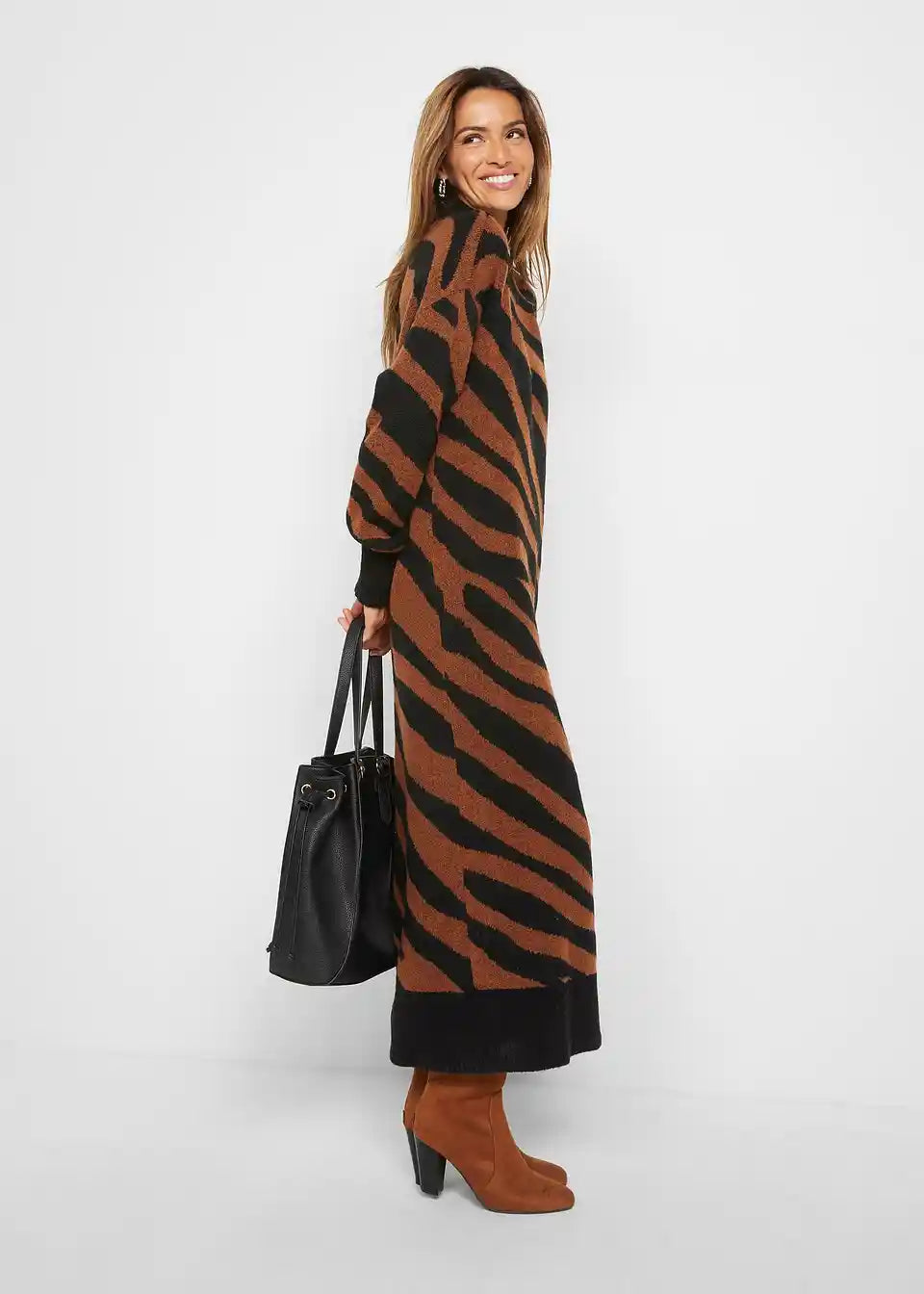 Klasična maxi pletena haljina s visokim ovratnikom