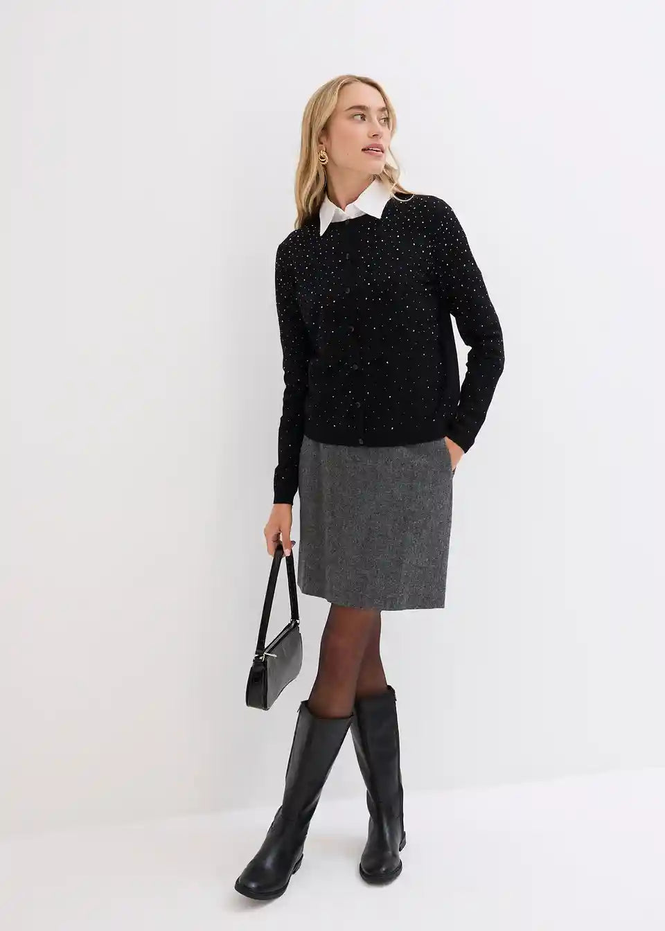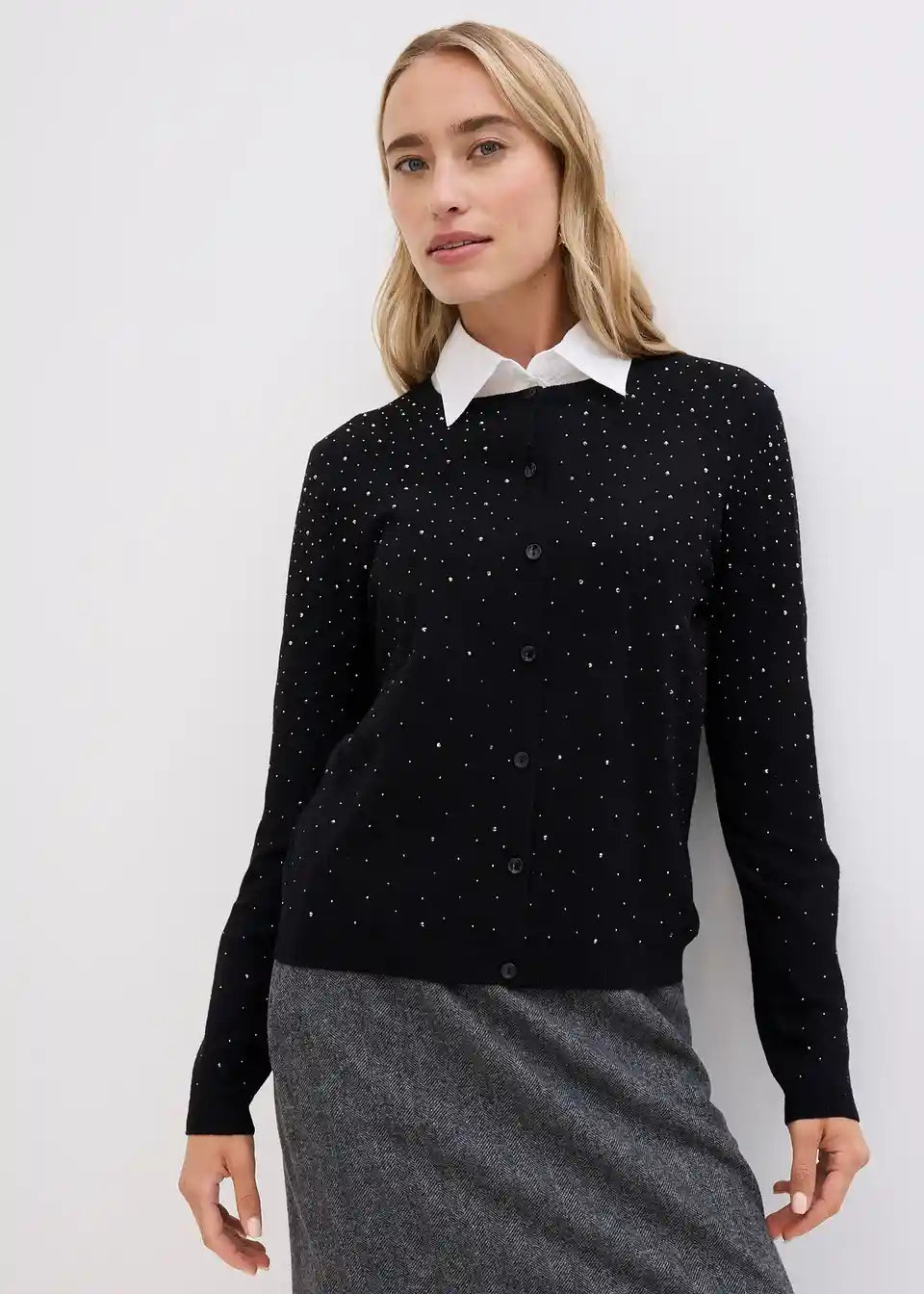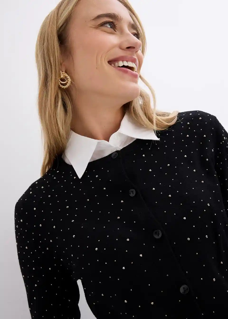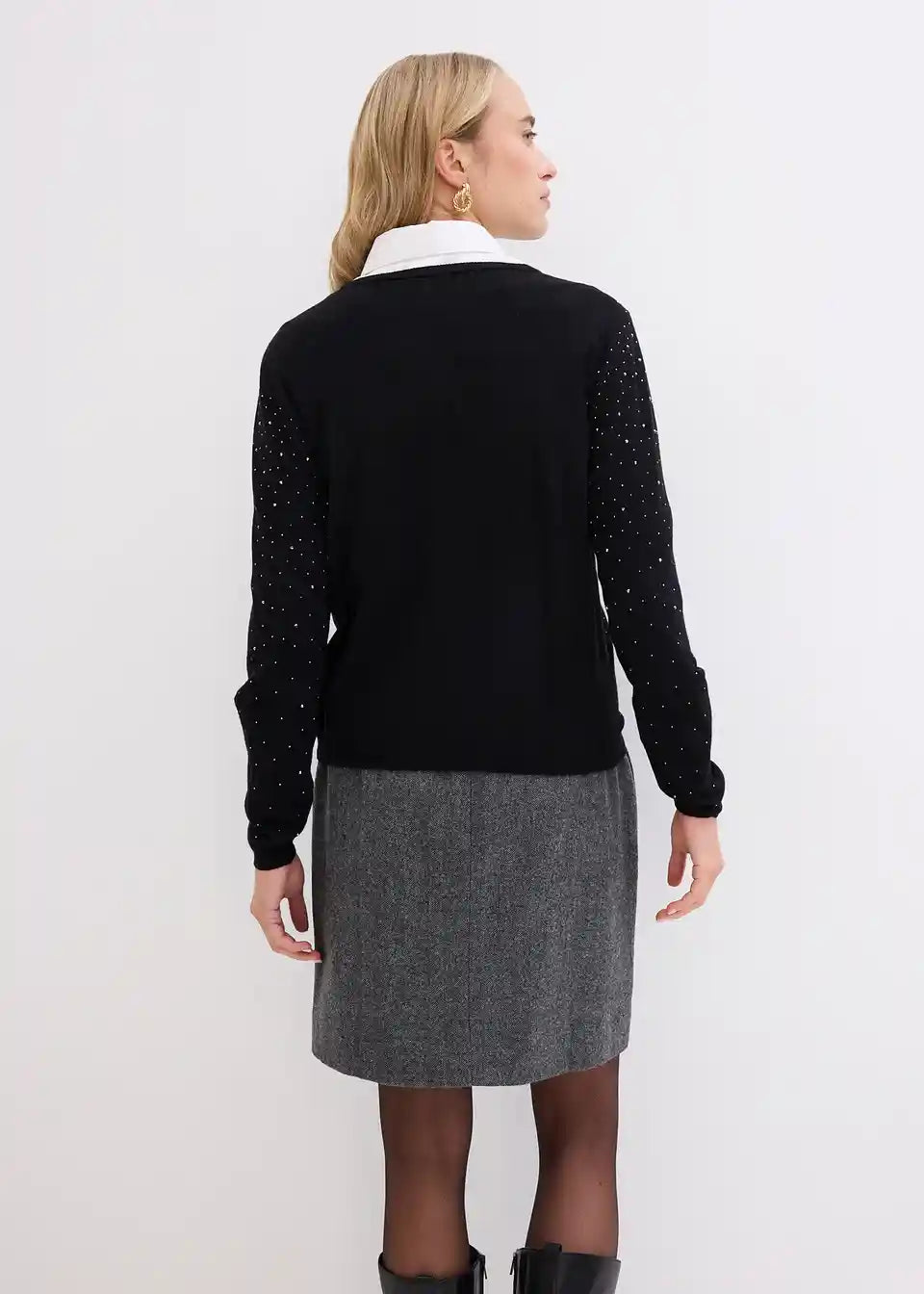 lijepa pletena jakna od mekanog viskoznog miksa s blještavim kamenčićima