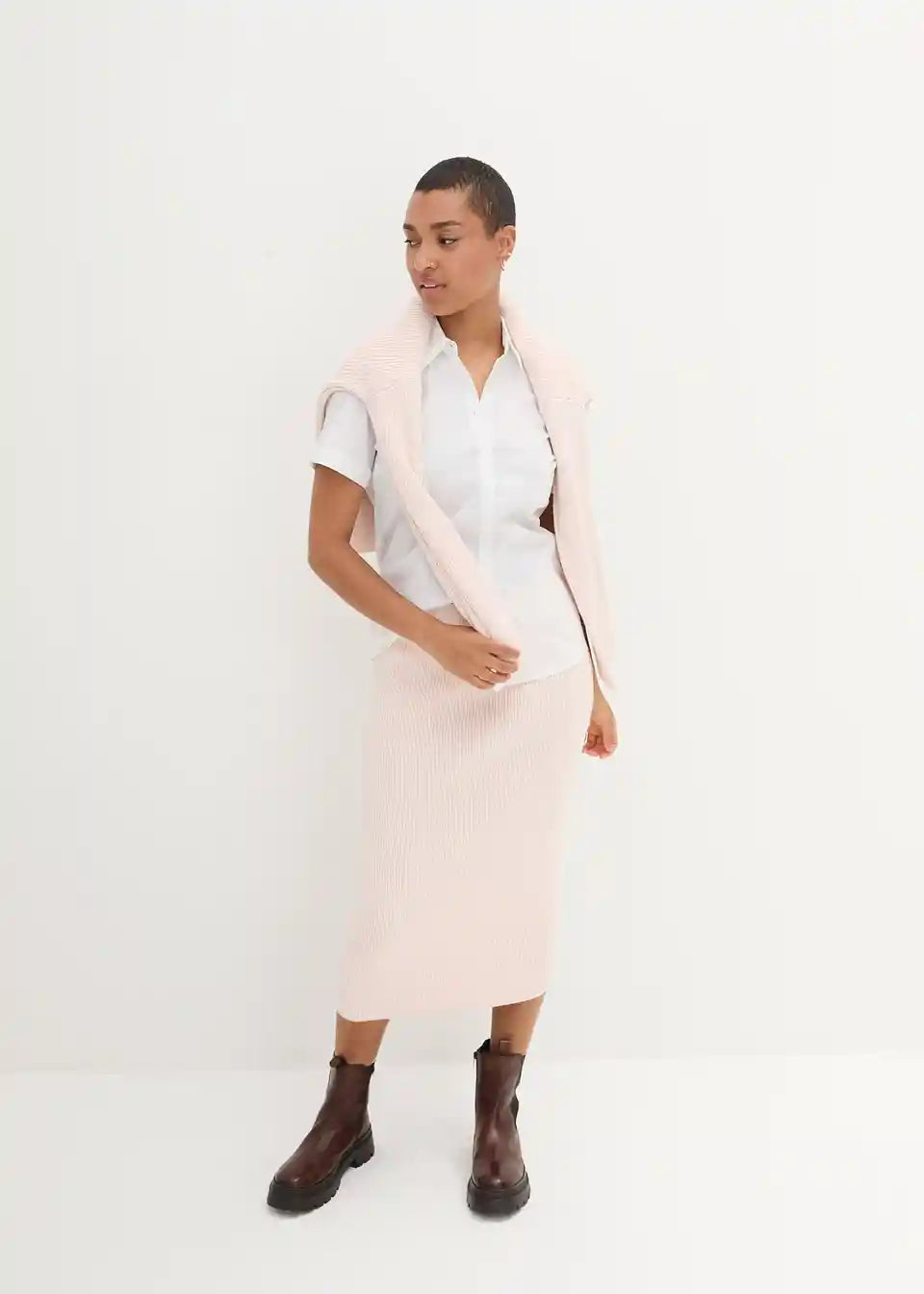 Lijepa suknja od rebrastog pletiva prekriva koljena