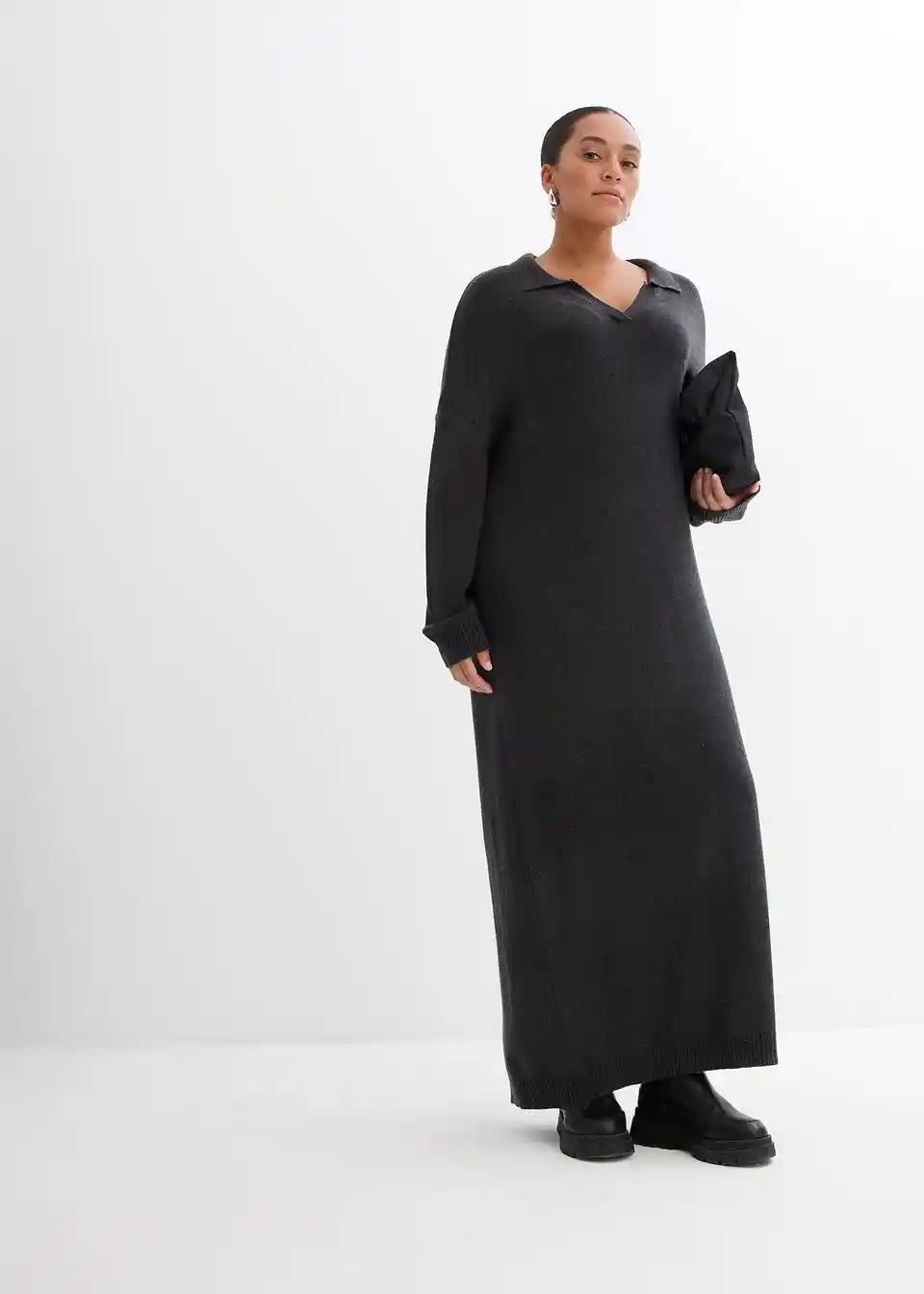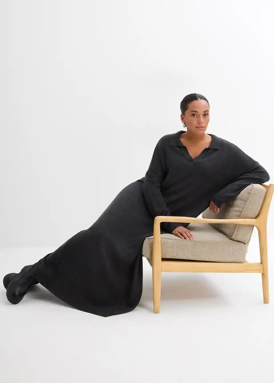 Pletena haljina s polo kragnom od materijala s udjelom viskoze