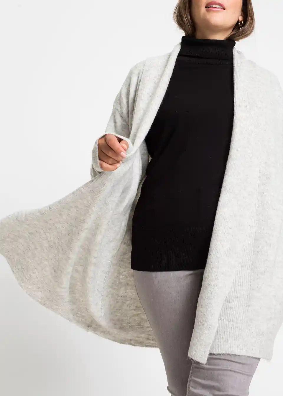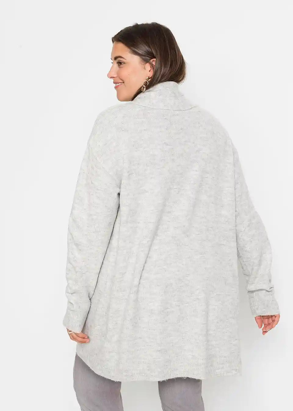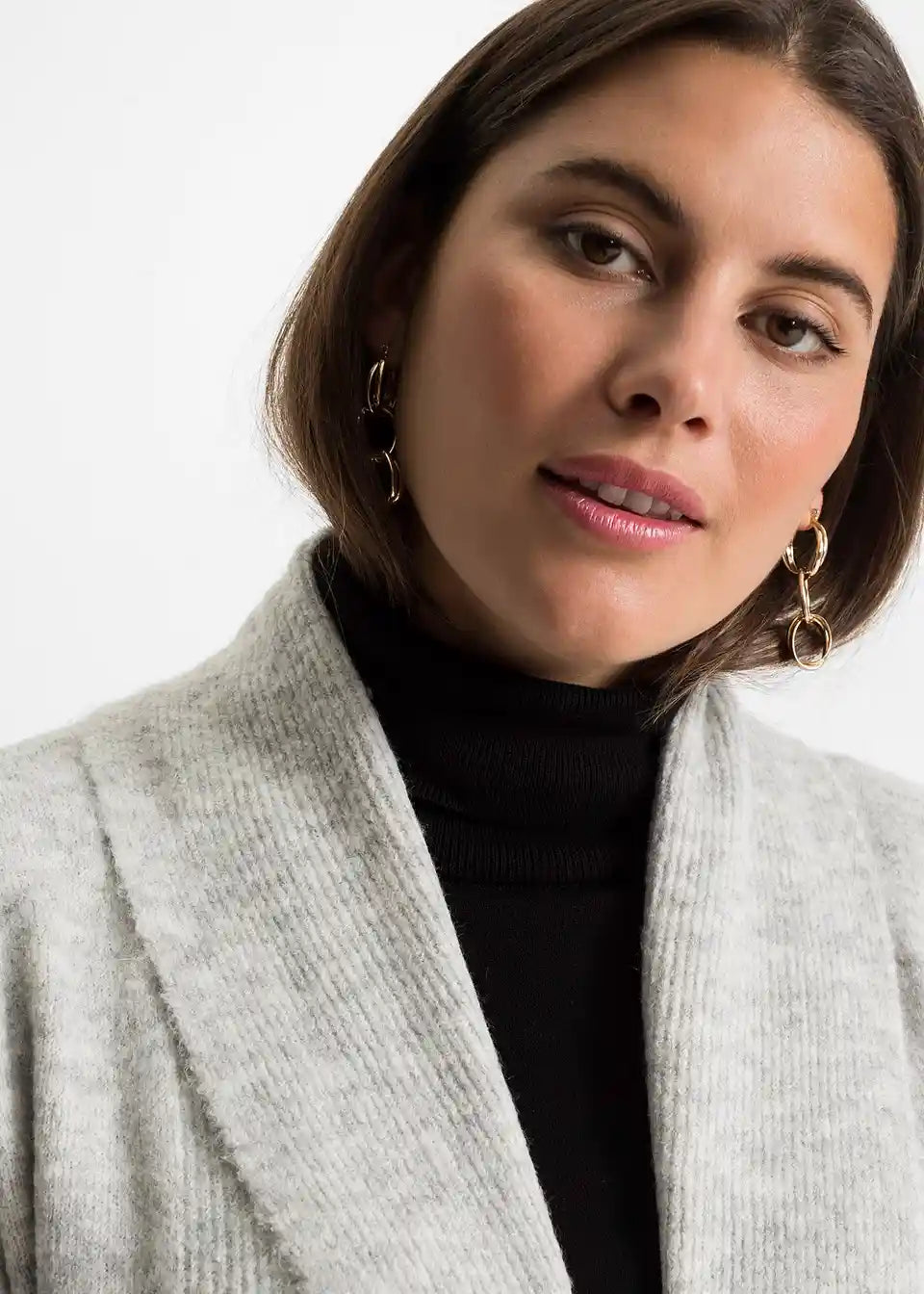 Fino rebrasti pleteni kardigan s ovratnikom u dugom kroju