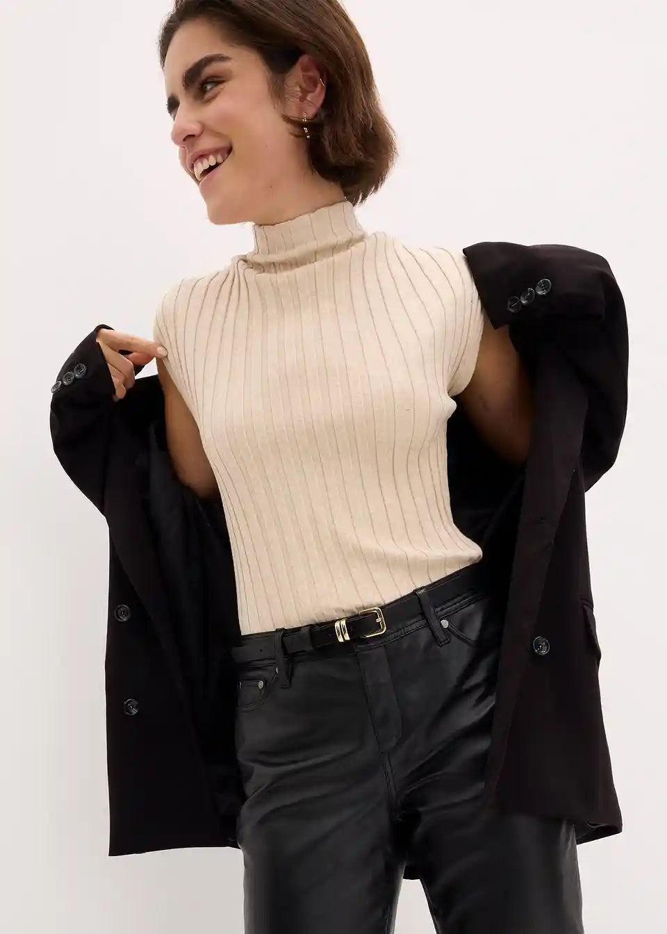 Visina modela:Model je visok 1,77 m i nosi veličinu 36/38.