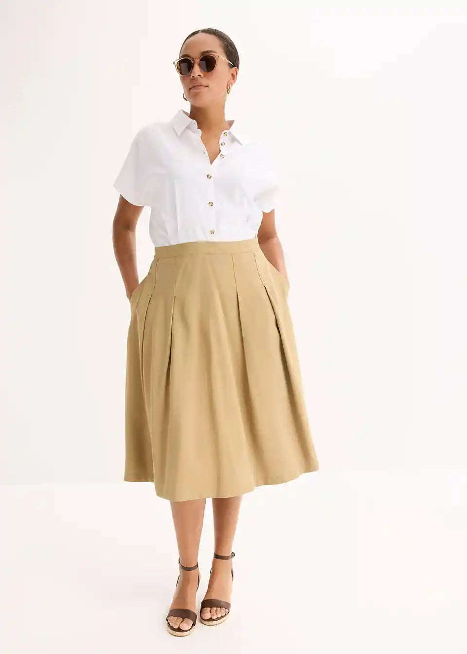 Suknja s faldama od mekanog materijala s udjelom viskoze