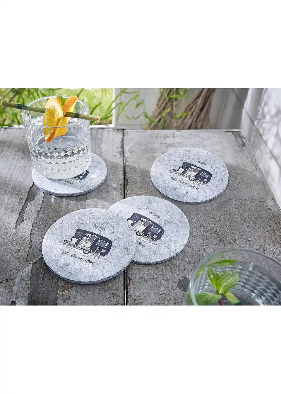 Prekrasni podmetači za čaše ili šalice. Svaki je tiskan s motivom kampiranja. Štiti površinu stola od prljavštine i ogrebotina.