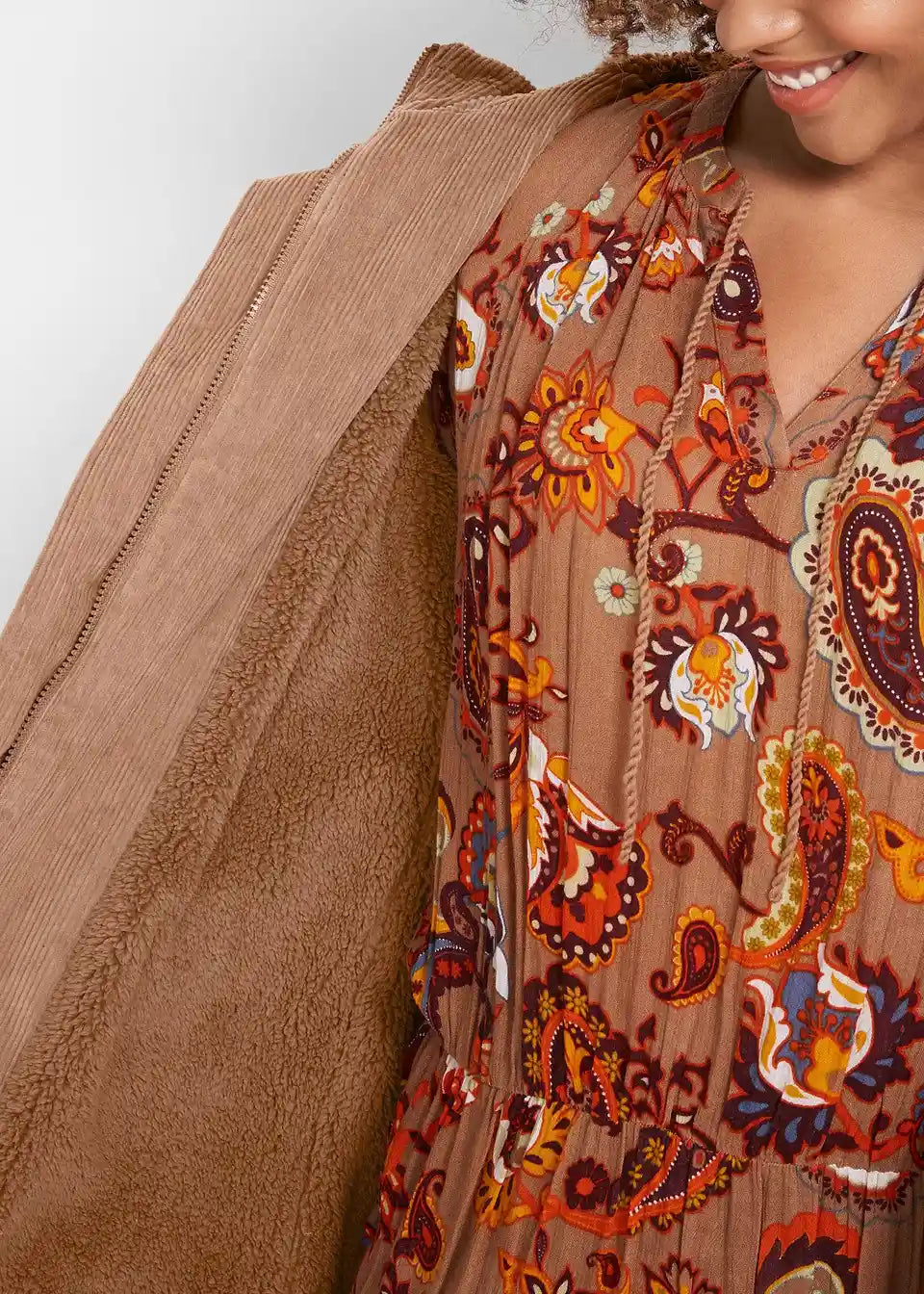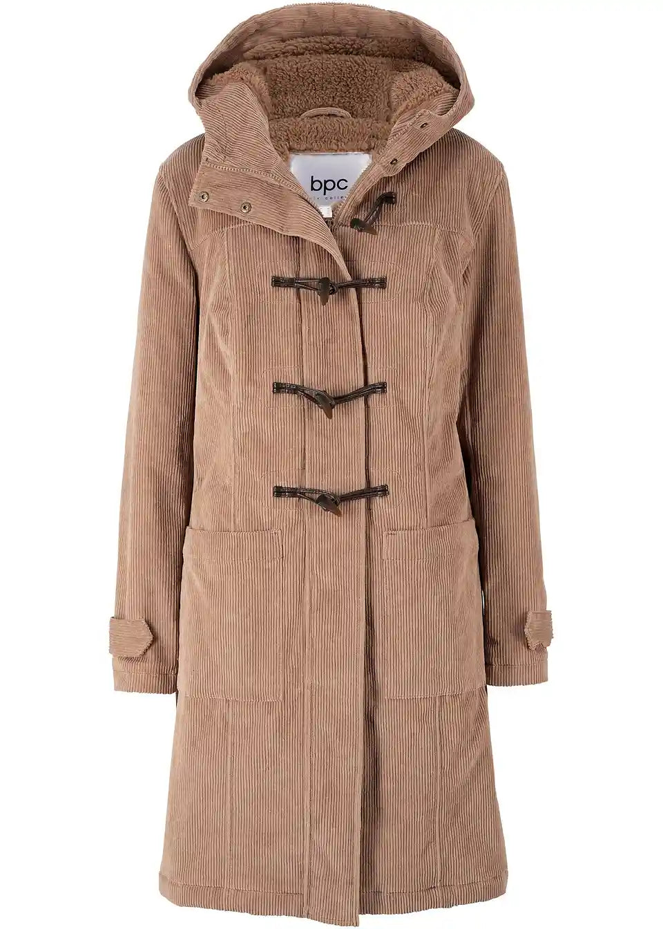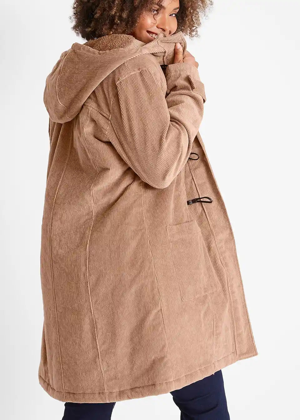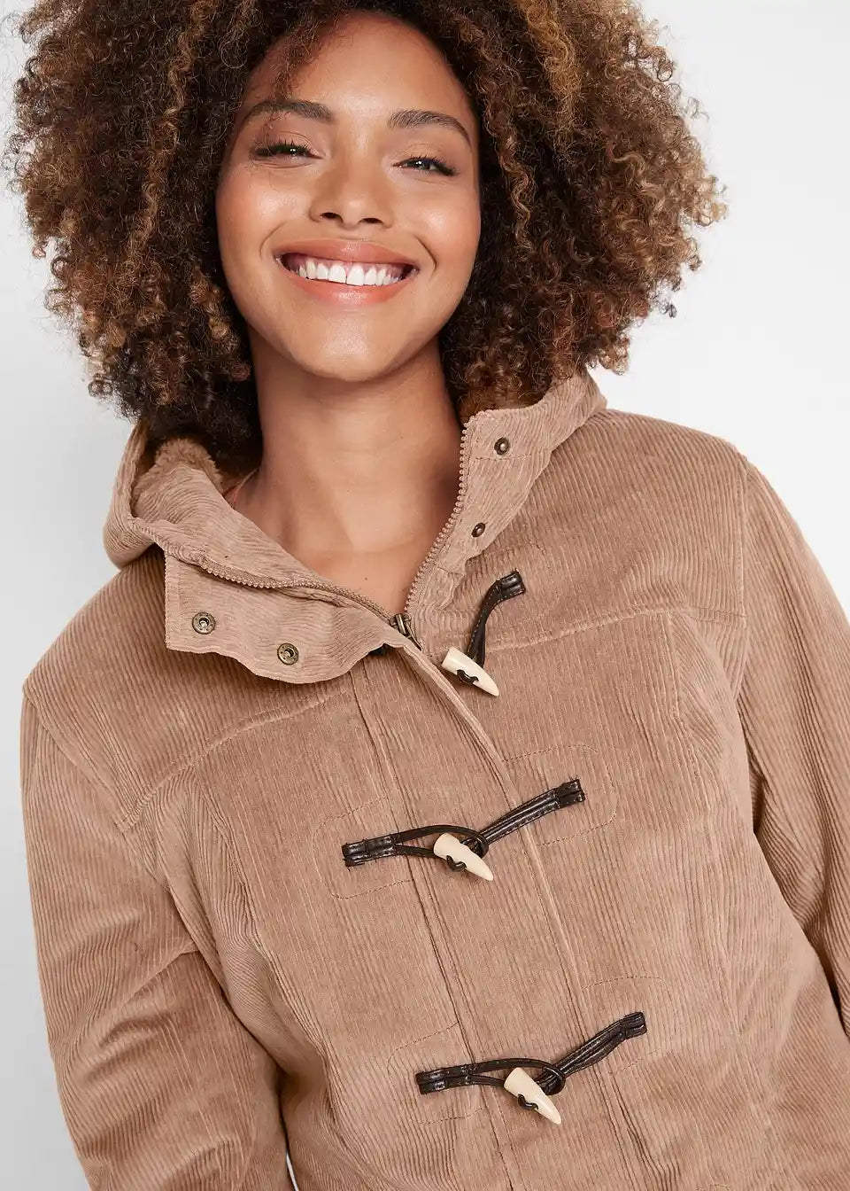 Podstavljeni Dufflecoat od Cord Materijala s Kapuljačom i Gumbima na Preklop