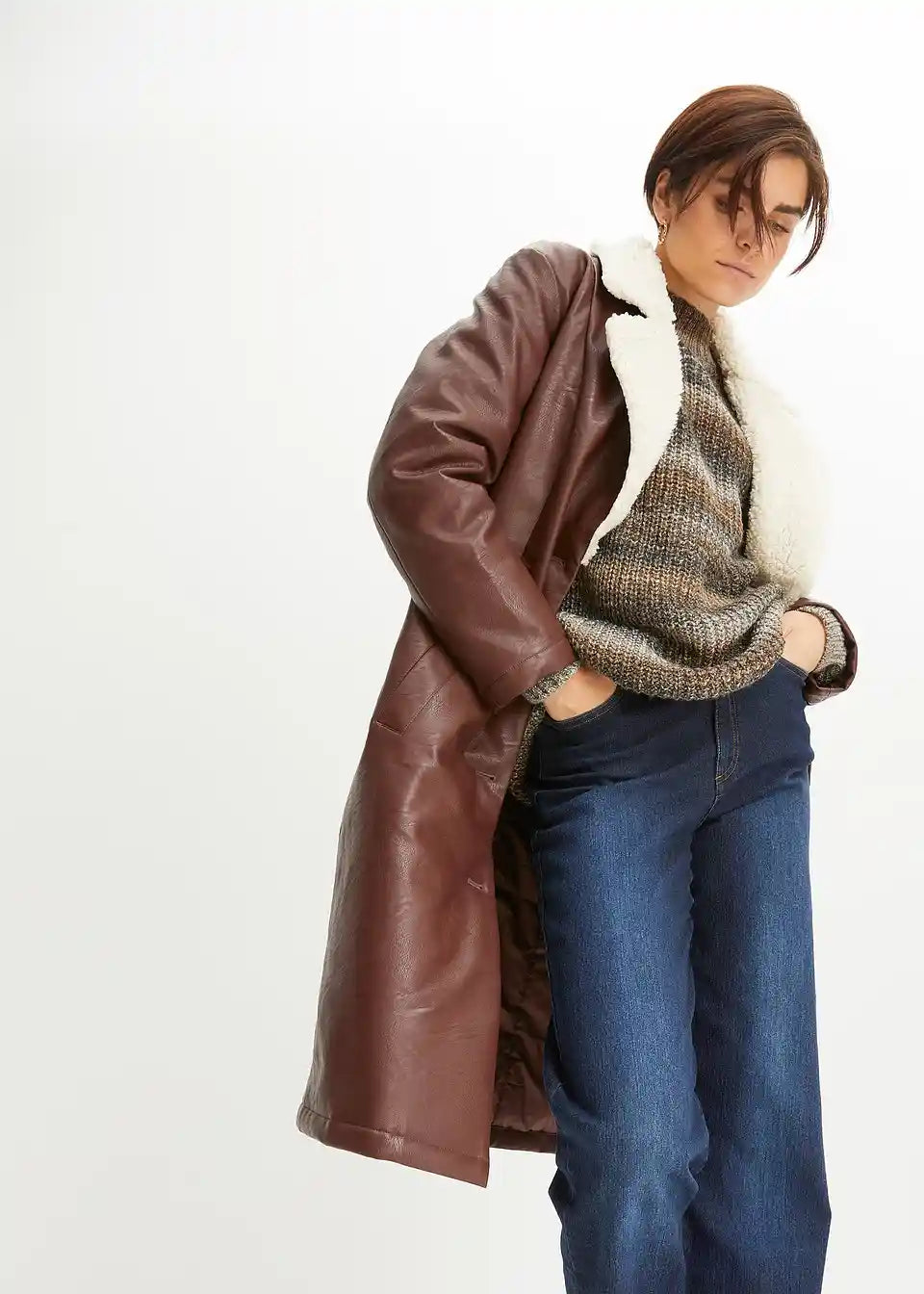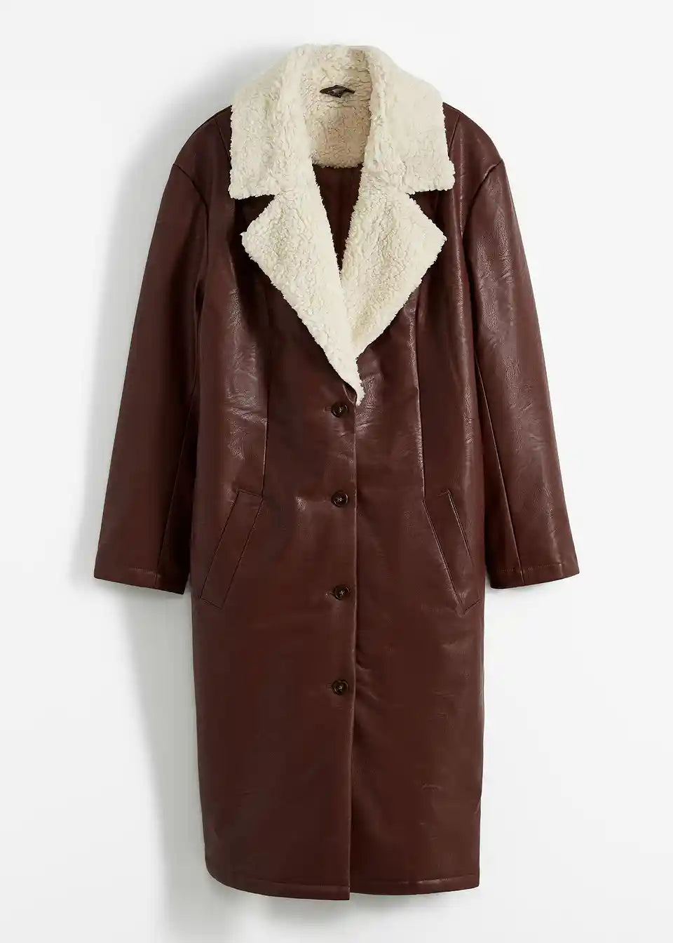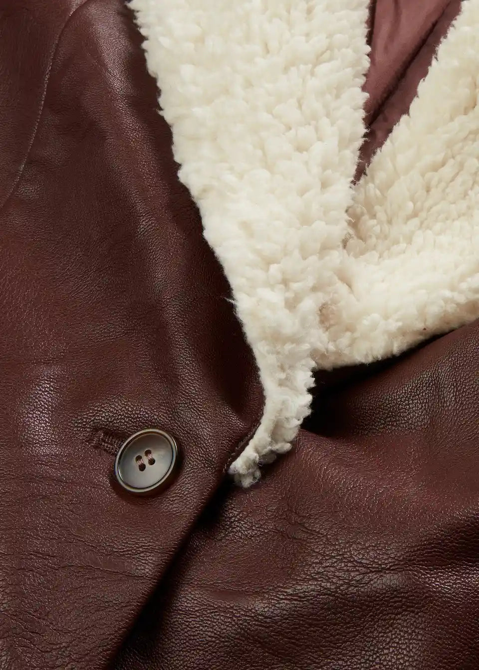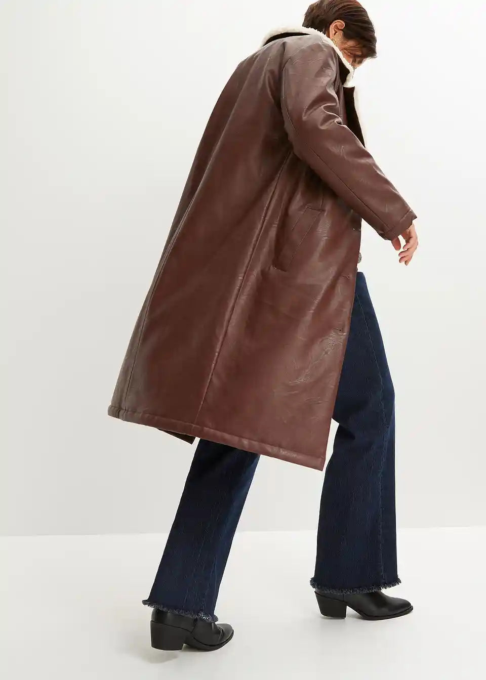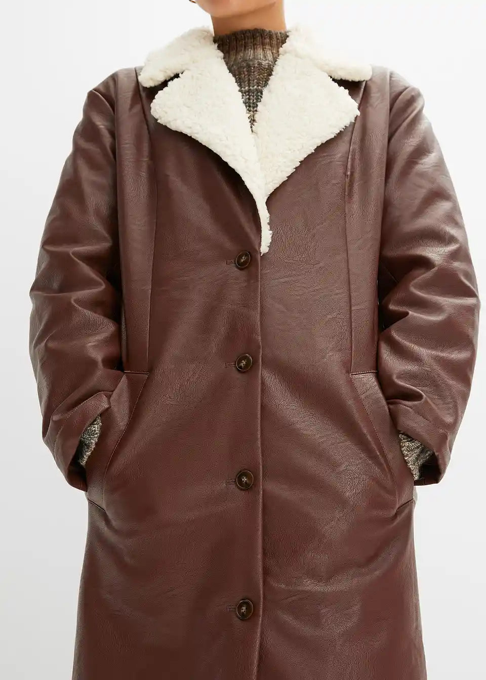 Kaput od imitacije kože s teddy krznom na ovratniku podstavljen vatom