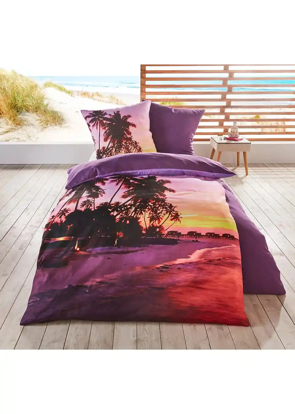 Posteljina s dva lica s motivom plaže, zalaska sunca, mora i palmi