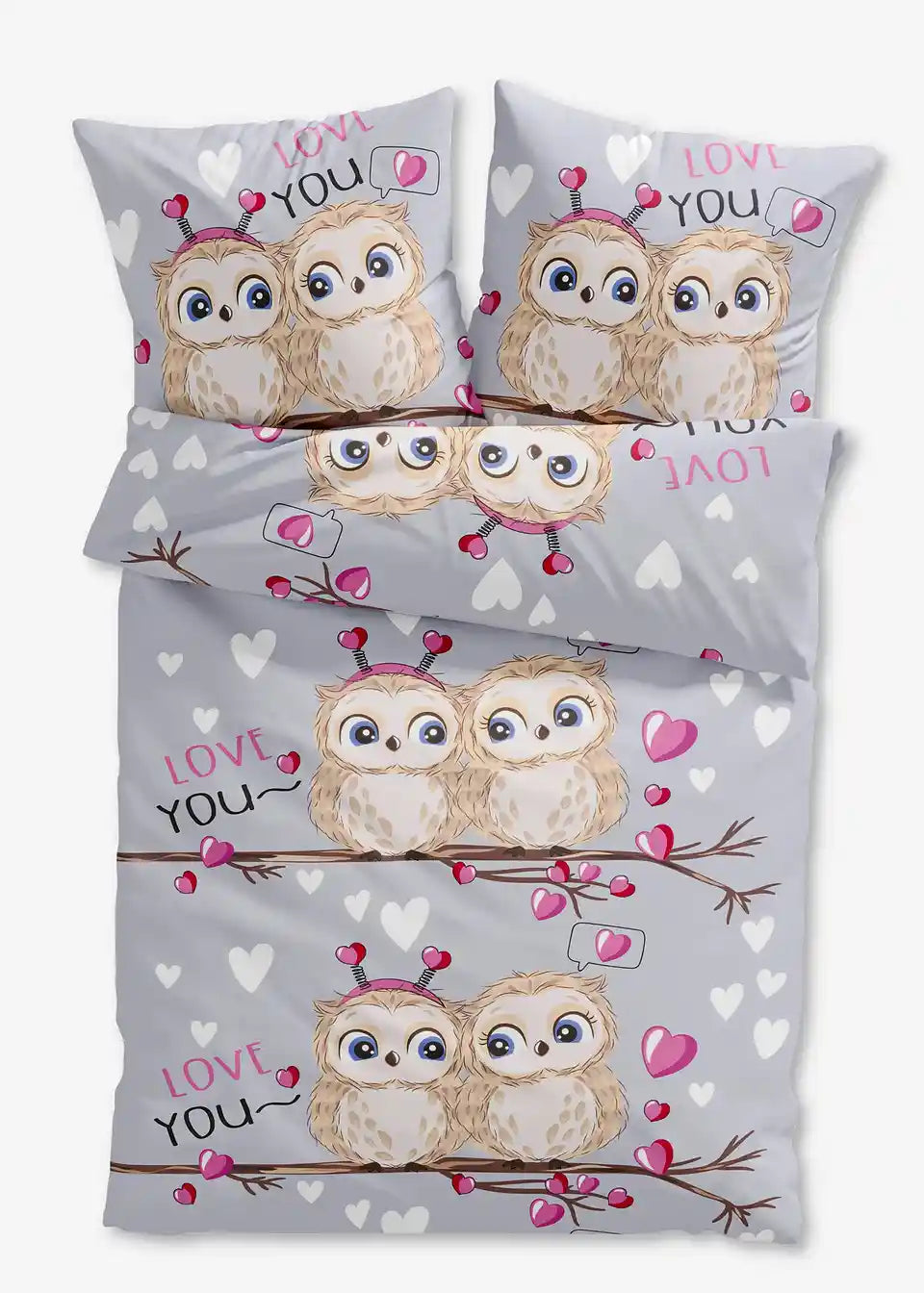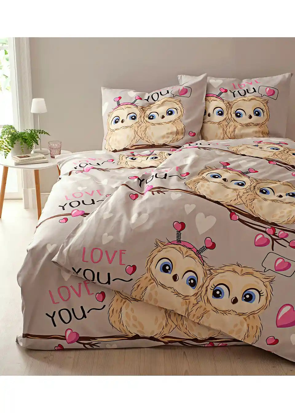 Posteljina s sovama i srcima