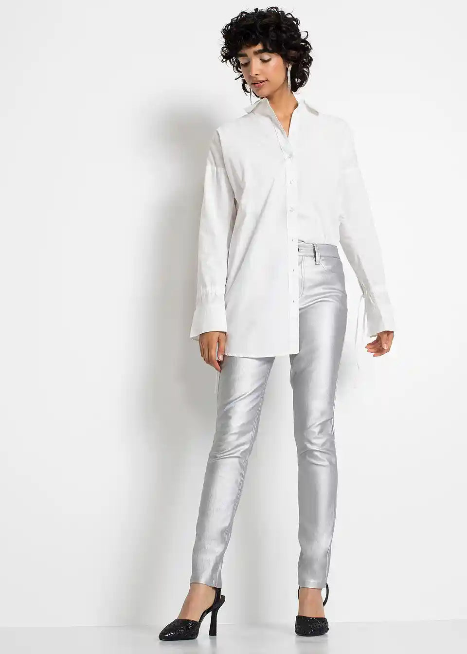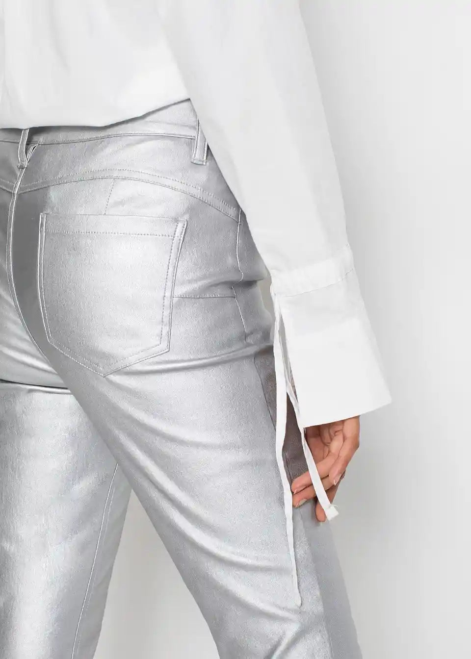 Premazane hlače s dugim nogavicama u metalik izgledu