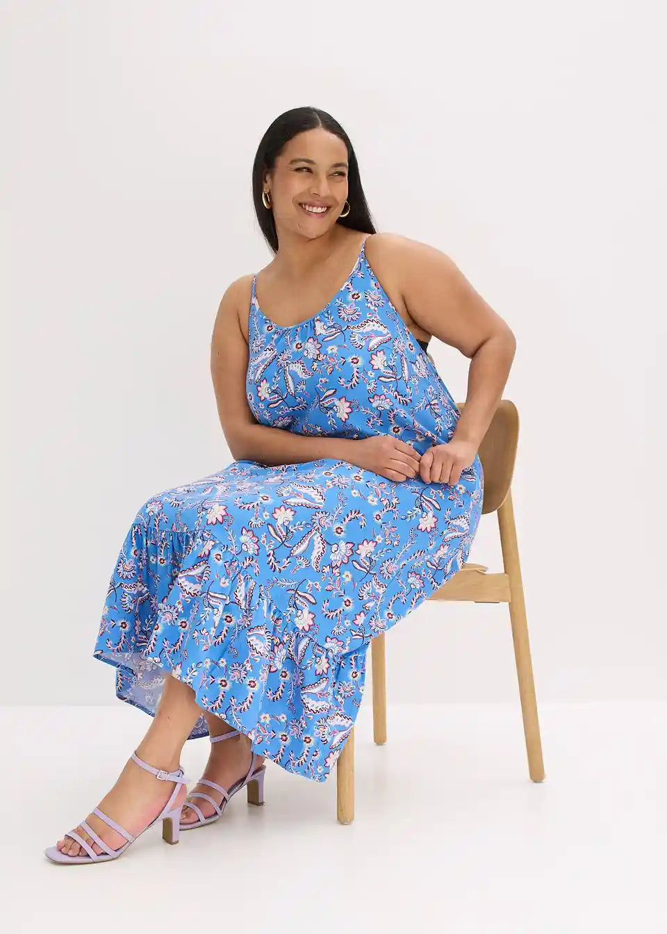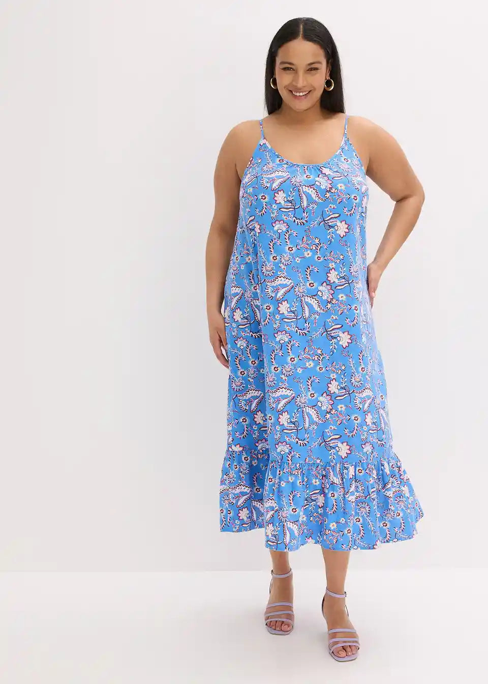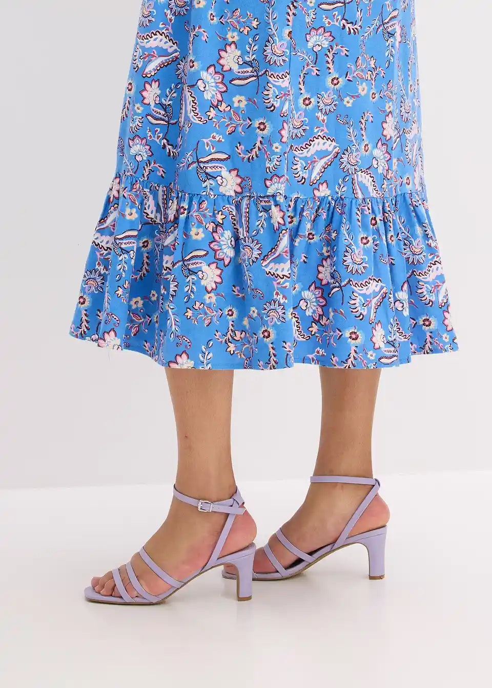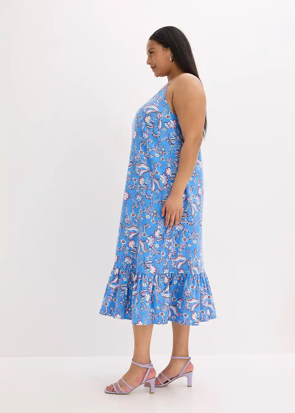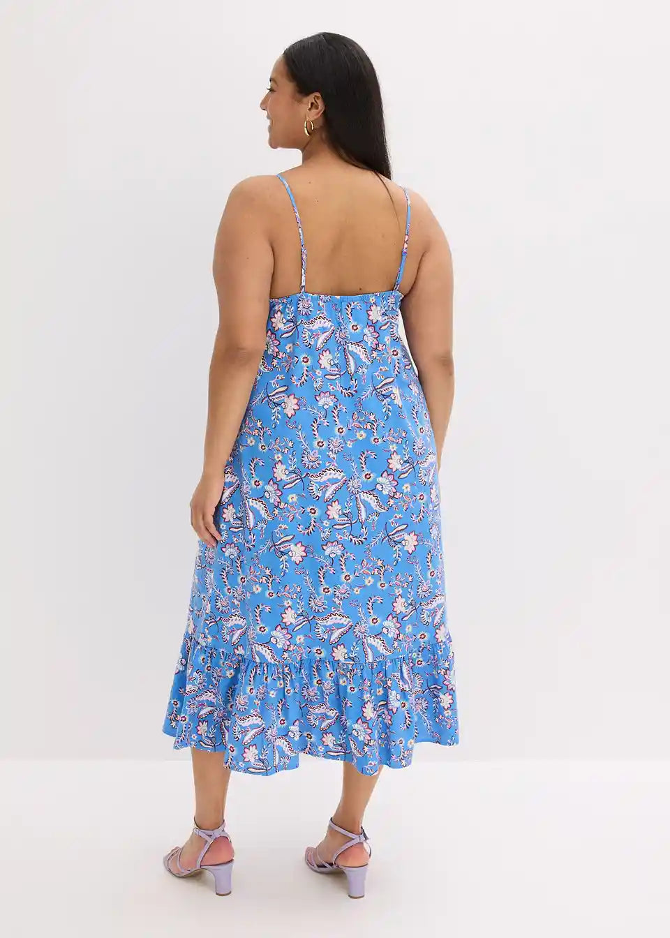 cvjetno printana haljina sa Spaghettiträger u midi duljini s volanom na rubu od prozračne mješavine lana