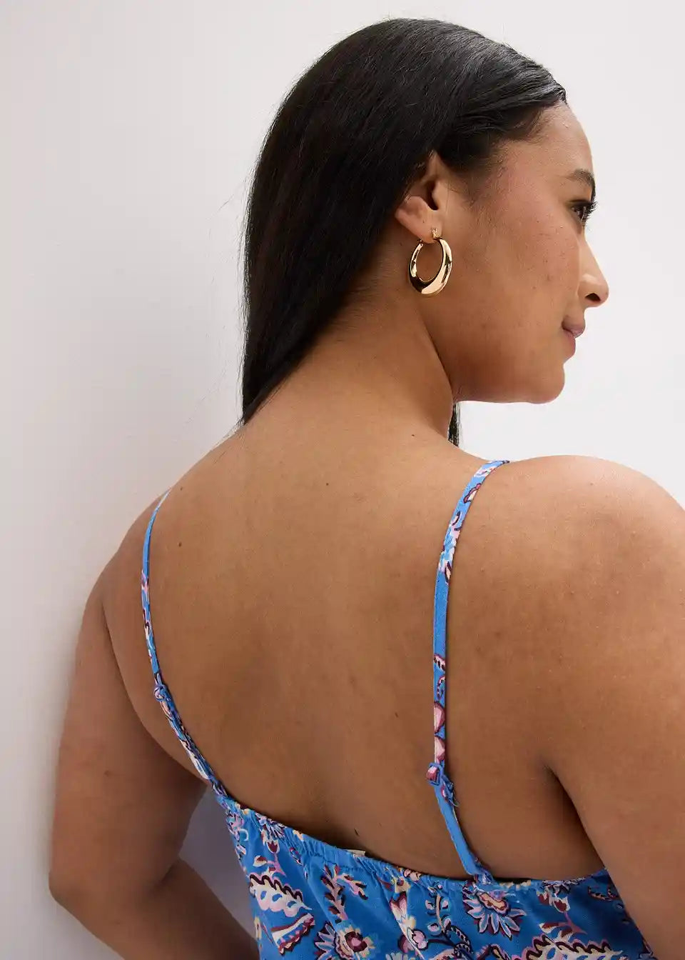 Haljina s uzorkom i tregerima od laganog materijala s udjelom lana