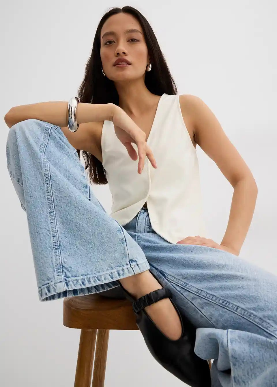 Pletena vesta s V-izrezom na rubu, redom gumba i V-izrezom