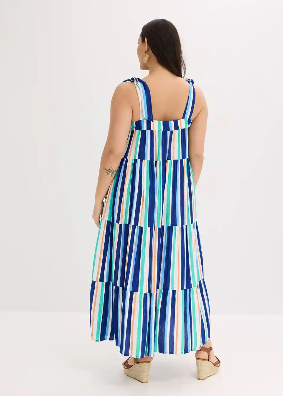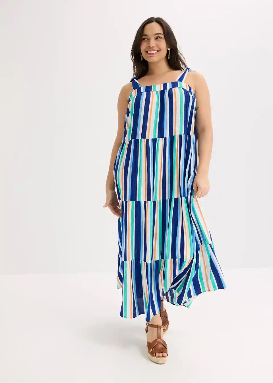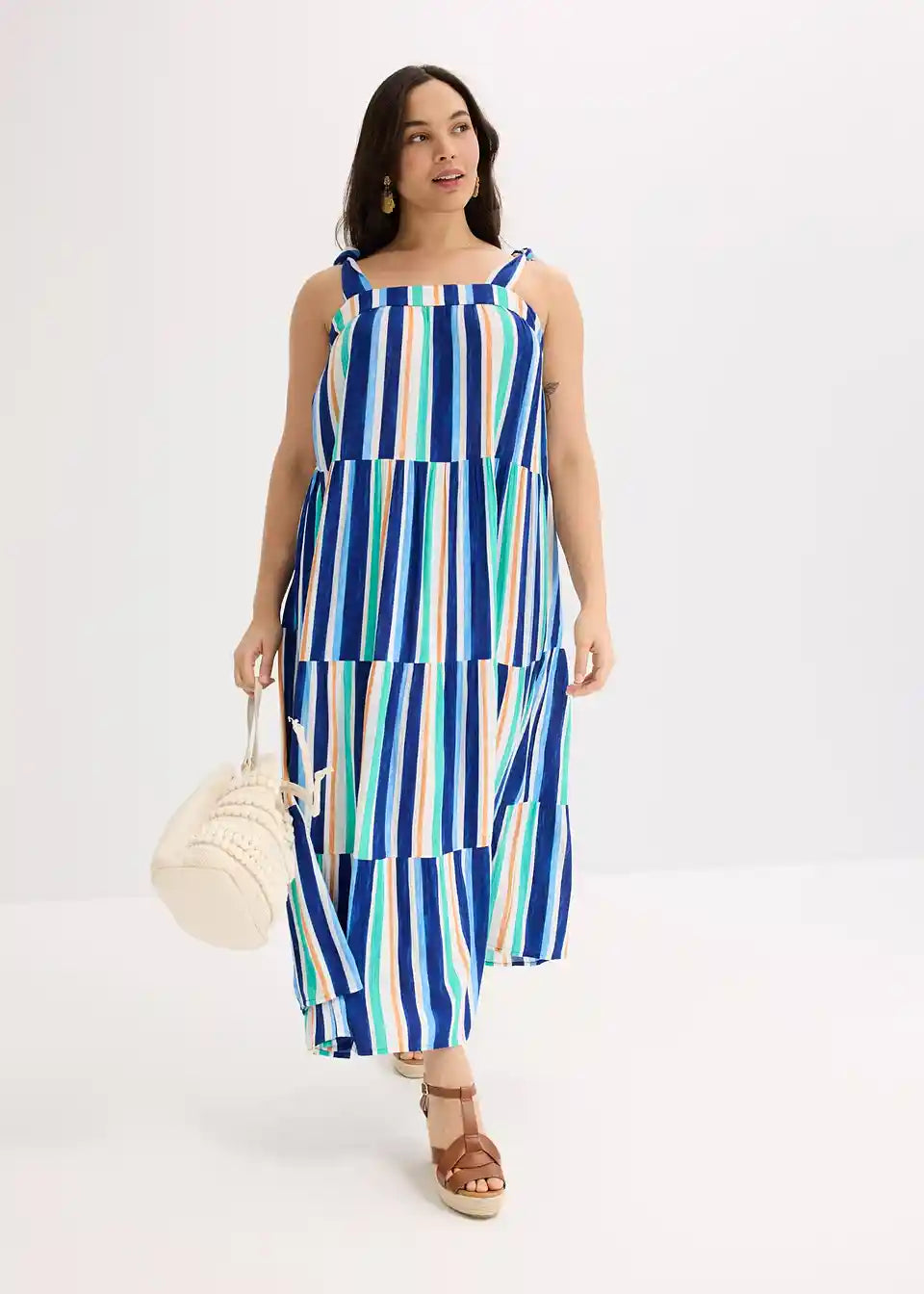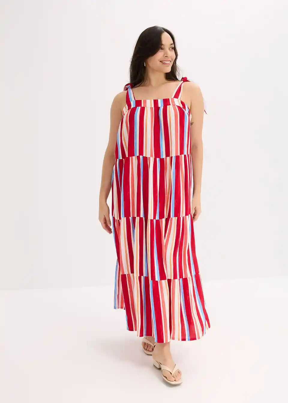 prugasta haljina na tregere maksimalne dužine od strukturirane viskoze s vezanim naramenicama