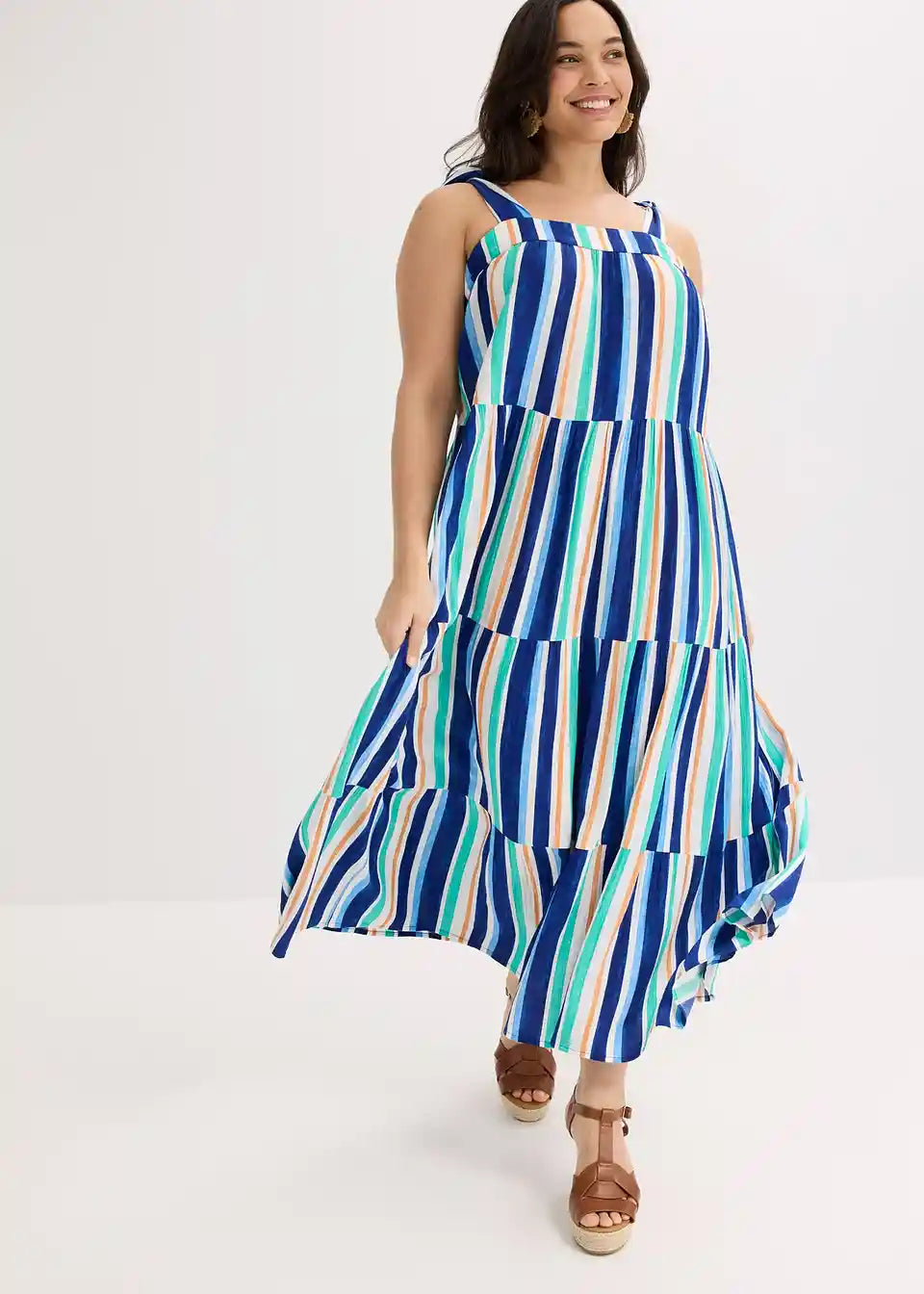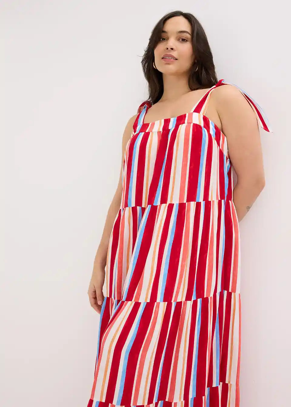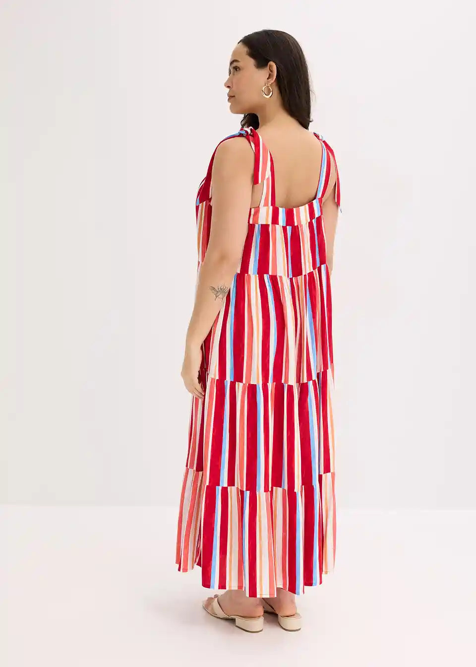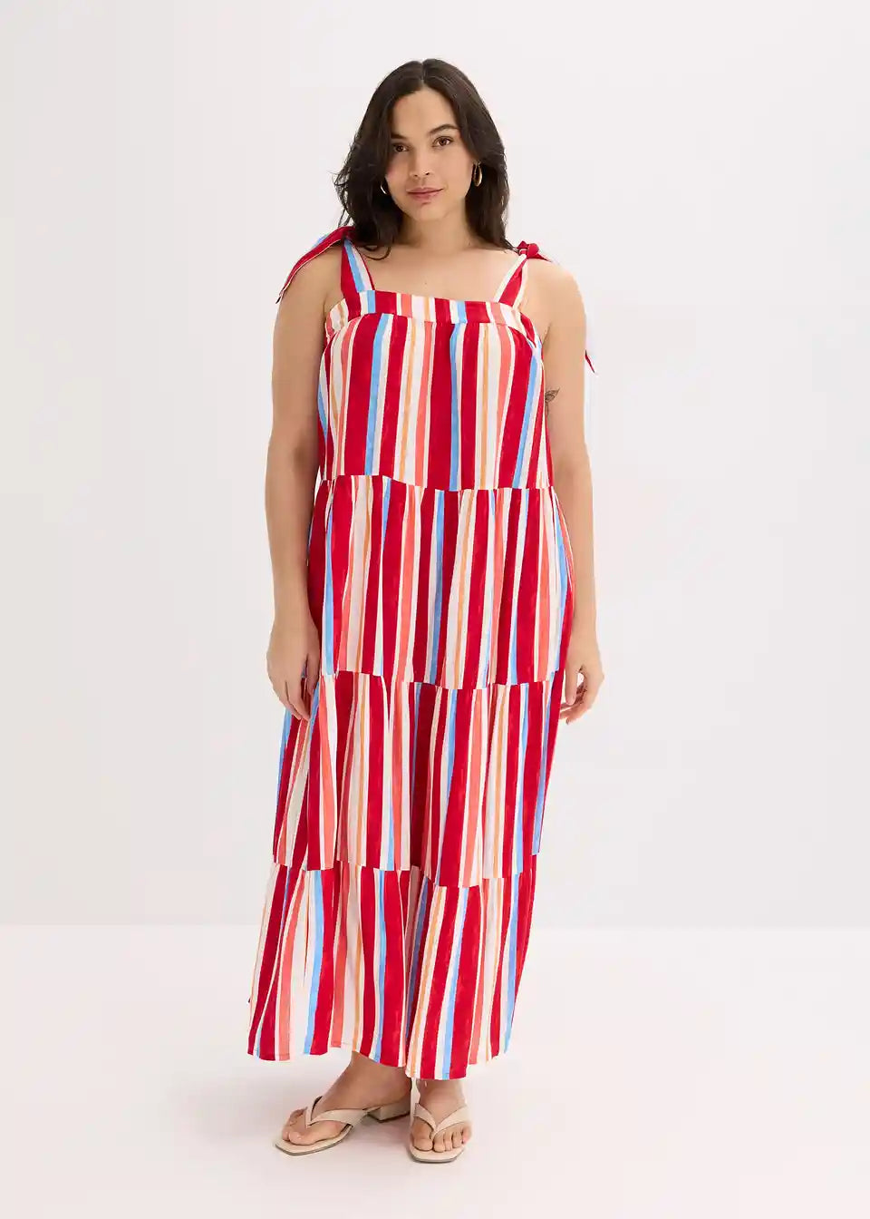 prugasta haljina na tregere maksimalne dužine od strukturirane viskoze s vezanim naramenicama