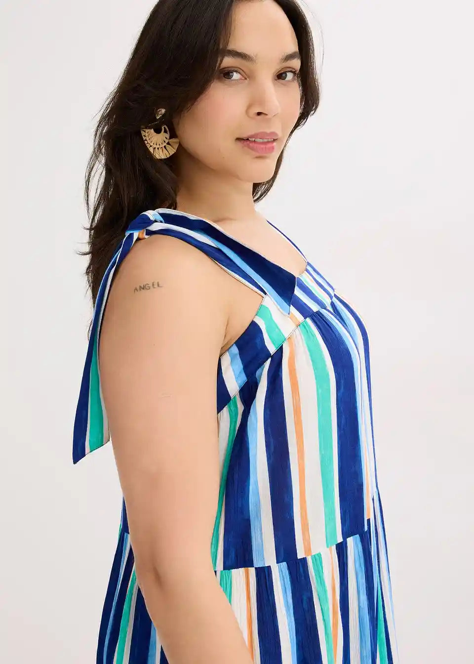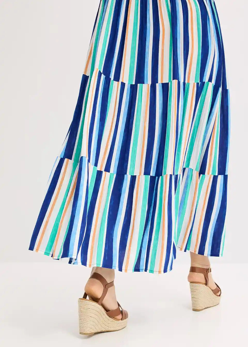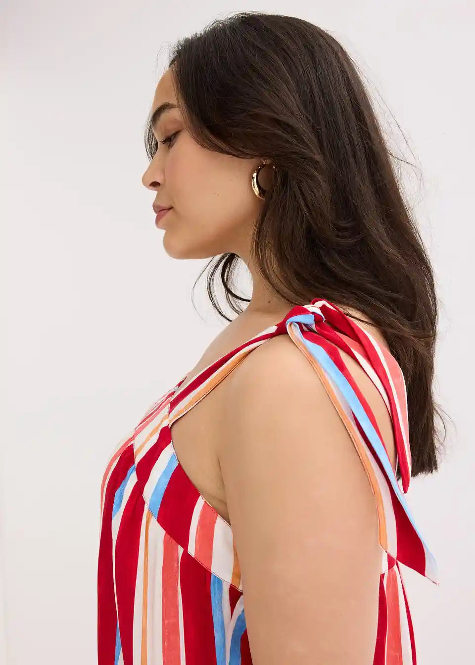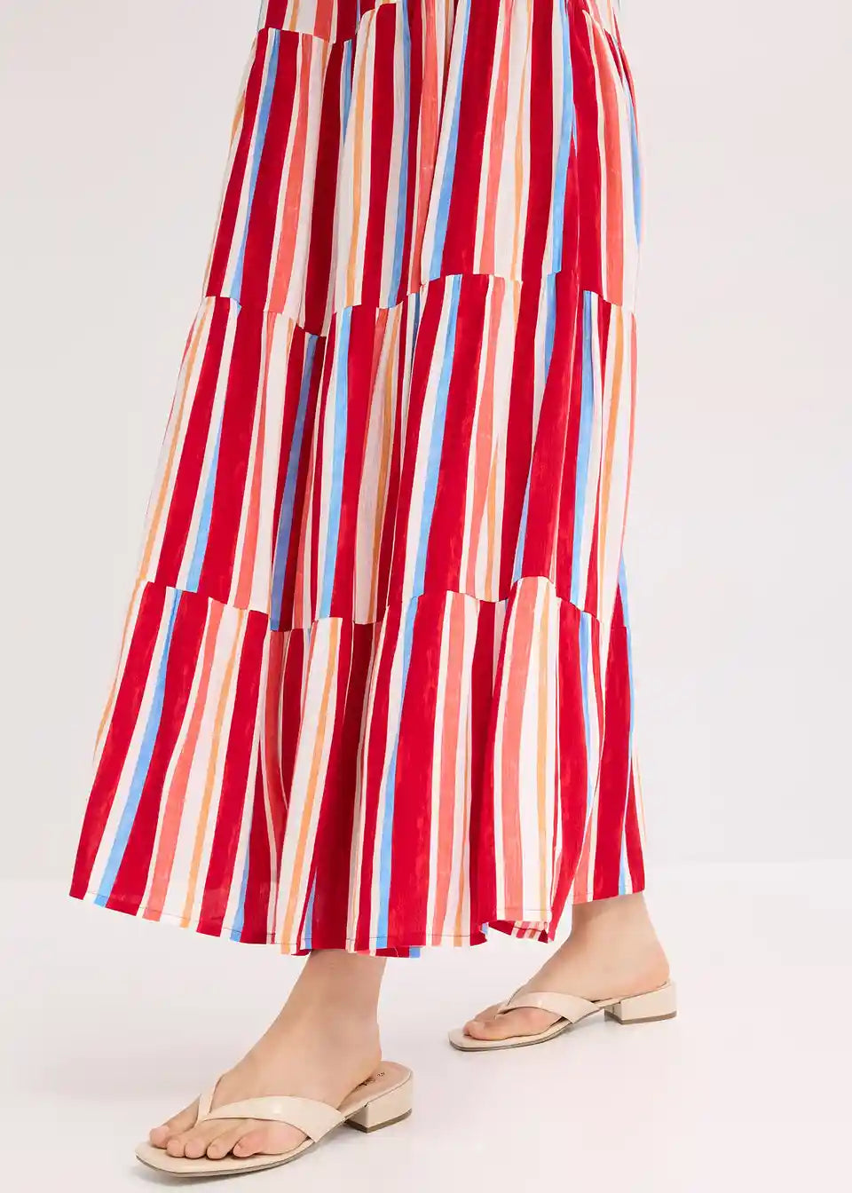 prugasta haljina na tregere maksimalne dužine od strukturirane viskoze s vezanim naramenicama