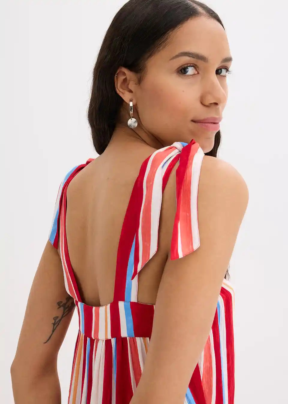 prugasta haljina s naramenicama u maksi dužini od strukturirane viskoze s vezanim naramenicama