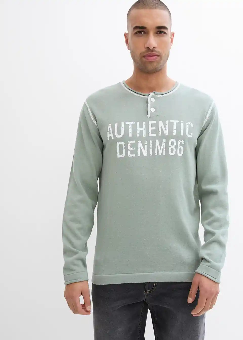 Moderan Henley pulover od fine pletenine od čisteg pamuka