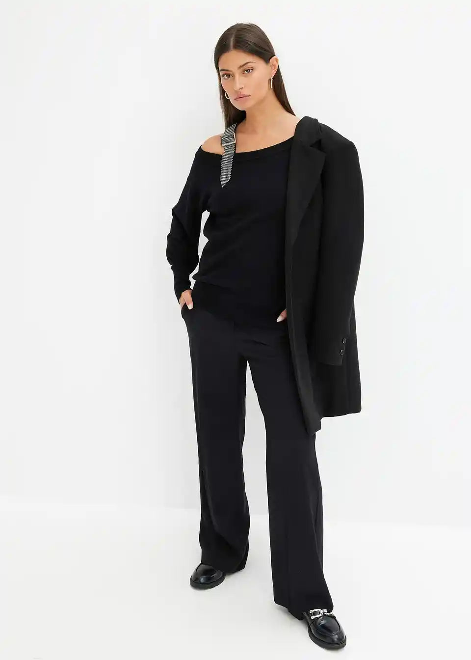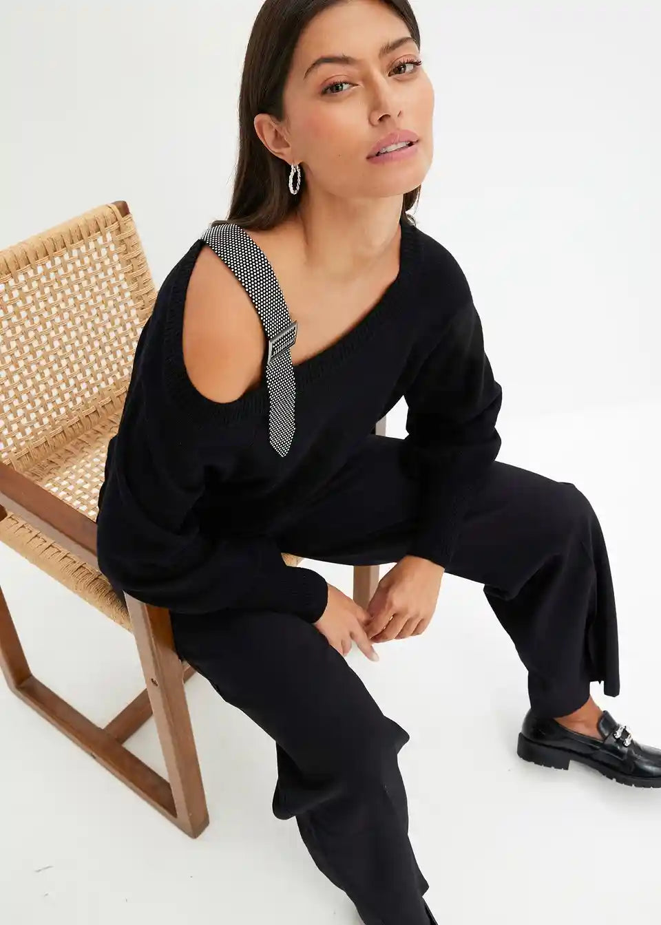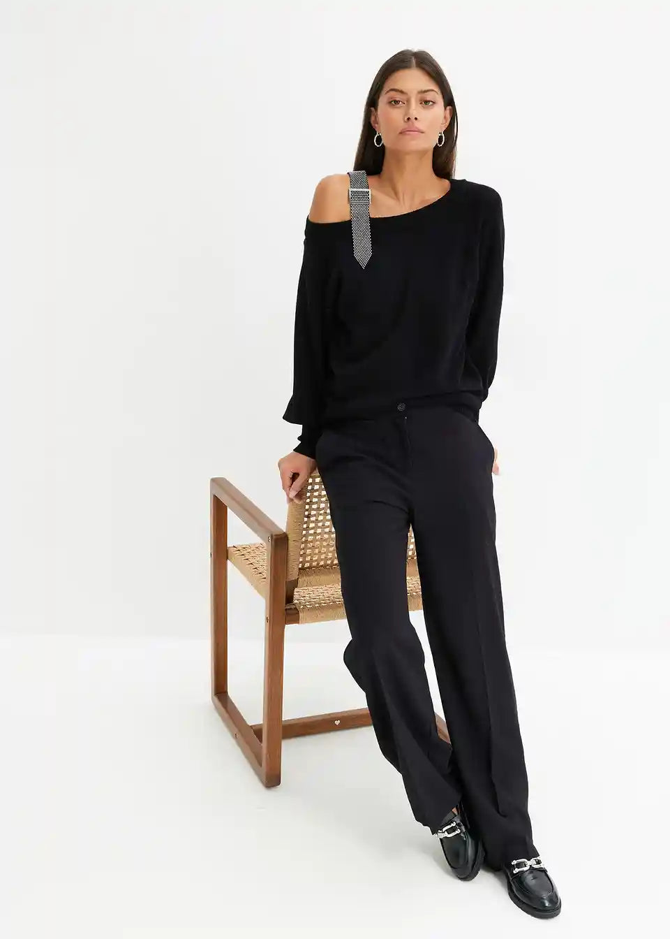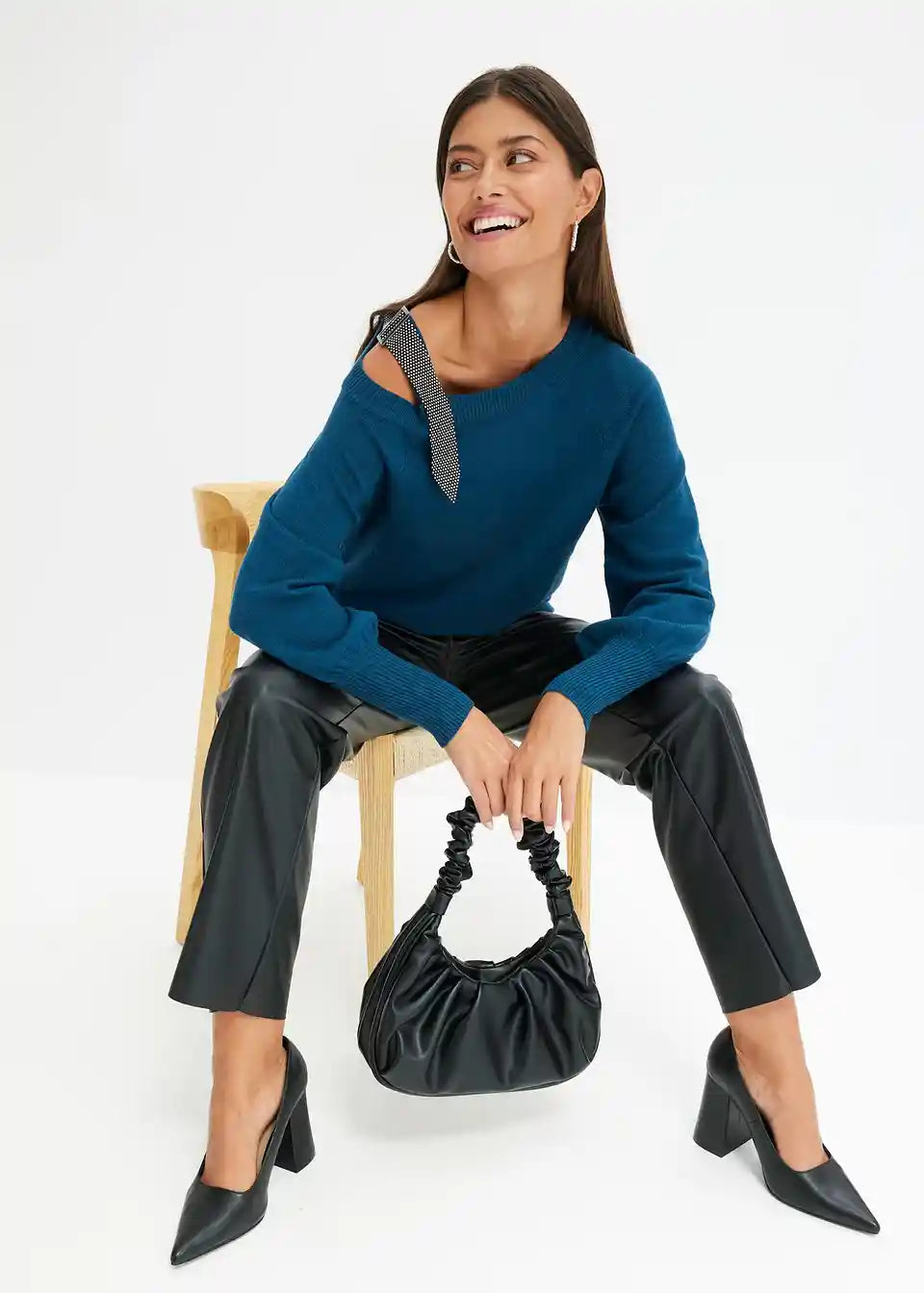 Pulover s otvorenim ramenom i sjajnim kamenčićima