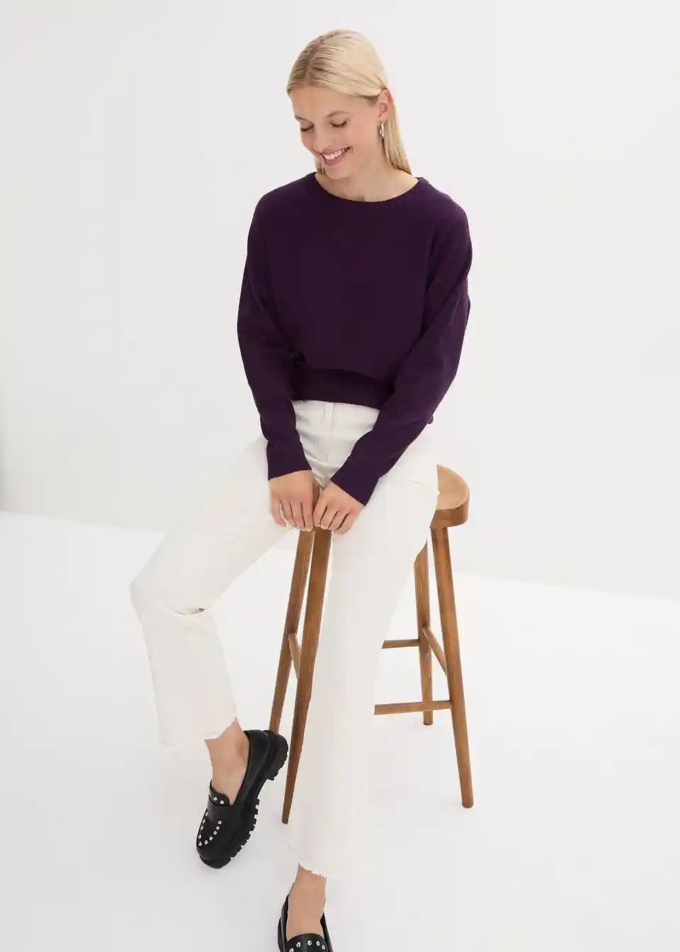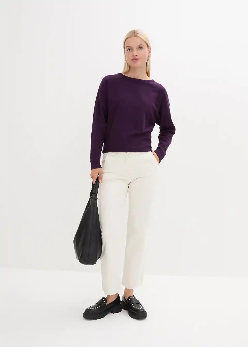 Ležeran pulover s šišmiš rukavima i rebrastim obrubima