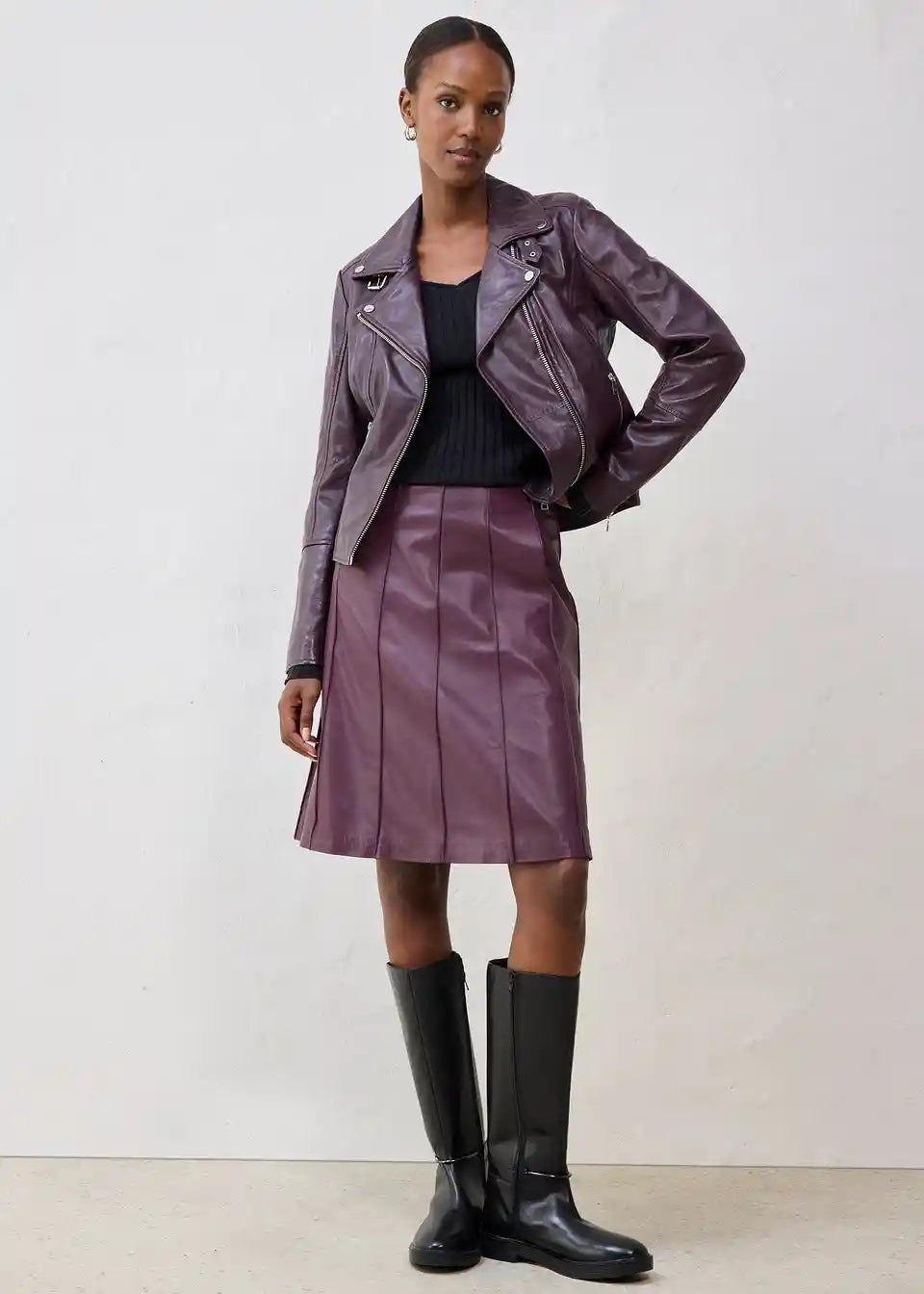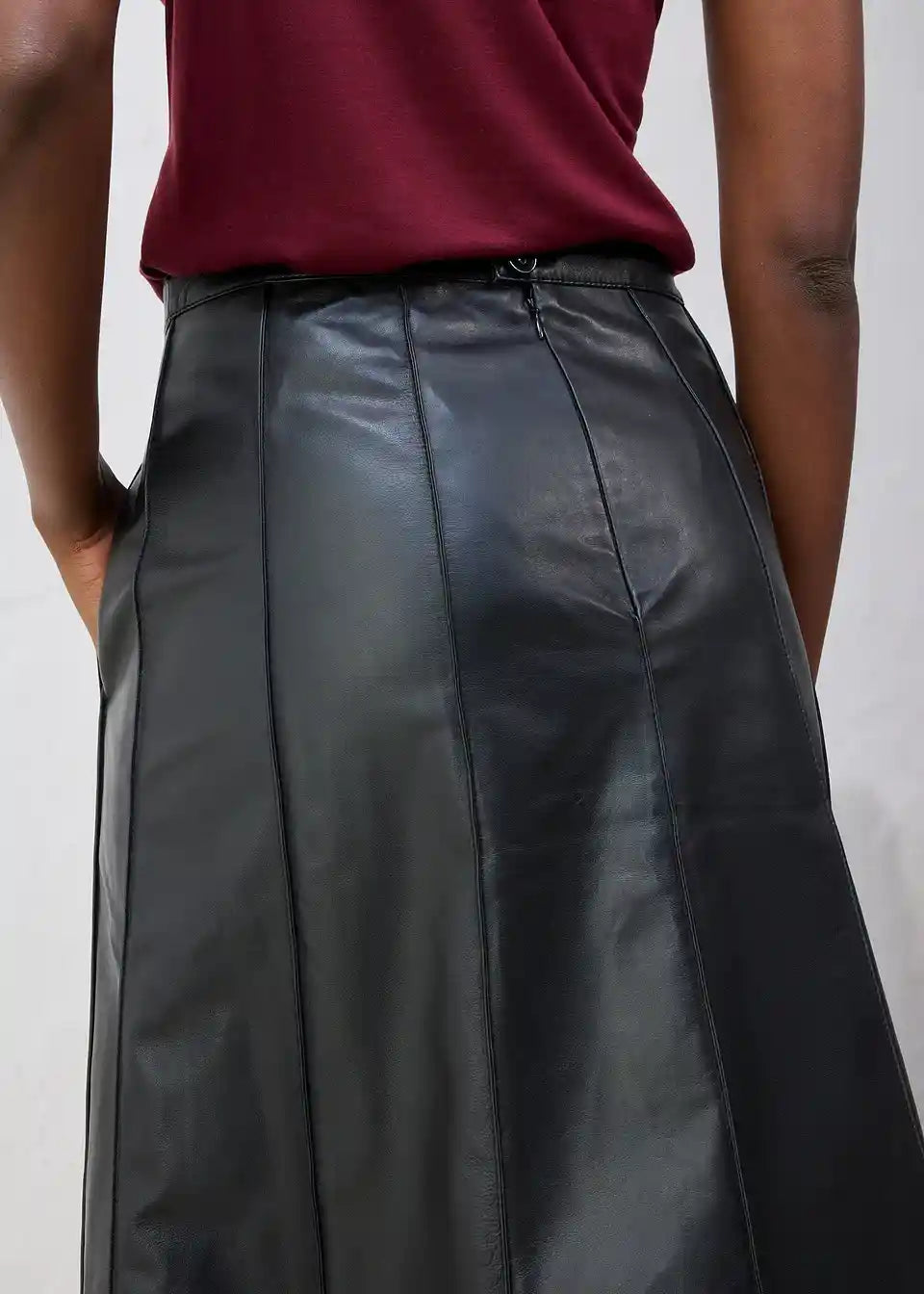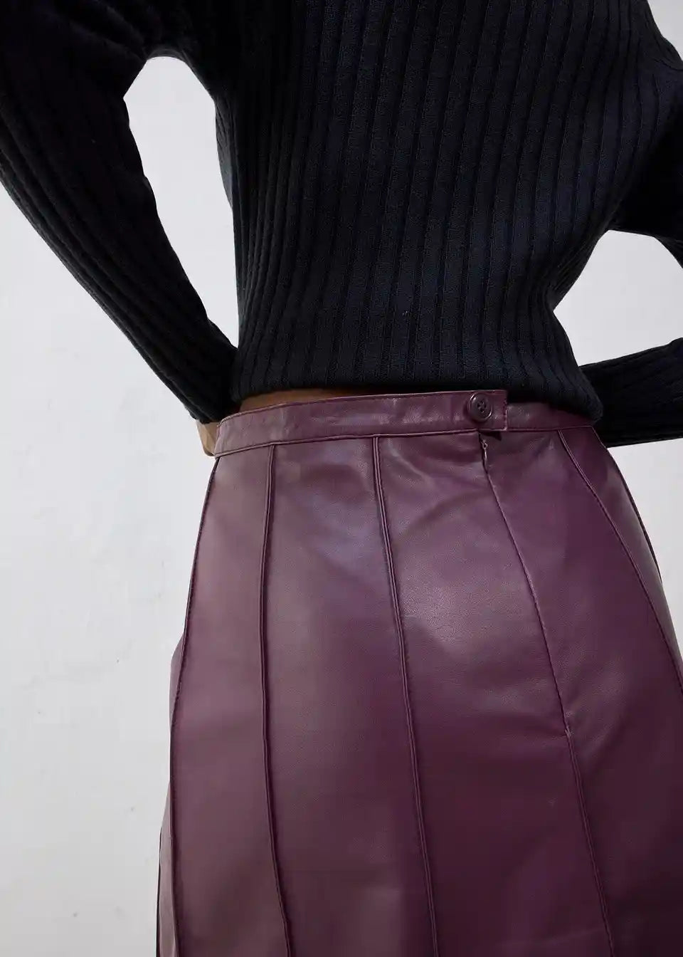 Trendi raskošna kožna suknja od janjeće nape, ukrašena naborima