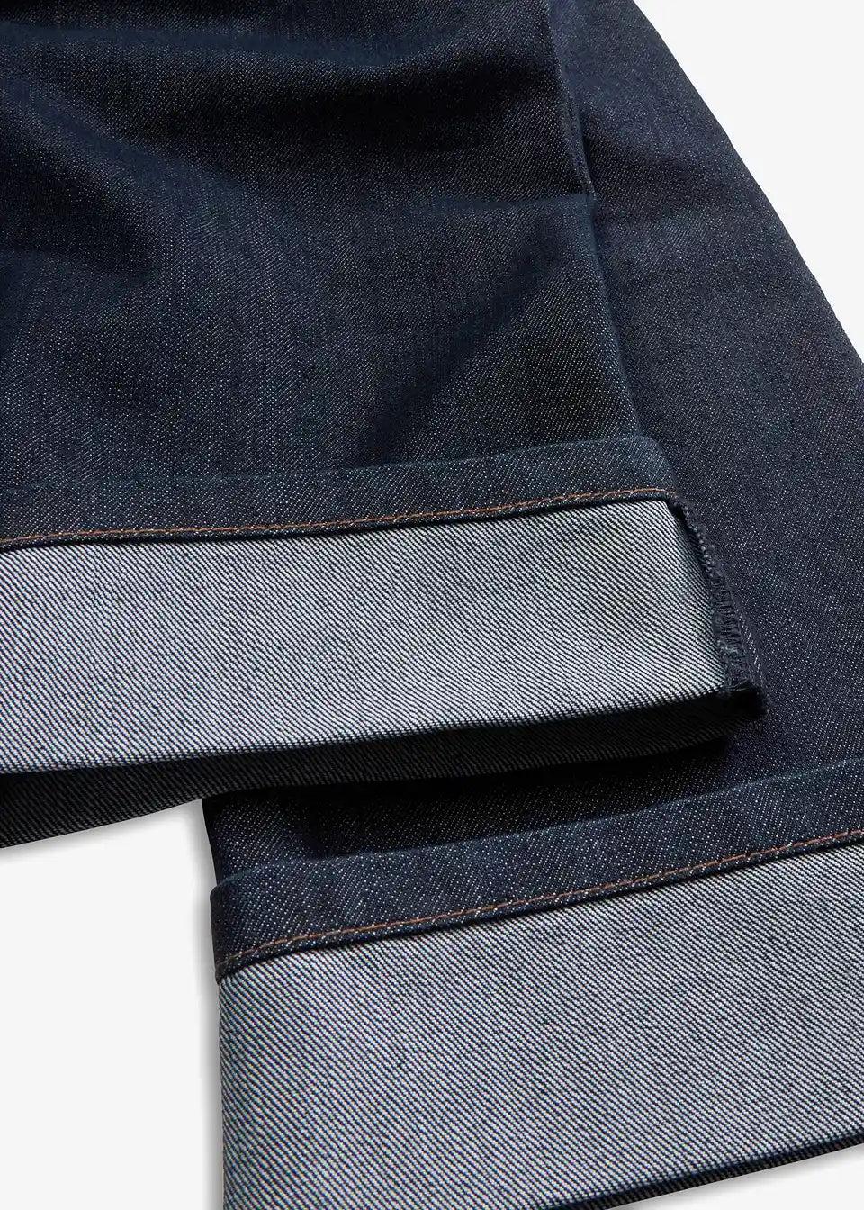 Die Jeans passt fast sehr gut. Sie ist mir nur an der Taille etwas zu weit, aber noch gut mit Gürtel tragbar. Die Form gefällt mir sehr gut. Das Material ist eher fest. Die dunkle Waschung ist sehr schön. Kann man umgeschlagen und normal tragen.