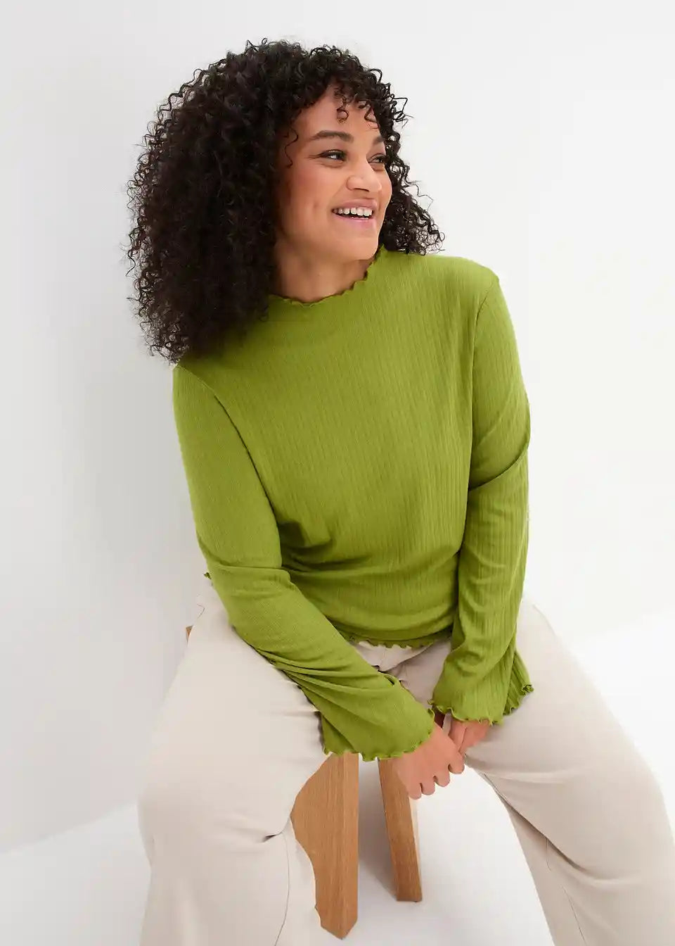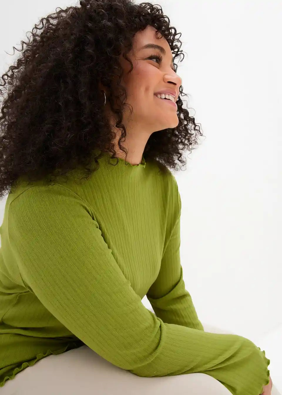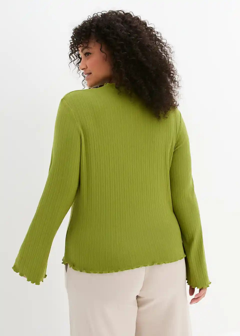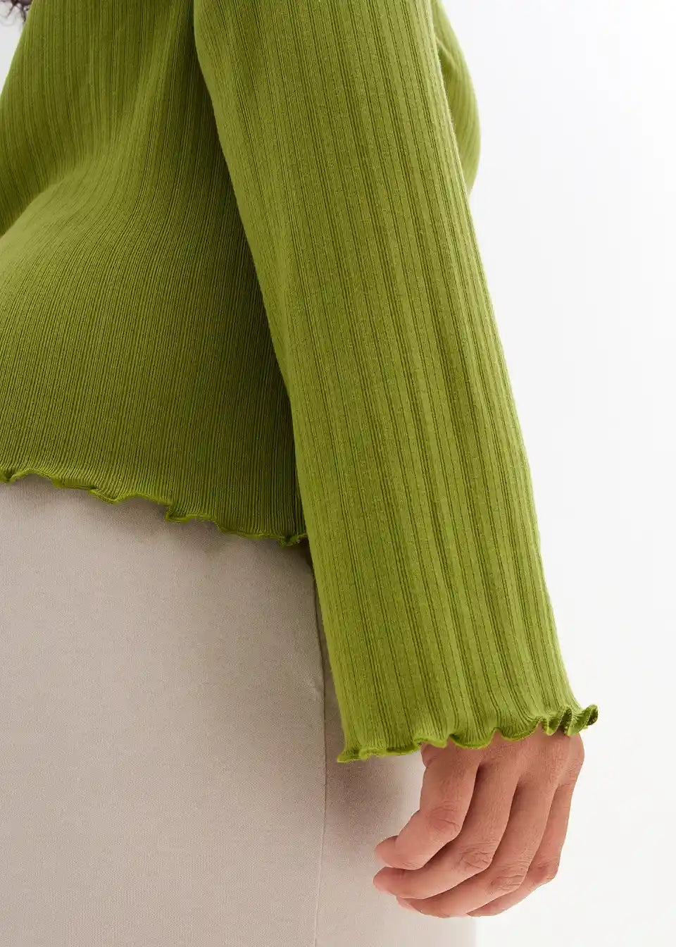 Majica dugih rukava s trumpet rukavima i valovitim porubom, slim fit
