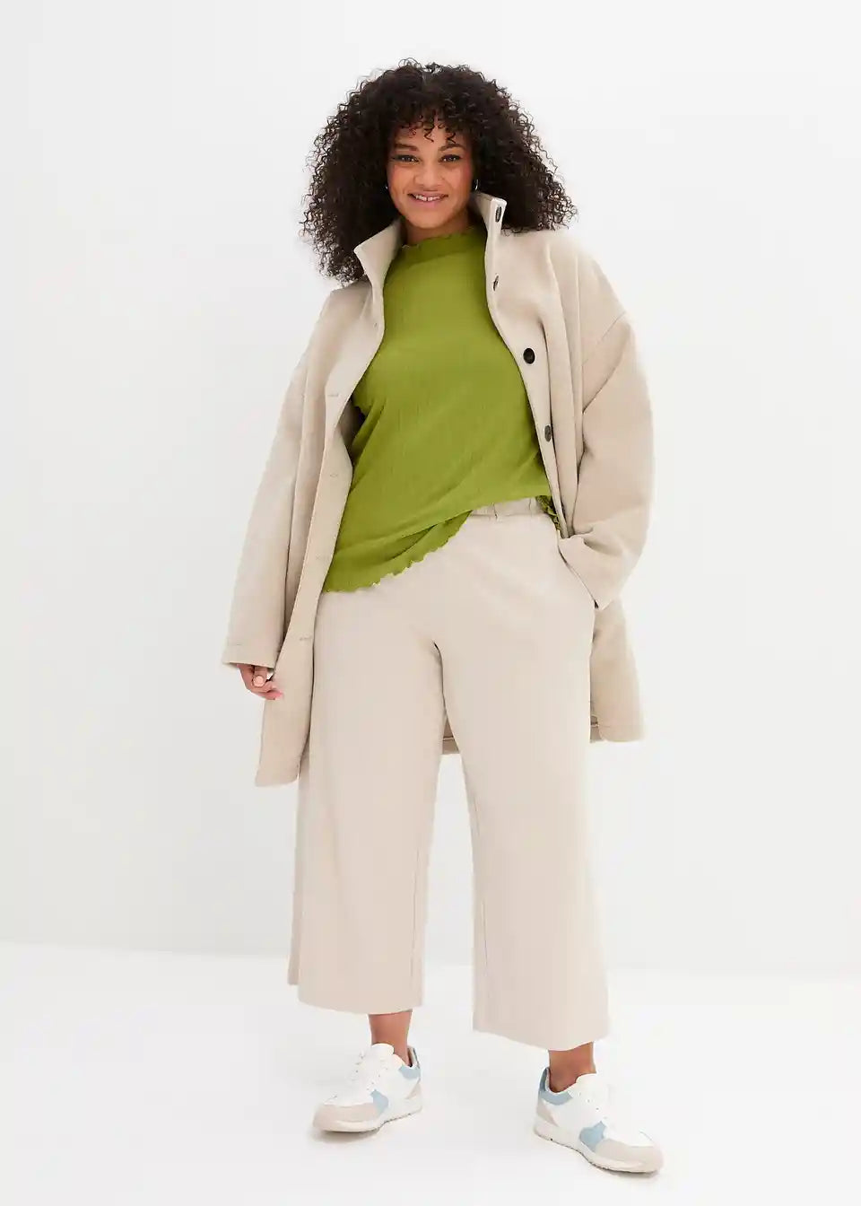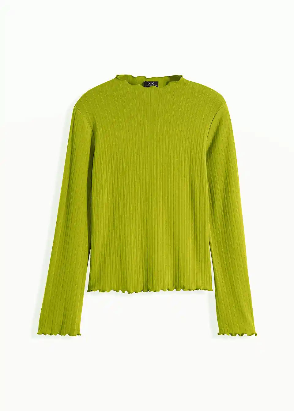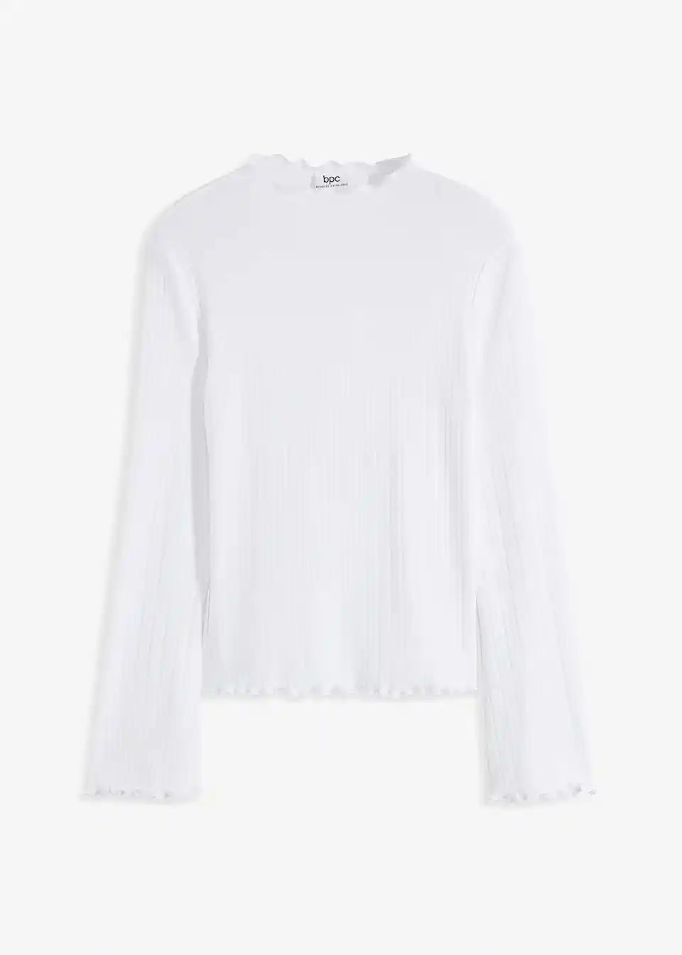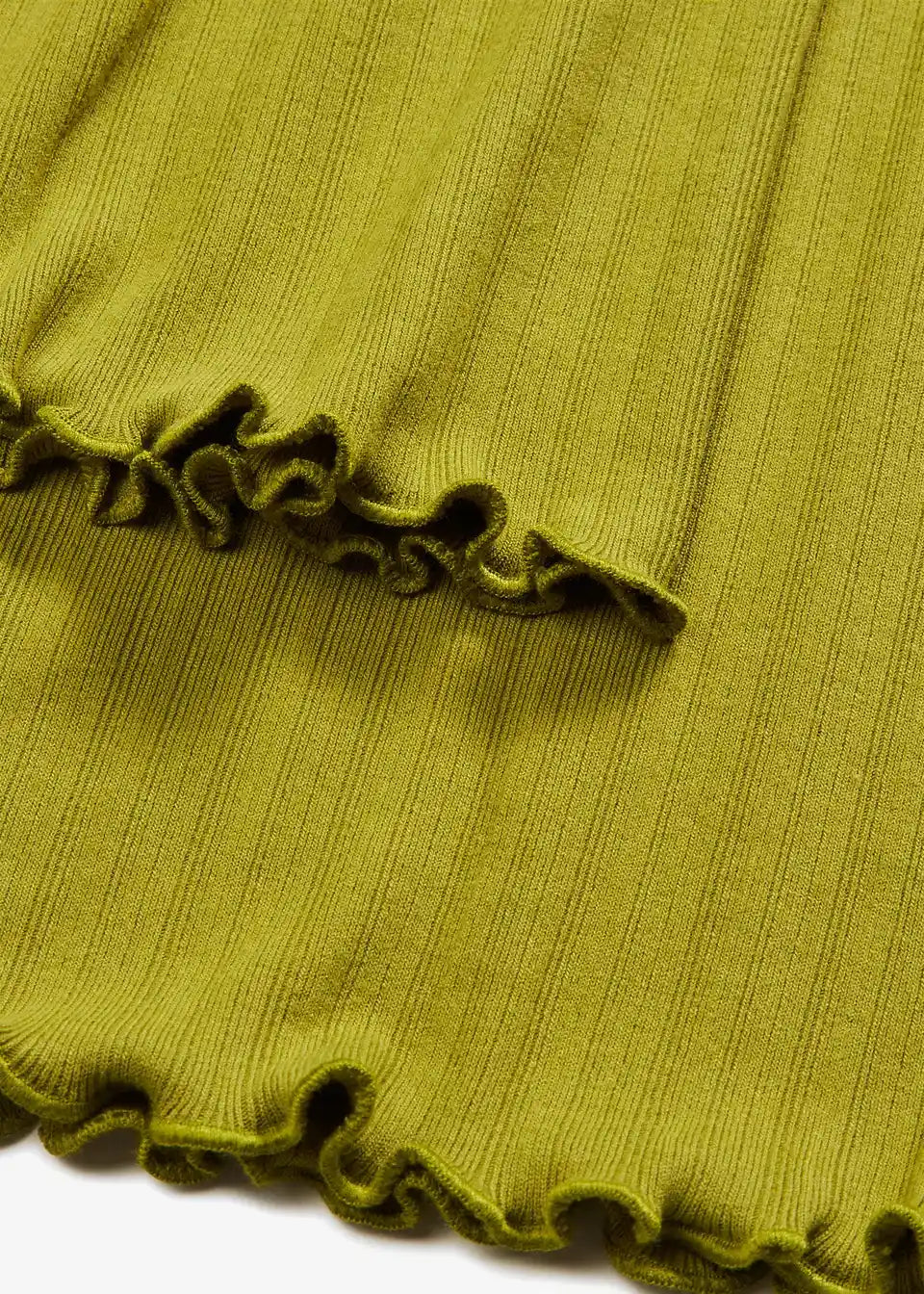 Majica dugih rukava s trumpet rukavima i valovitim porubom, slim fit