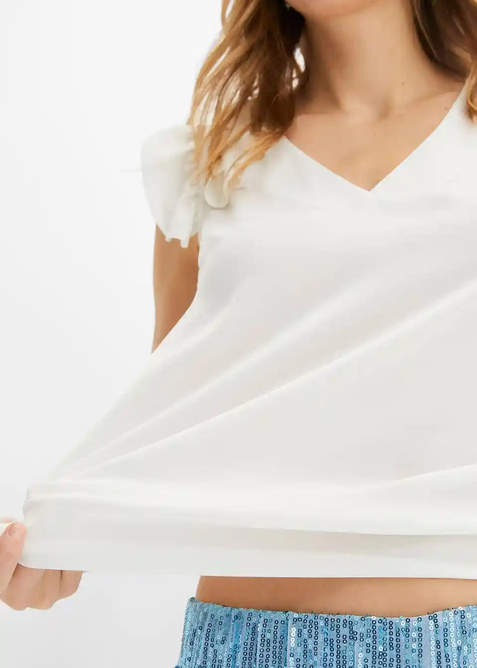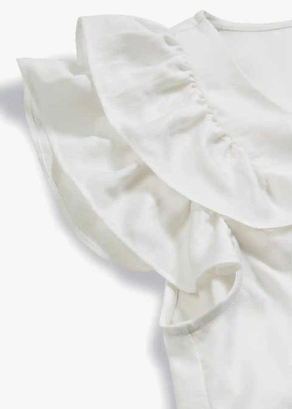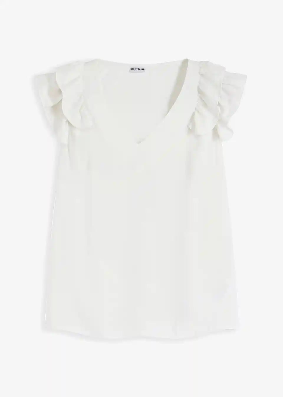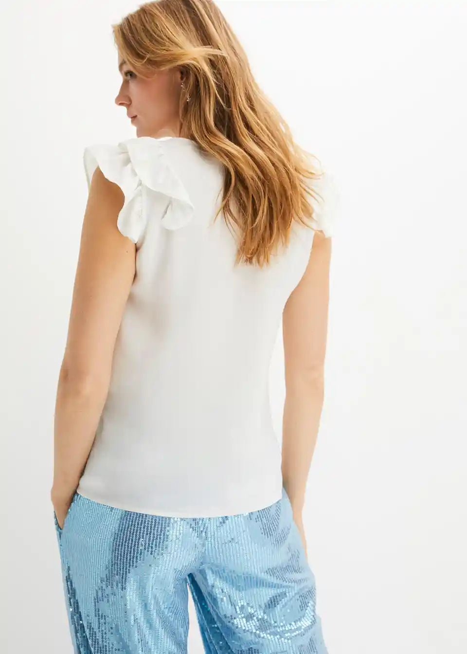 Ženstveni top s volanima na ramenima i dubokim dekolteom