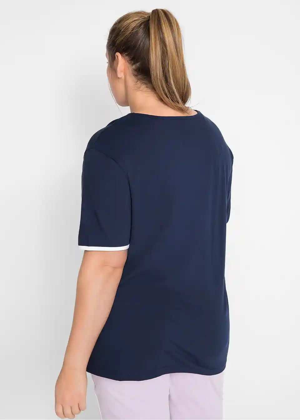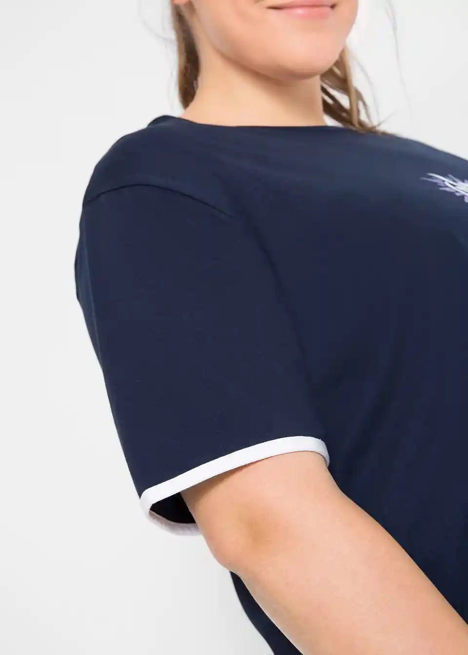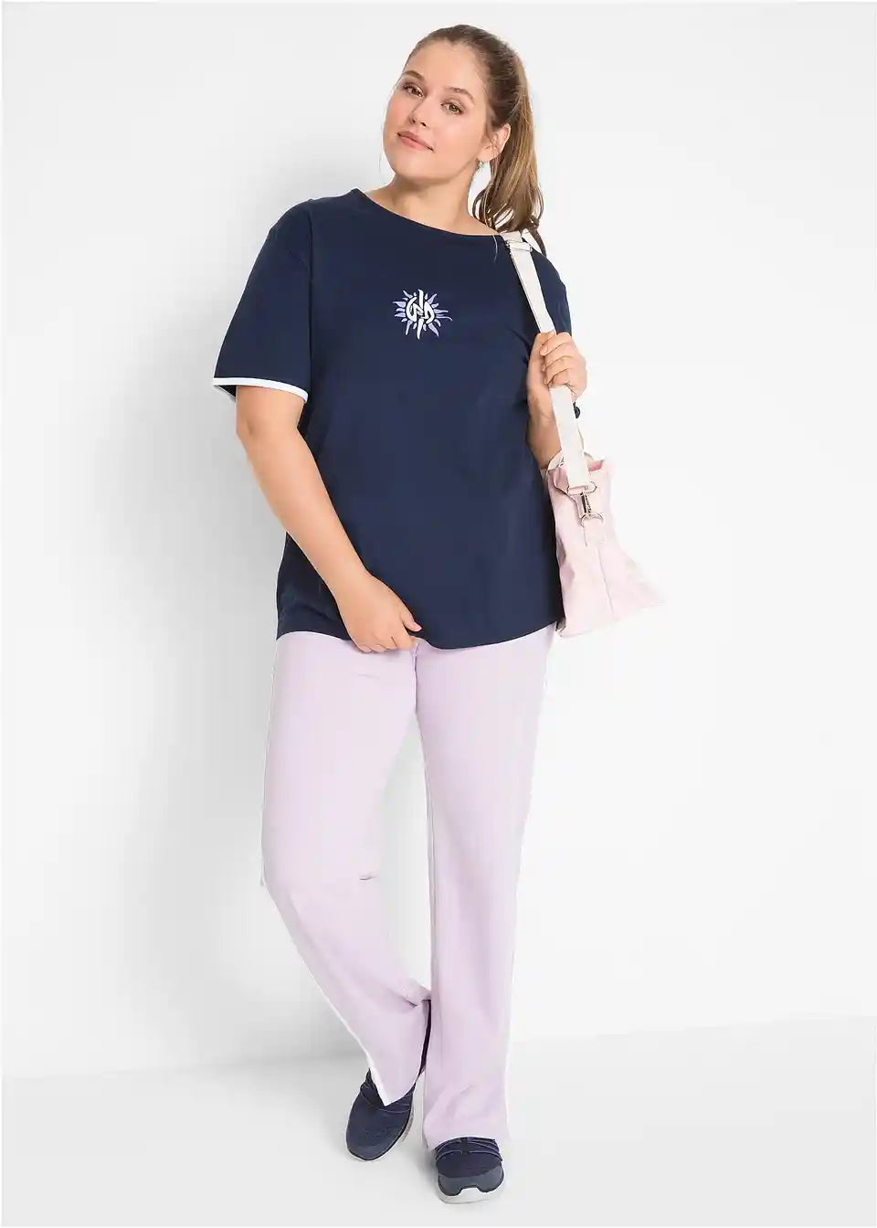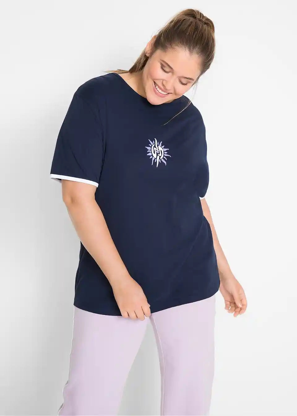 Ova duga majica marke bpc savršena je za sport i slobodno vrijeme. Za visoku udobnost nošenja zaslužni su ležeran kroj i materijal ugodan za kožu od pamuka. Majica s okruglim izrezom dobiva moderan izgled zahvaljujući obrubu rukava u drugoj boji i diskretnom printu na prsima. Bilo da je kombinirate s kratkim hlačama, trapericama ili suknjom – ova povoljna duga majica ne bi smjela nedostajati ni u jednom ormaru.