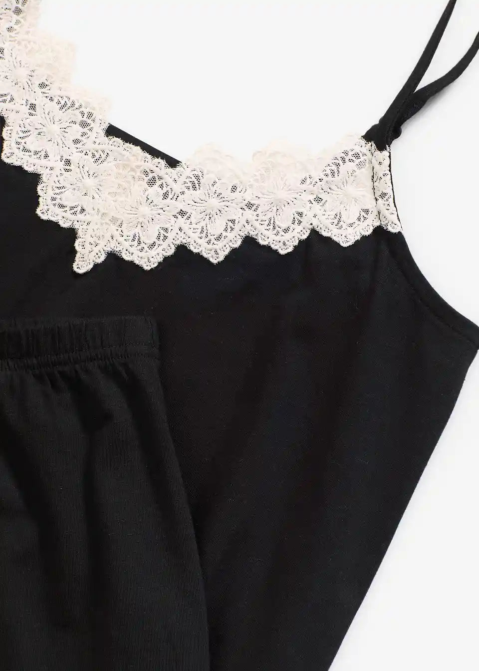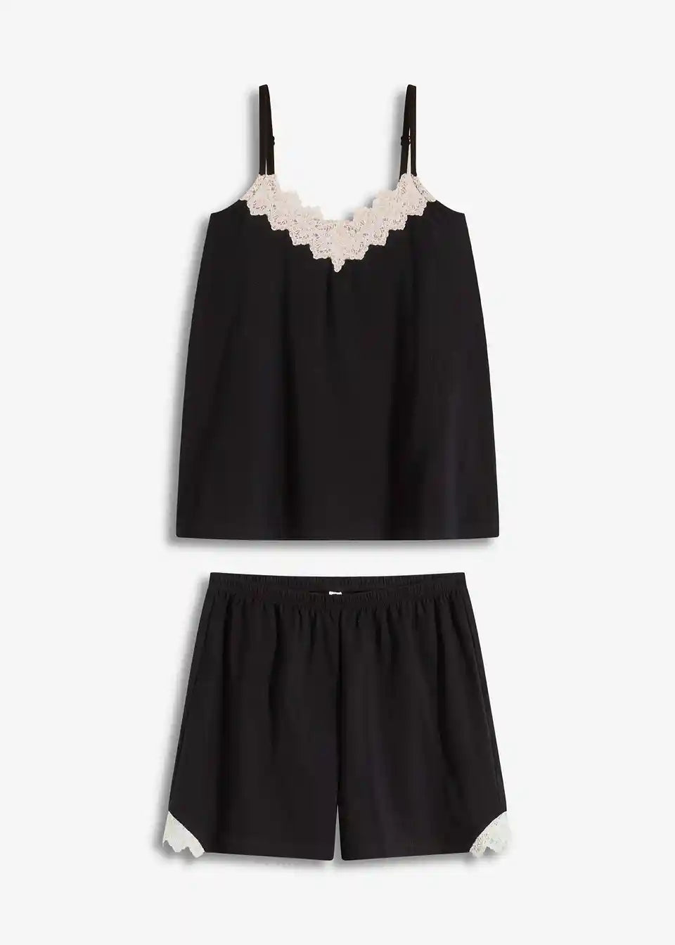 Ženski shorty s podesivim spaghetti naramenicama i dubokim V-izrezom s posebno lijepom čipkom