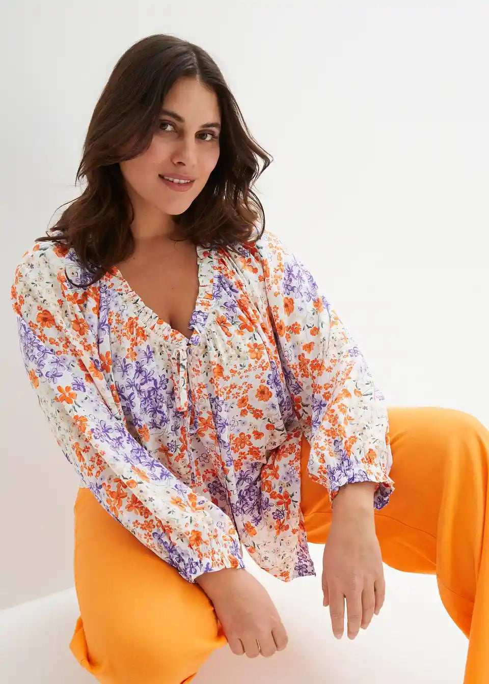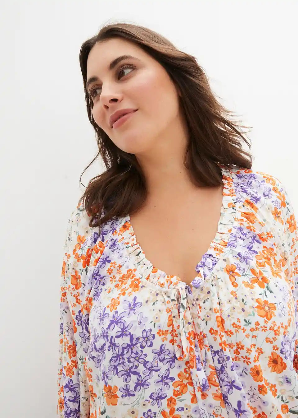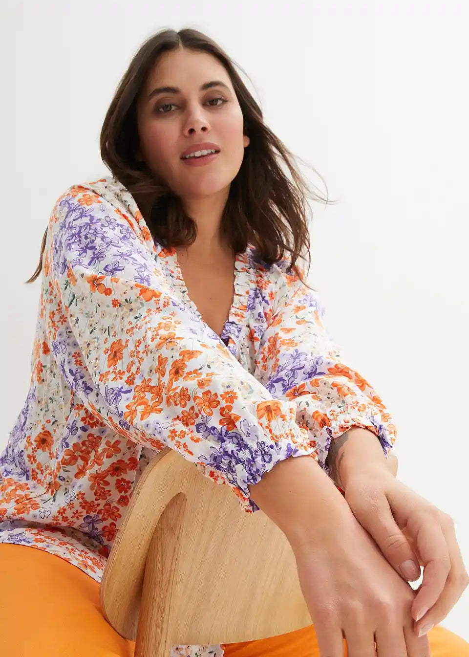 Ležerno krojena strukturirana bluza s volanima i cvjetnim printom