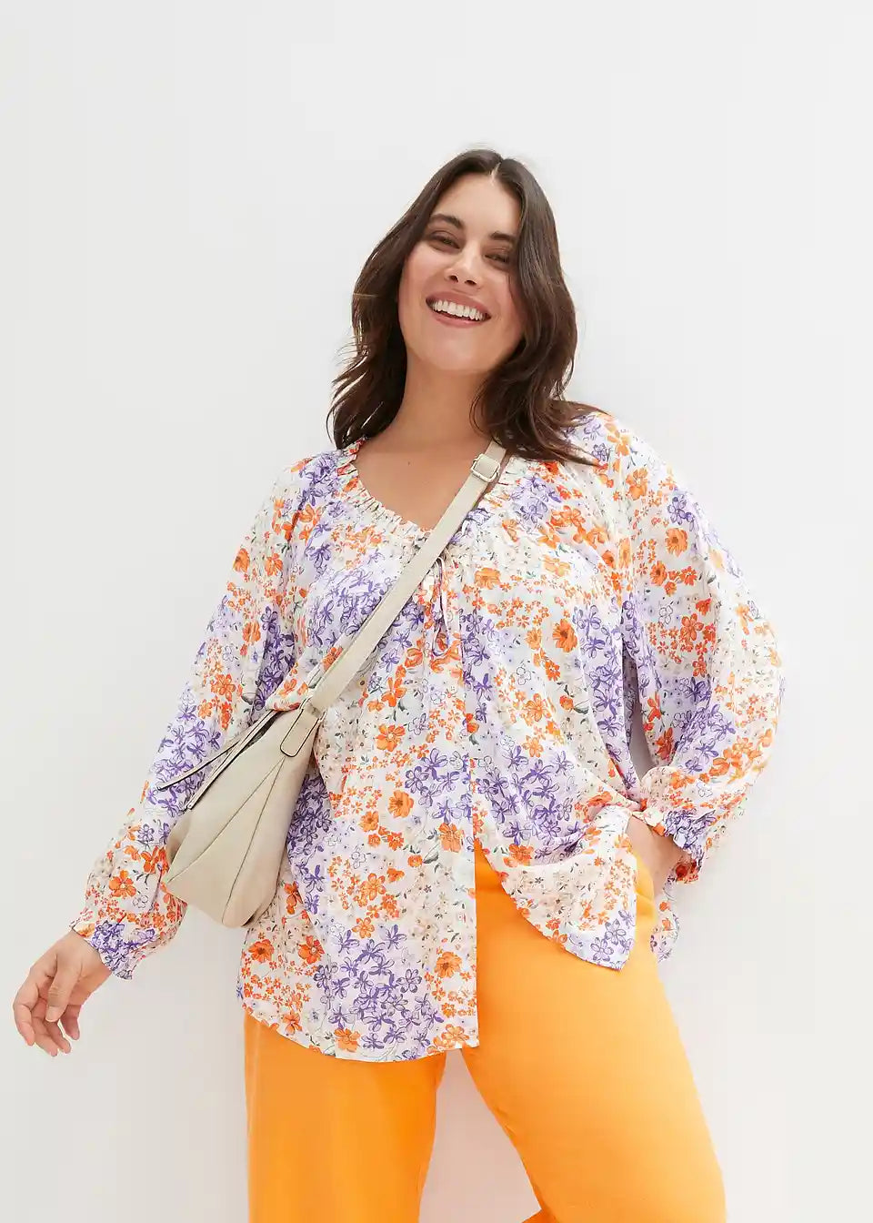 Široka bluza sa strukturom, naborima, uzorkom i 7/8 rukavima A kroja