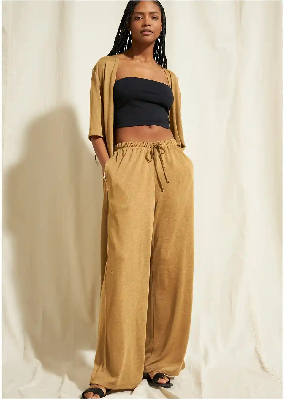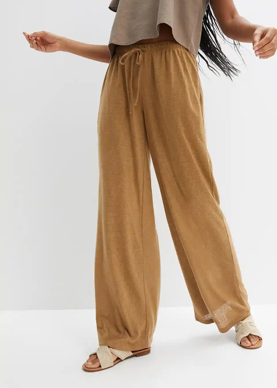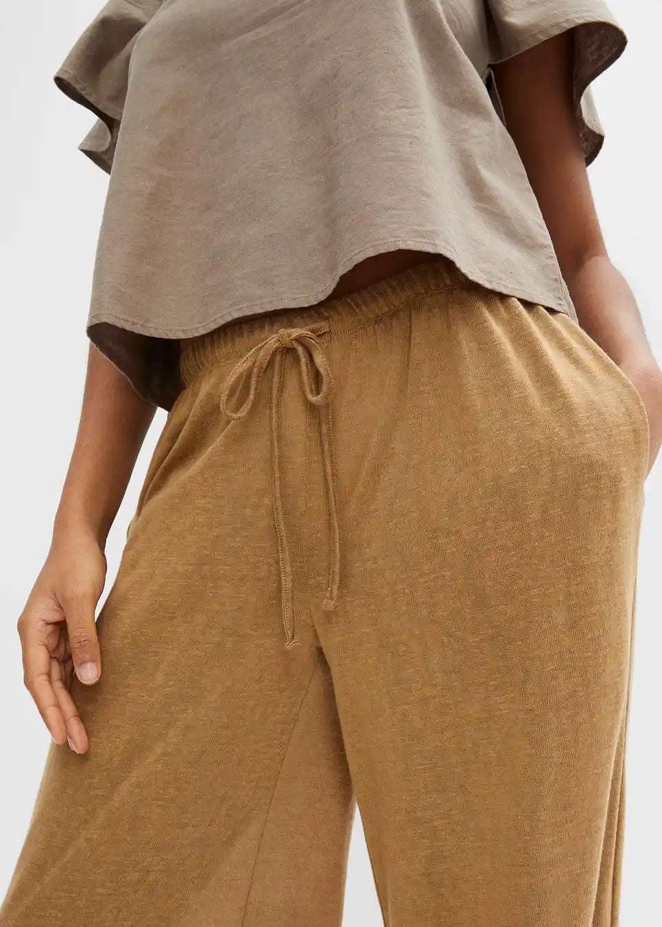 Široke transparentne hlače od laganog materijala s detaljima za vezanje