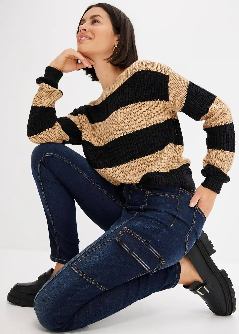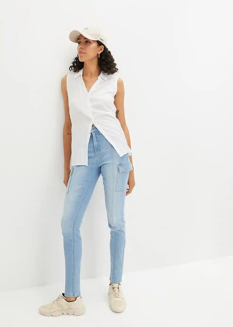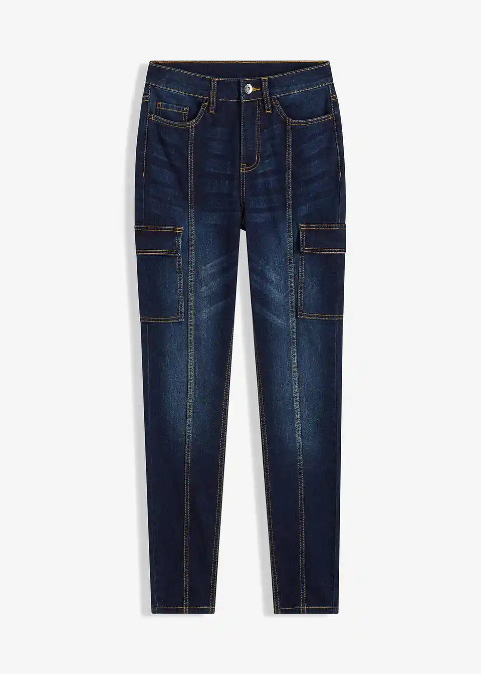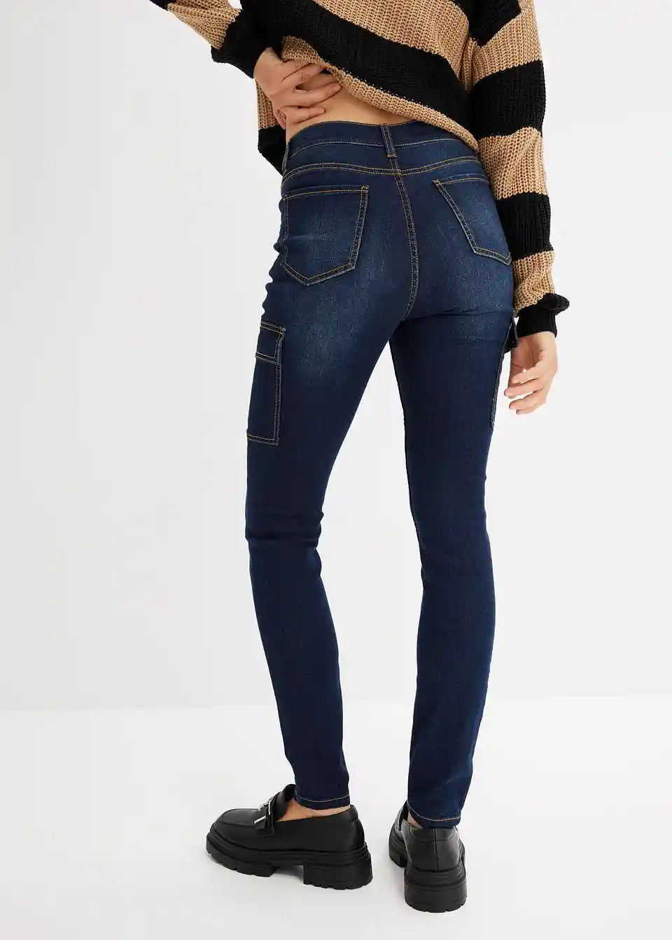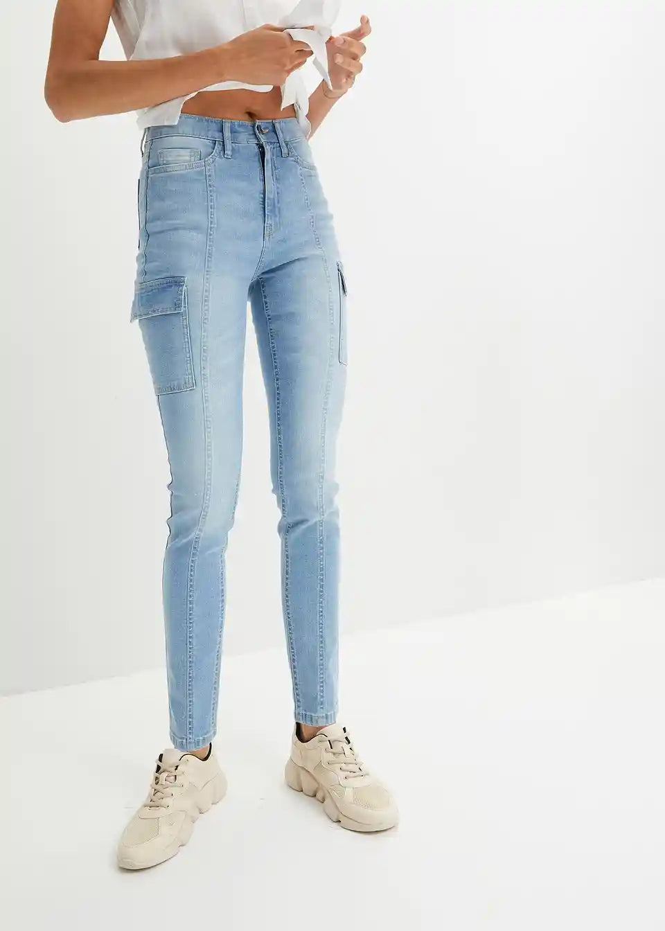 Moderne High Waist uske traperice s cargo džepovima i dekorativnim šavovima