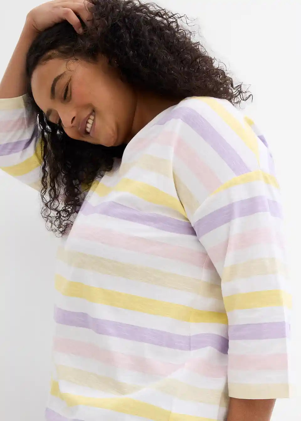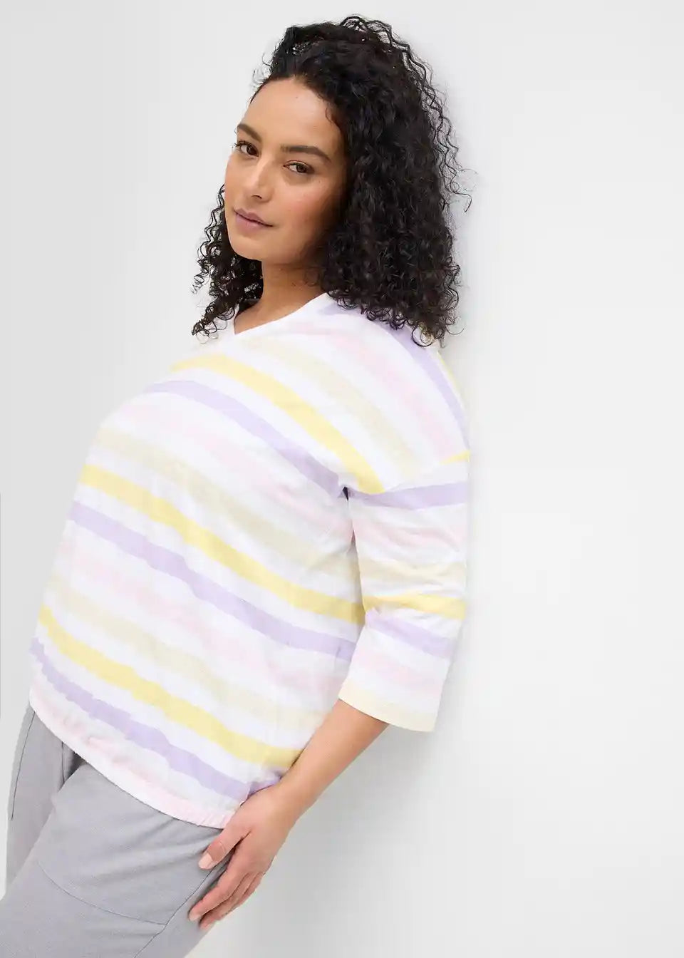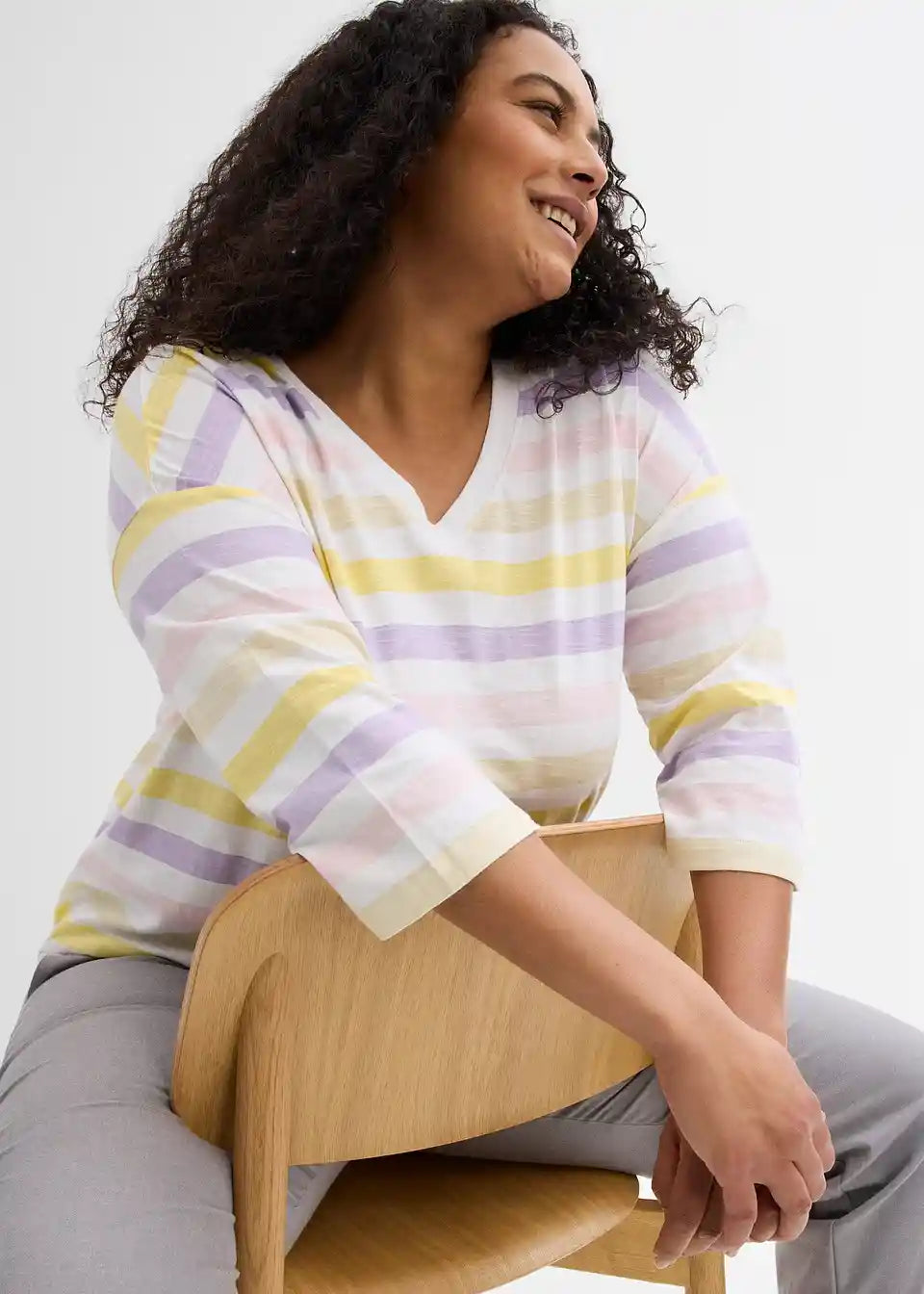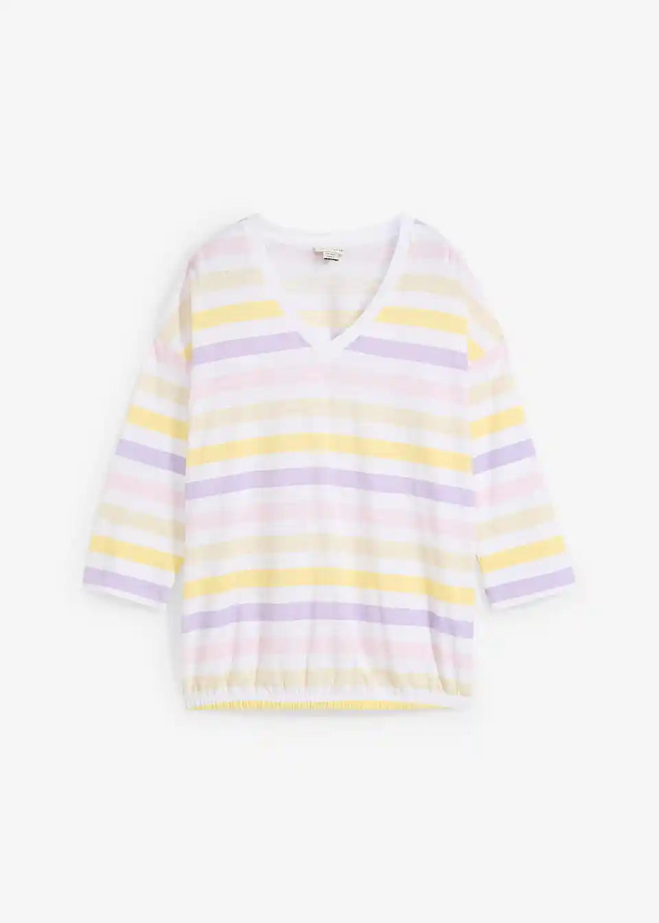Slub-Shirt od pamuka s 3/4 rukavima i V-izrezom u prugastom izgledu