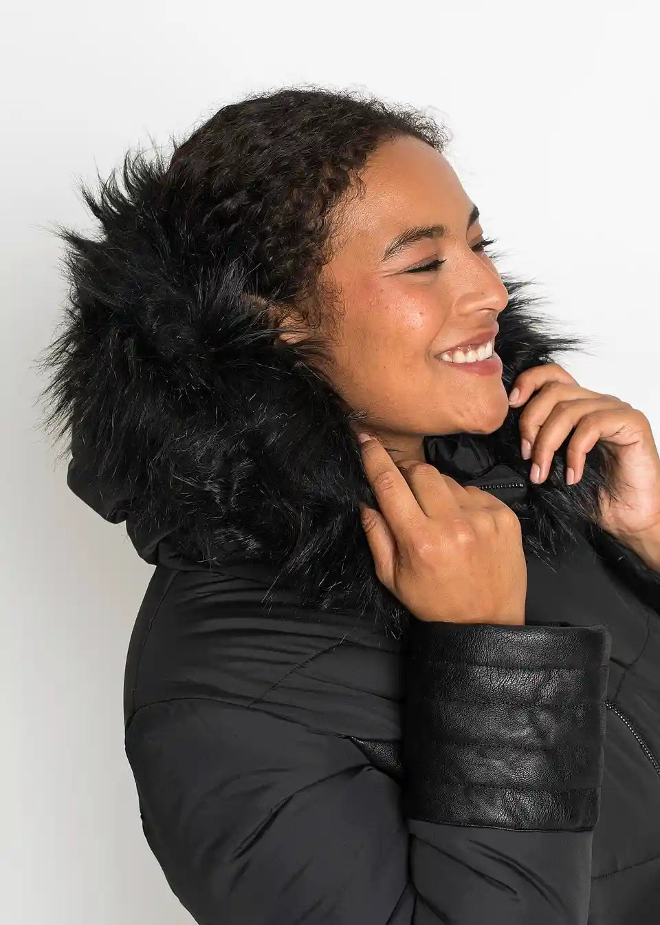 Materijal:gornji materijal: 100% poliester (reciklirani), podstava: 100% poliester, vatirana podstava: 70% poliester, 30% poliester (reciklirani), imitacija krzna: 71% akril, 18% modakril, 11% poliester, umetak: 100% viskoza