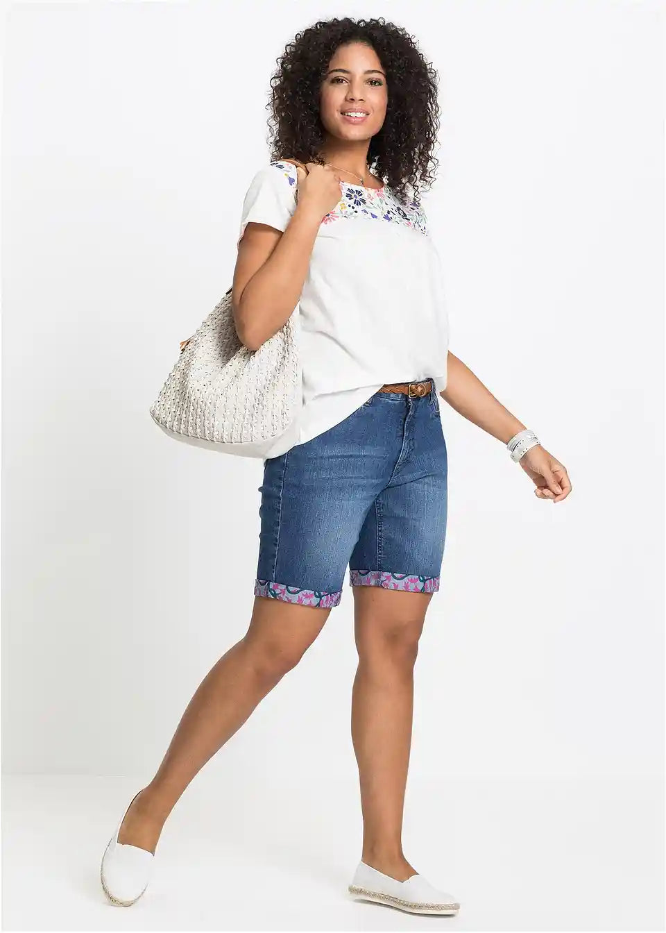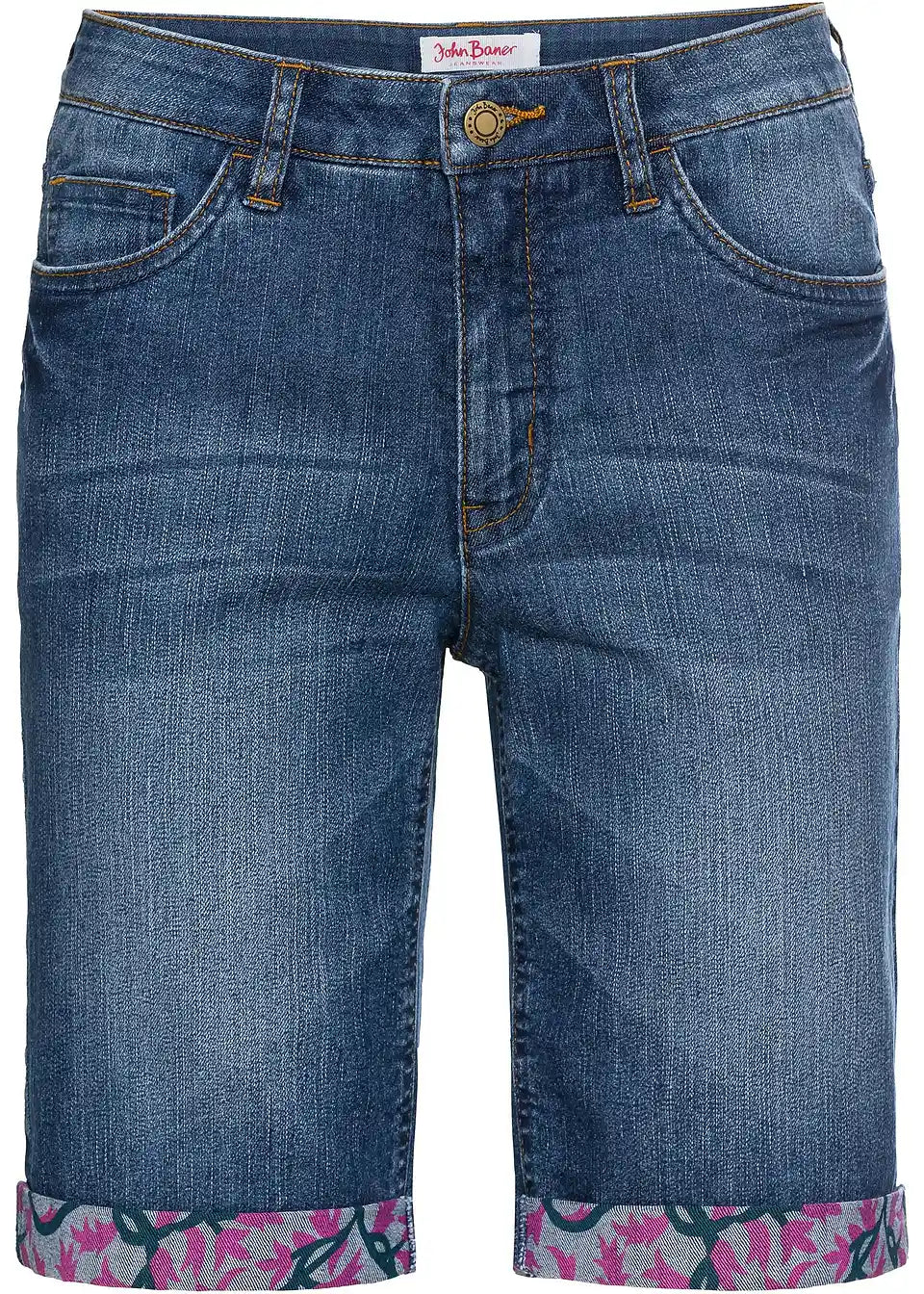 Ravni kroj i uska silueta osiguravaju odličan izgled za ove stretch traper bermude s obojenim porubom. Model u tipičnom 5-džepnom dizajnu dolazi s blagim ispiranjem. Naglašen kontrastni završetak poruba pruža atraktivan izgled. Stretch traper bermude s obojenim porubom marke John Baner izgledaju vrlo ležerno uz rebrasti majicu bez rukava i tenisice. Još ženstveniji izgled možete postići uz majicu s floralnim uzorkom ili laganu tuniku i espadrile.