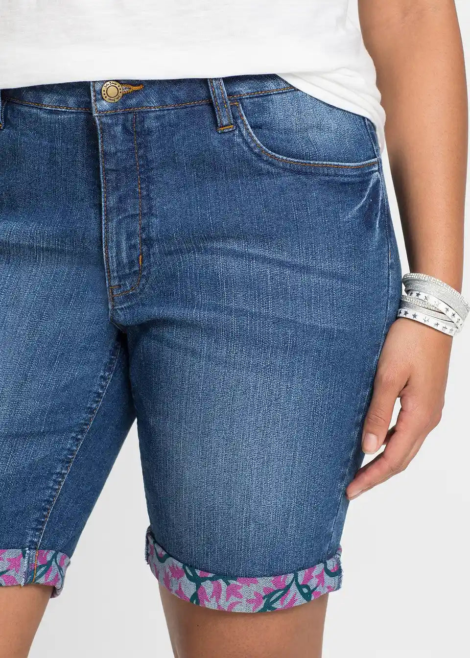 Uske traper bermude sa stretchom i porubom s uzorkom