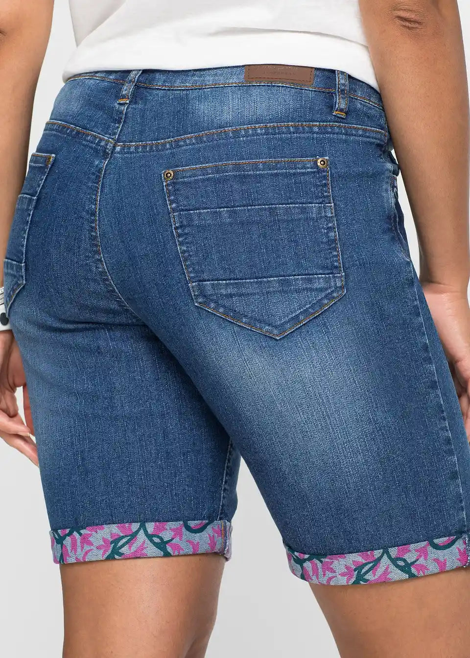 Stretch bermude od trapera sa zavrnutim rubom u boji