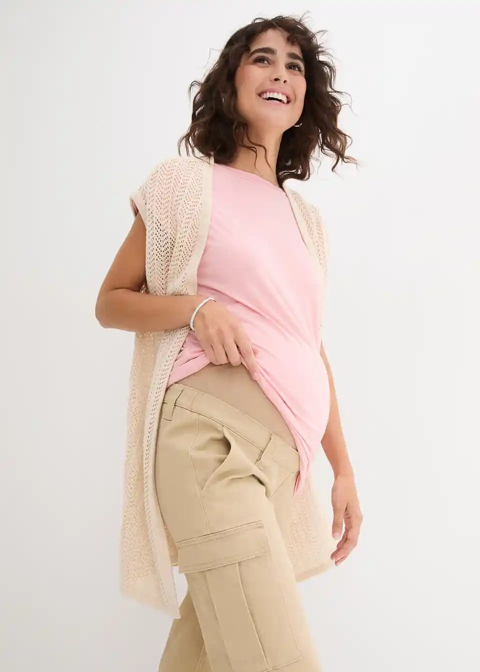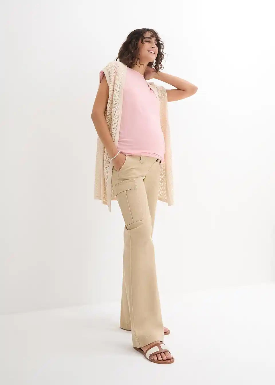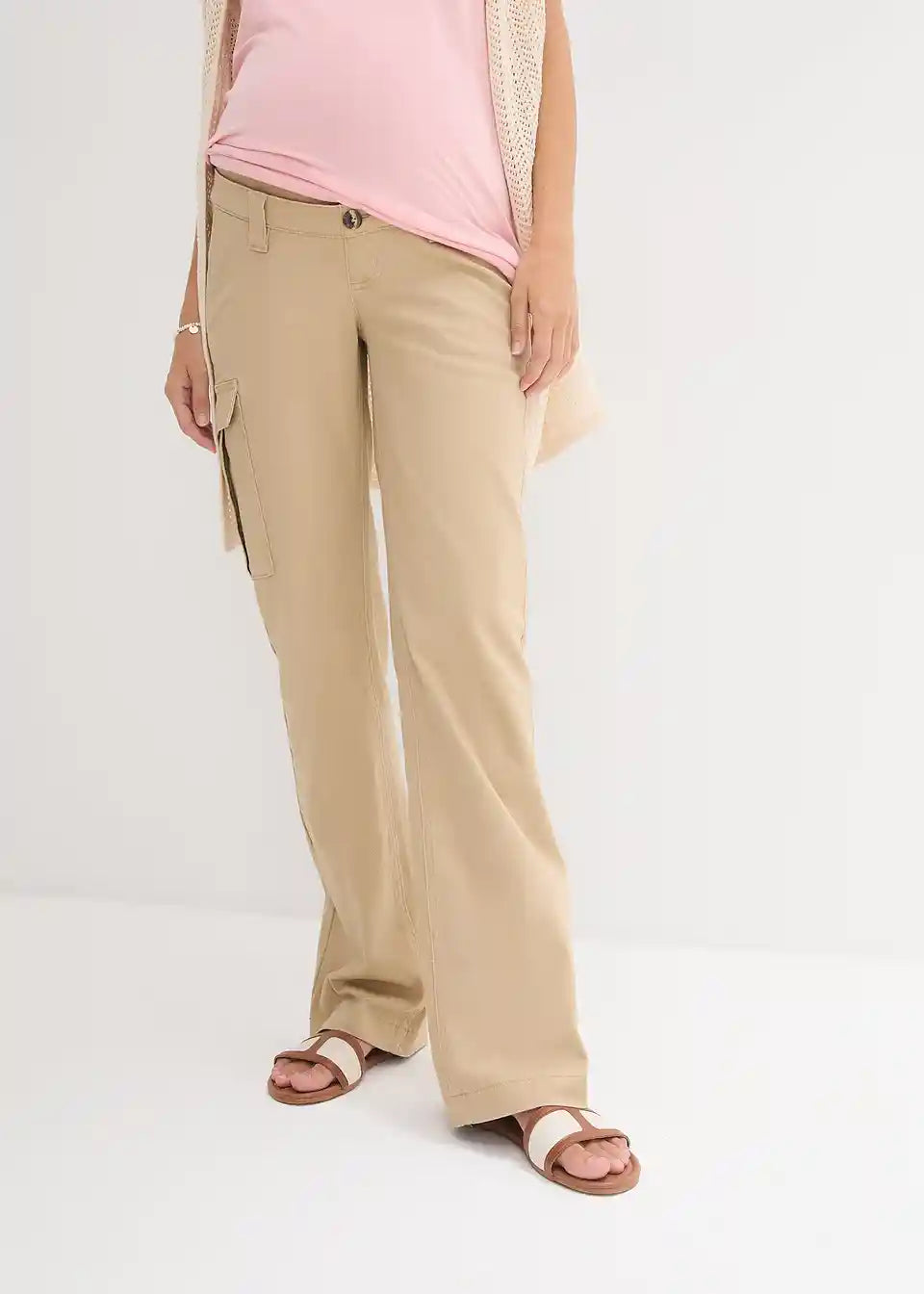 Stretch hlače s cargo džepovima za trudnice ravnog kroja