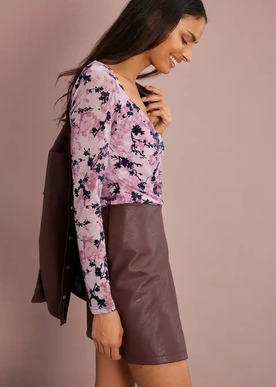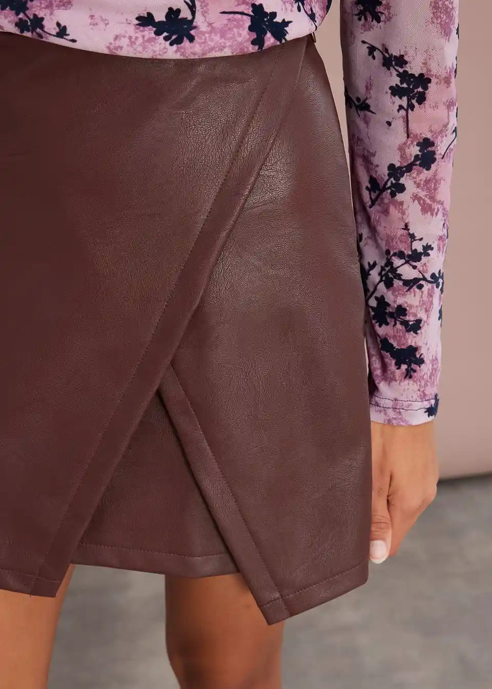Mini suknja od imitacije kože s asimetričnim porubom
