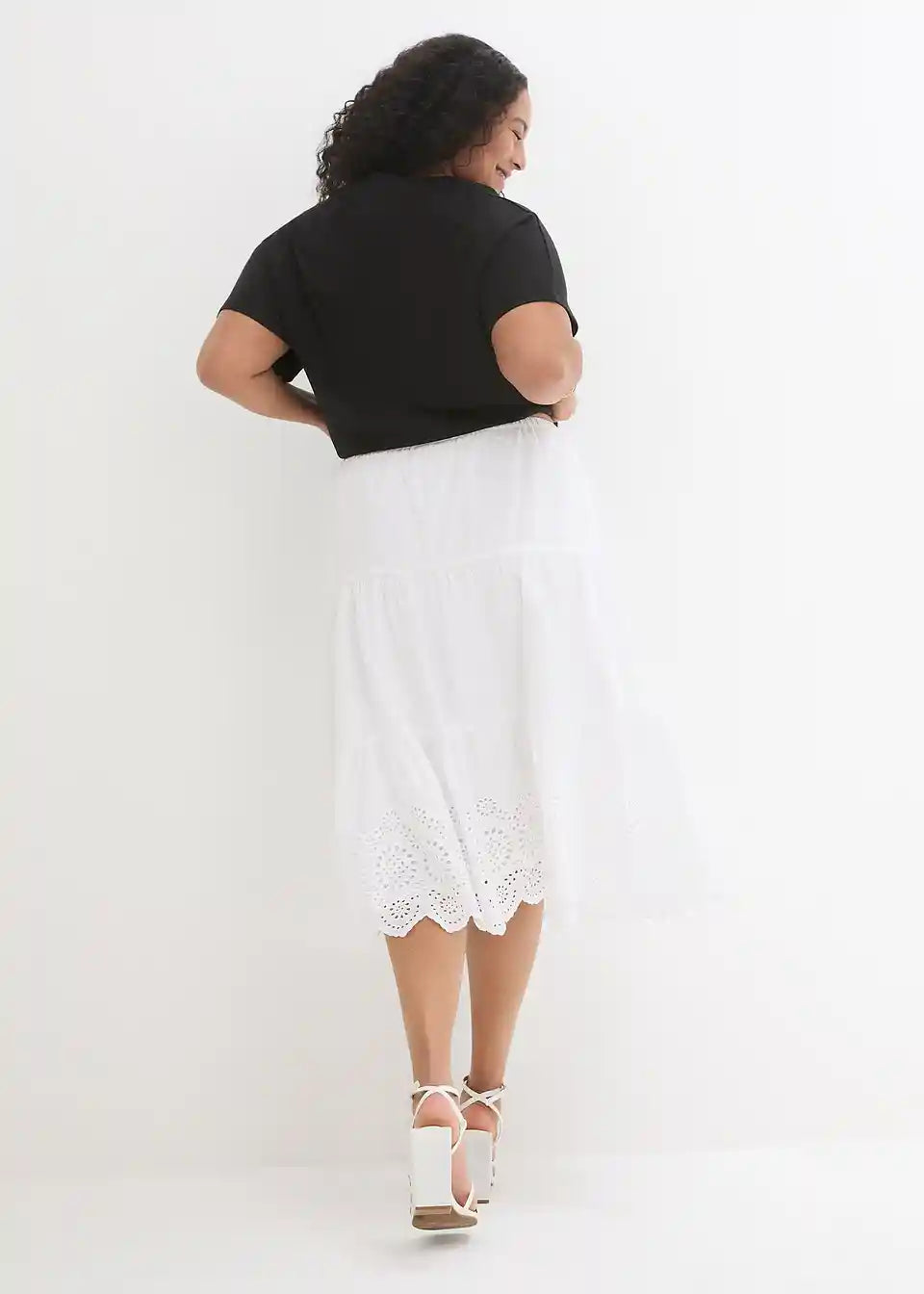 Elegantna suknja s volanima i prozračnom čipkom s nizom gumba