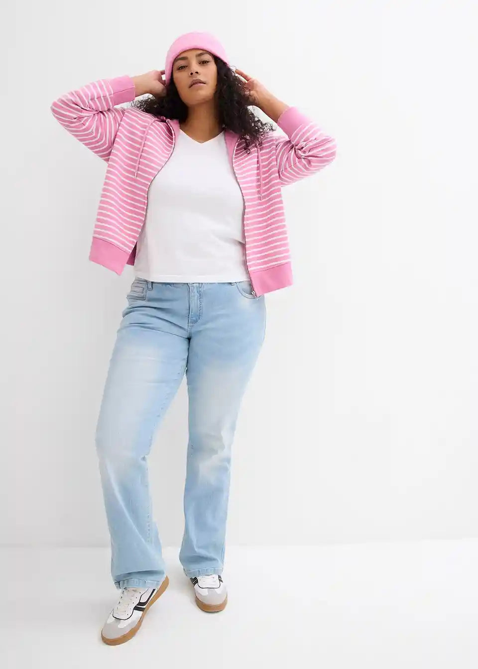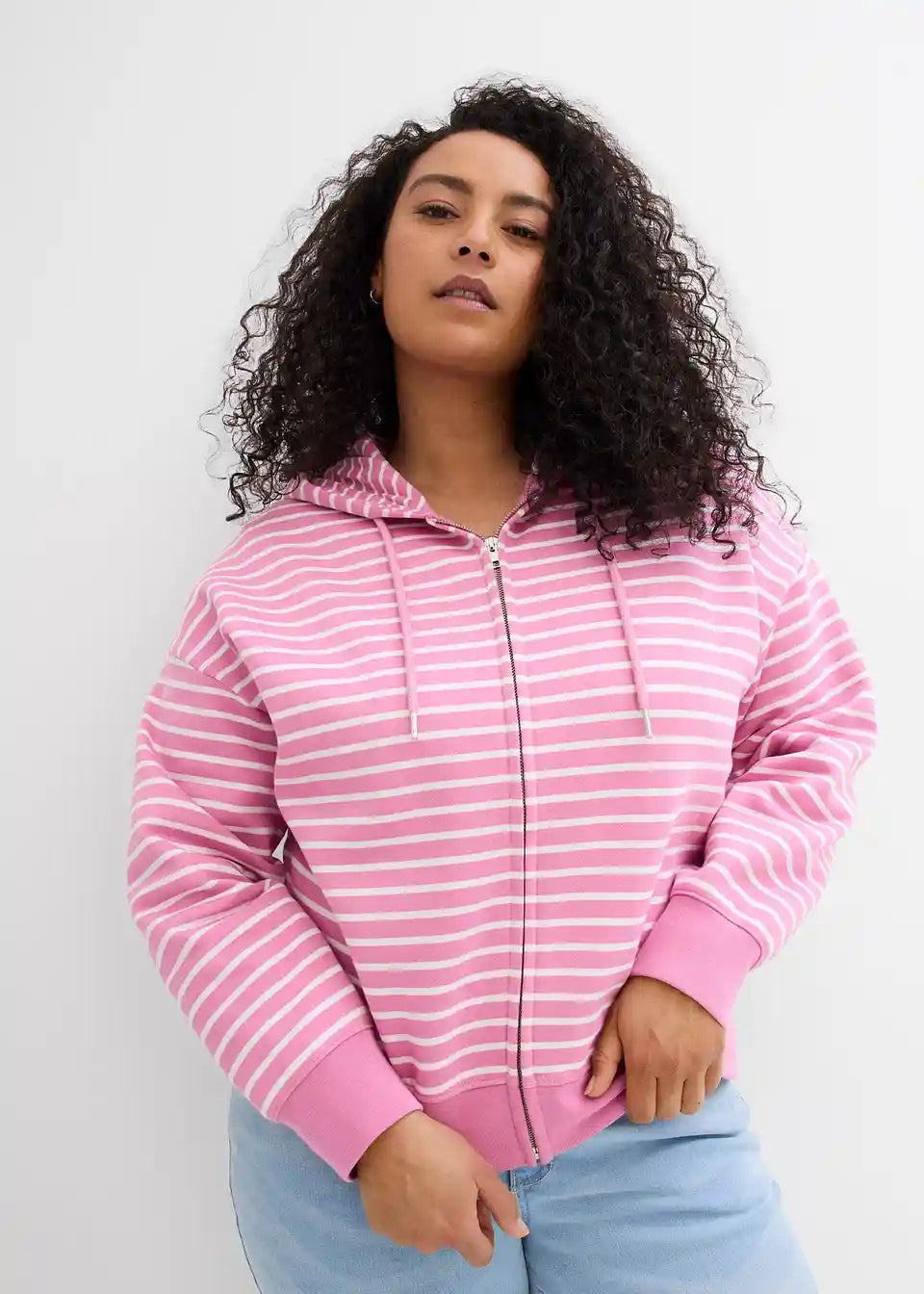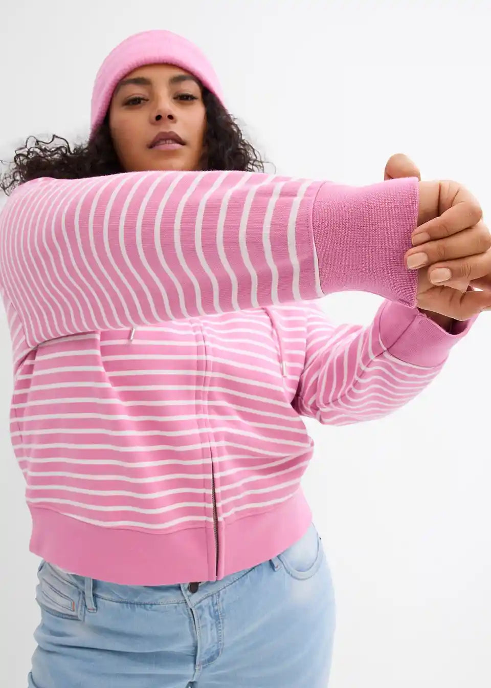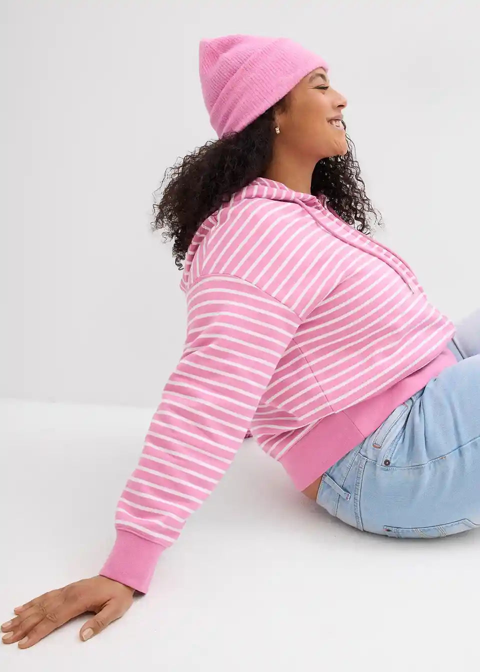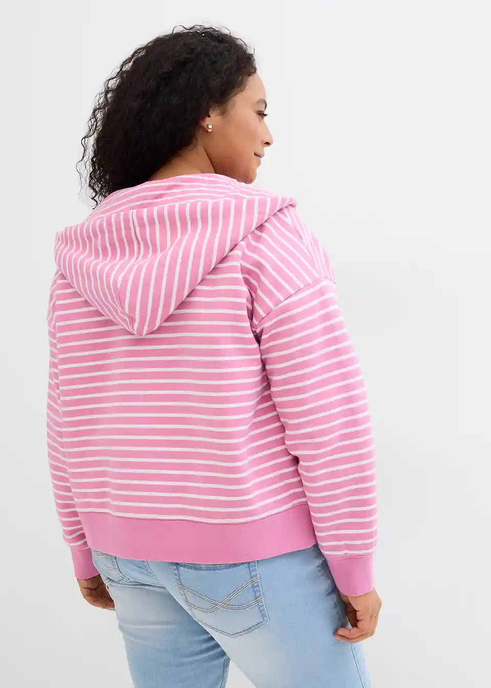 Široko krojena, kratka sweatjakna s modernim prugastim uzorkom