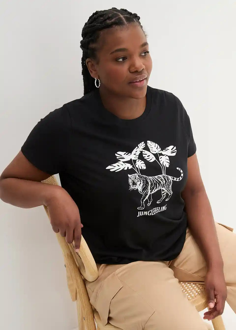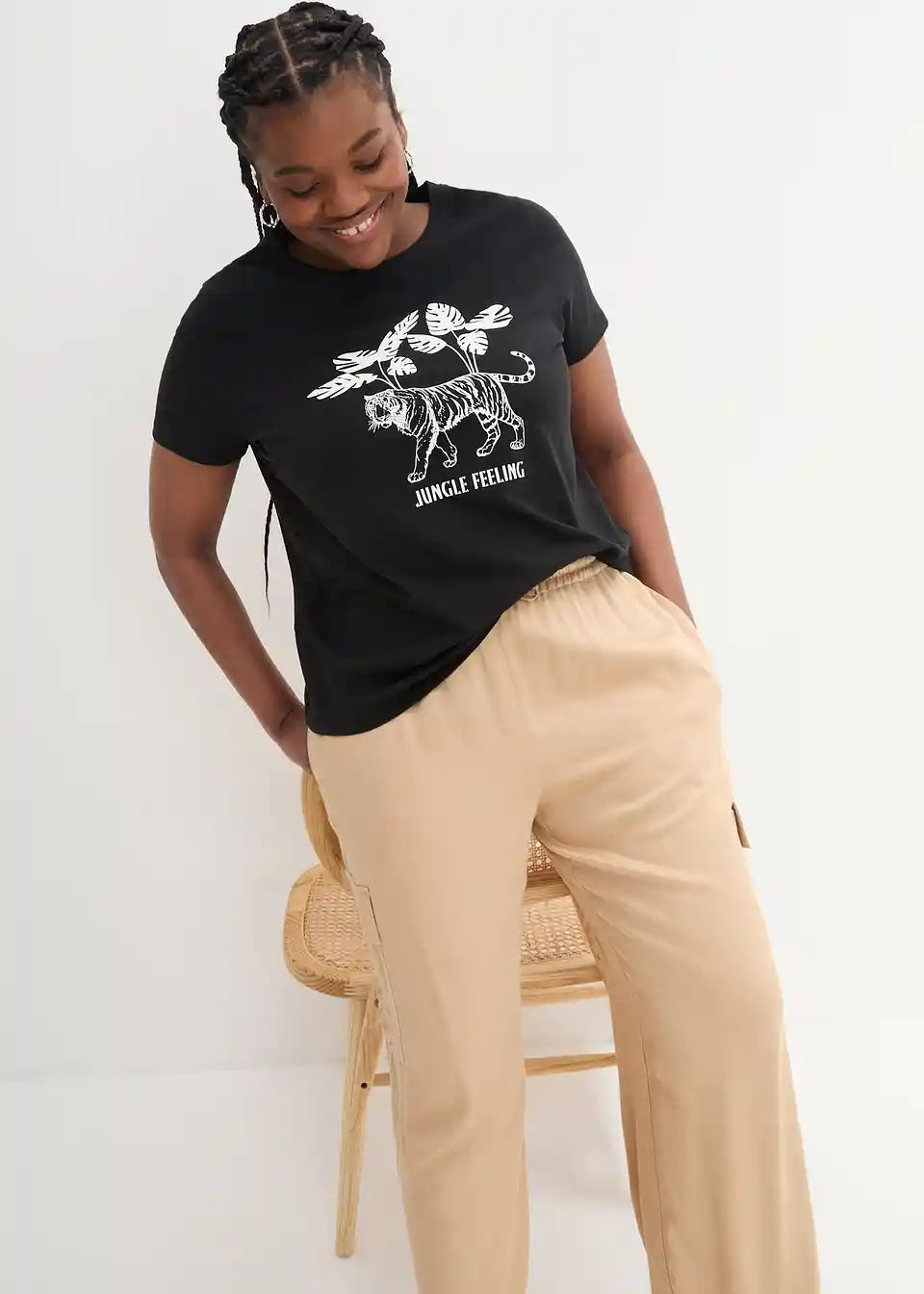 Ležerno pripijeni T-Shirt s upečatljivim printom sprijeda