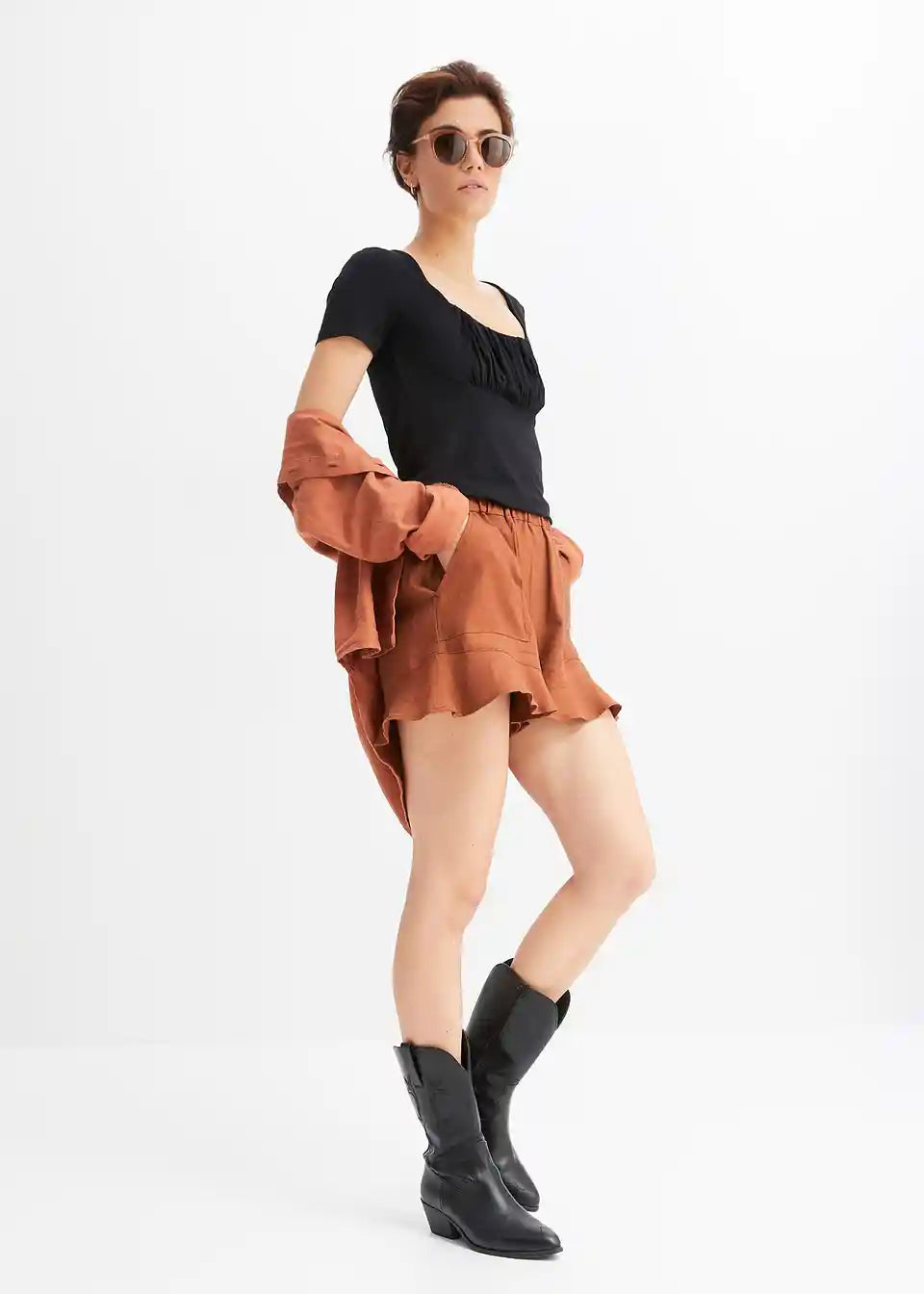 Model je visok 1,78 m i nosi veličinu 36/38.