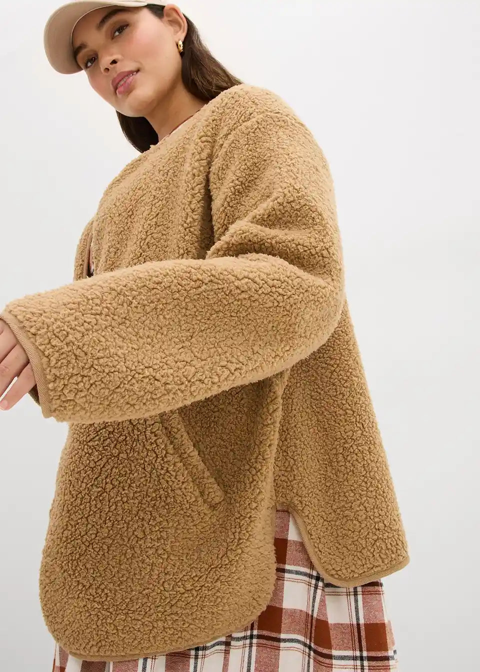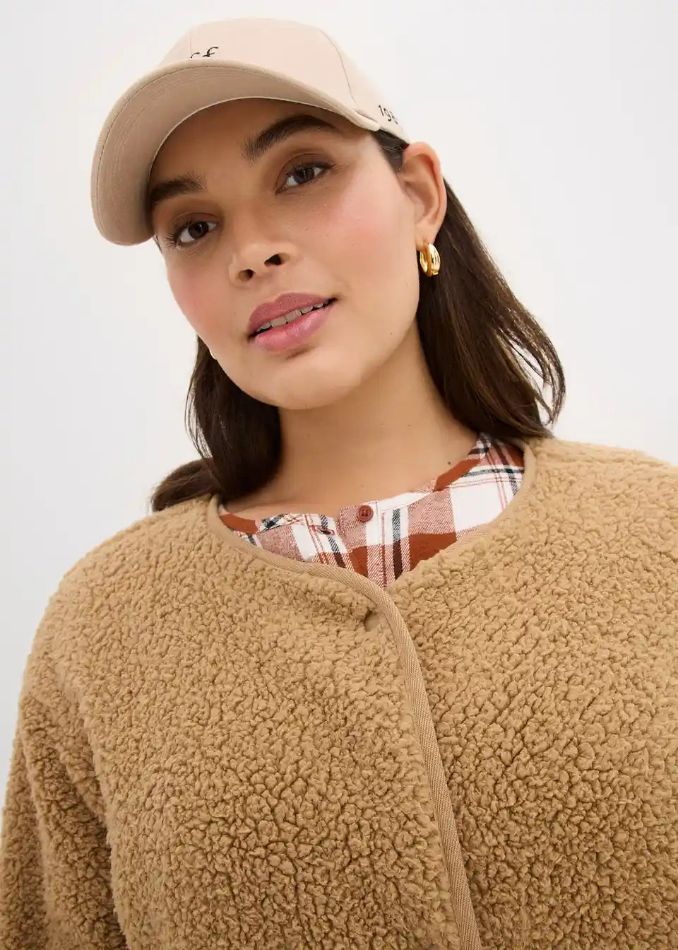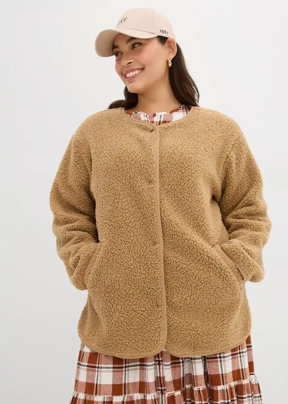 Teddy-Fleece jakna dužine do bokova s lagano zaobljenim rubom i bočnim džepovima.