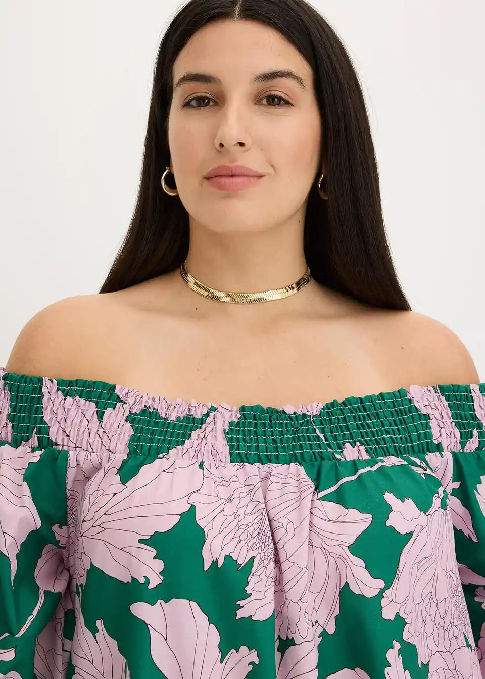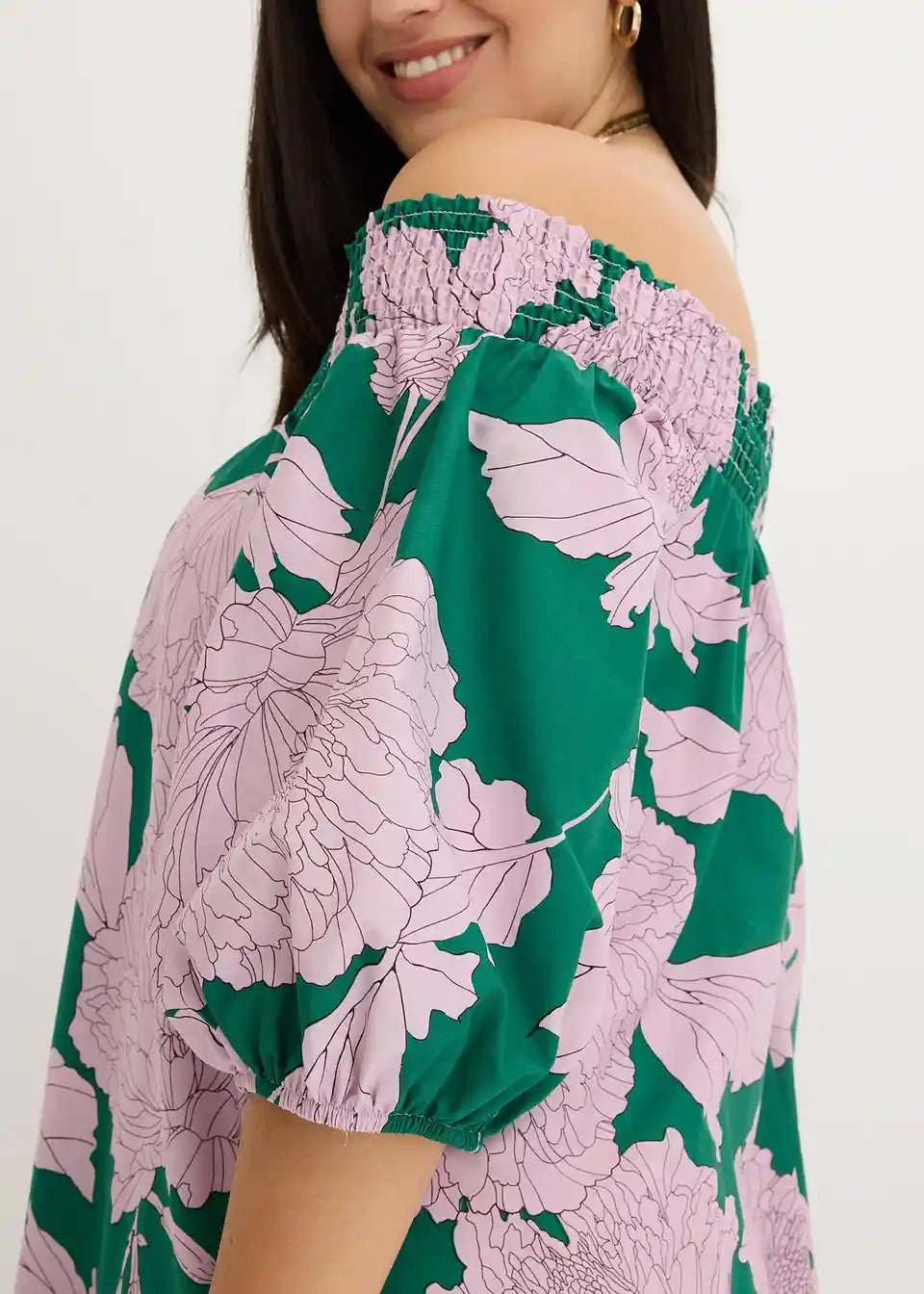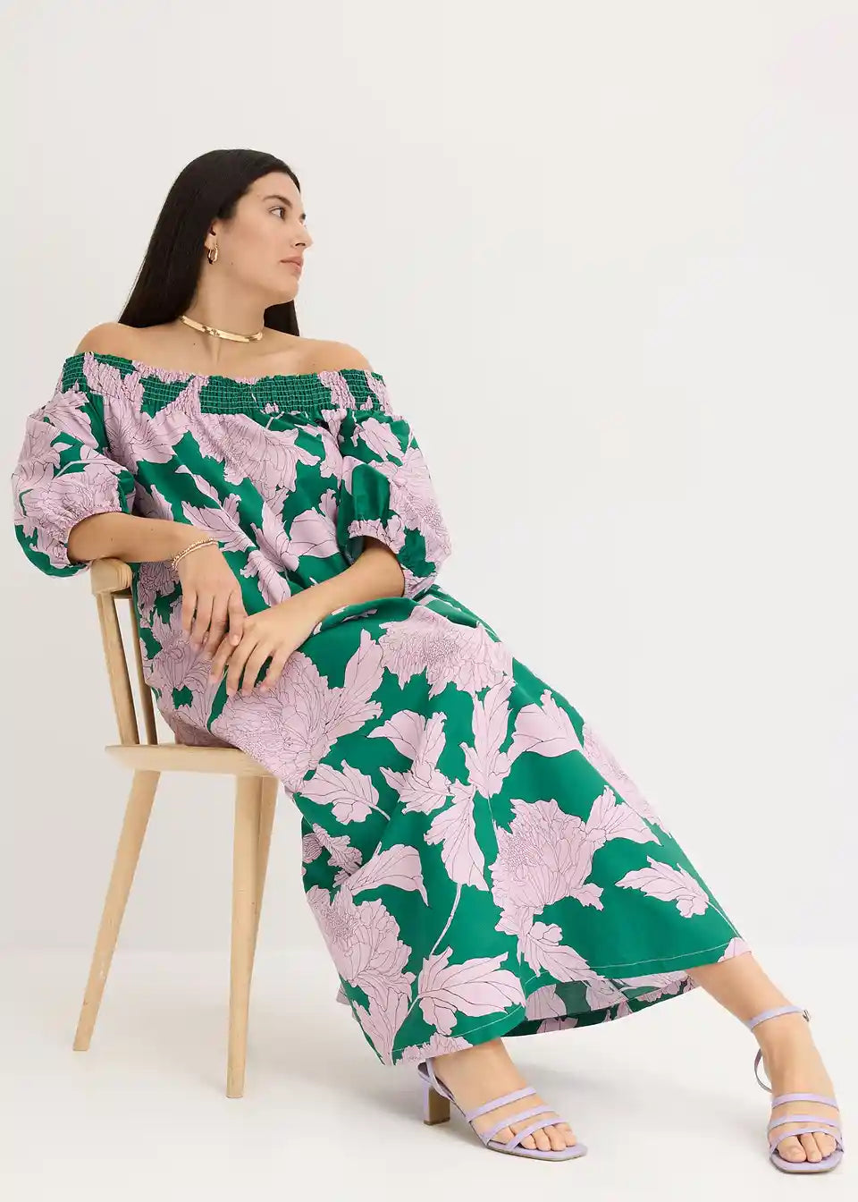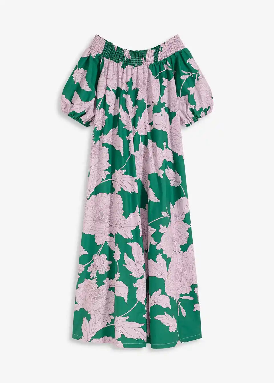 cvjetno tiskana popelin Carmen-haljina maksi dužine od čiste pamuka s puff rukavima
