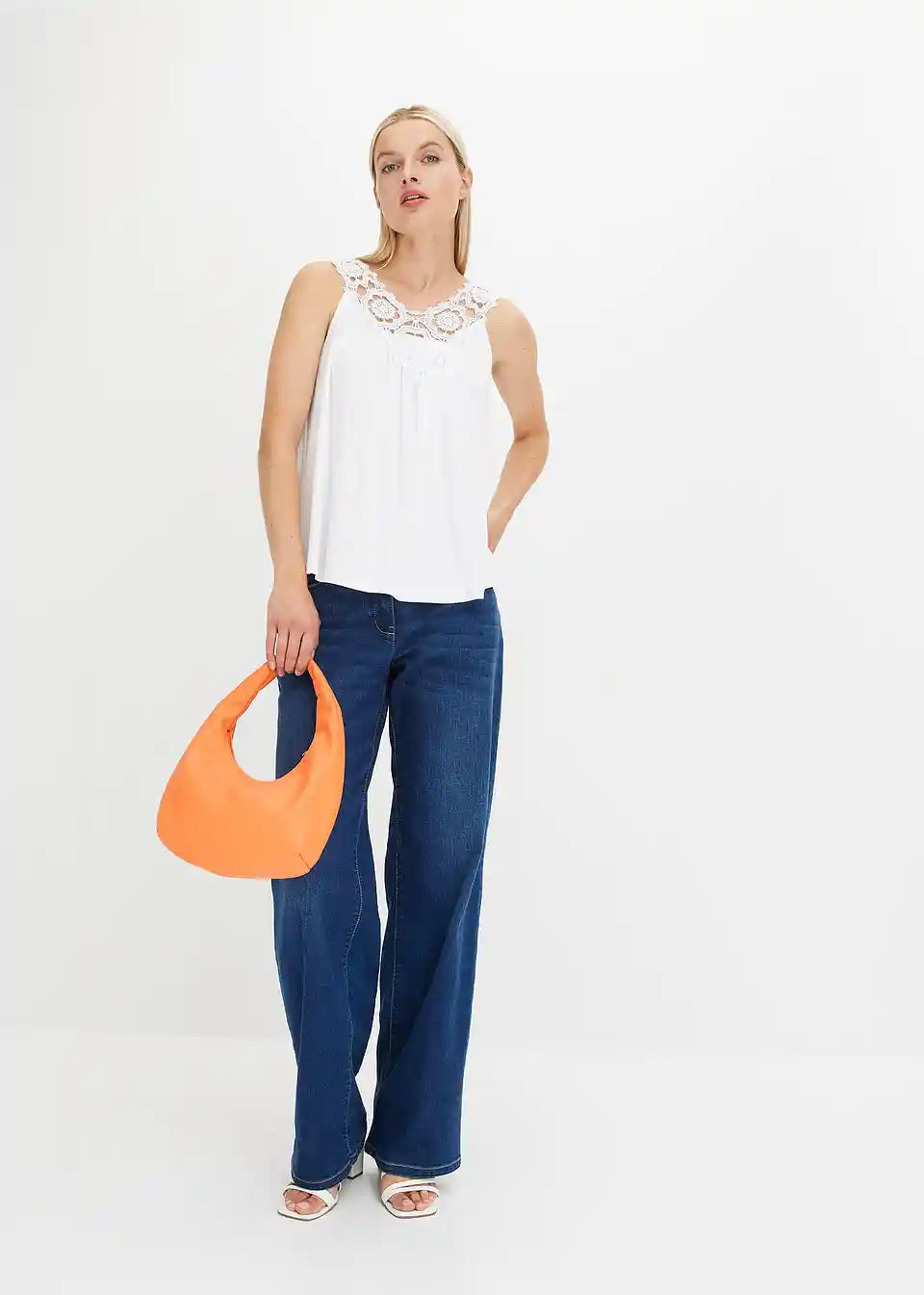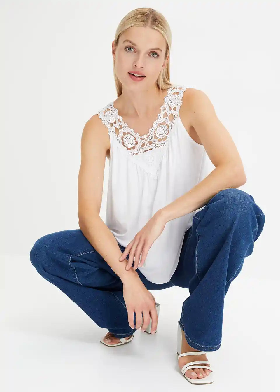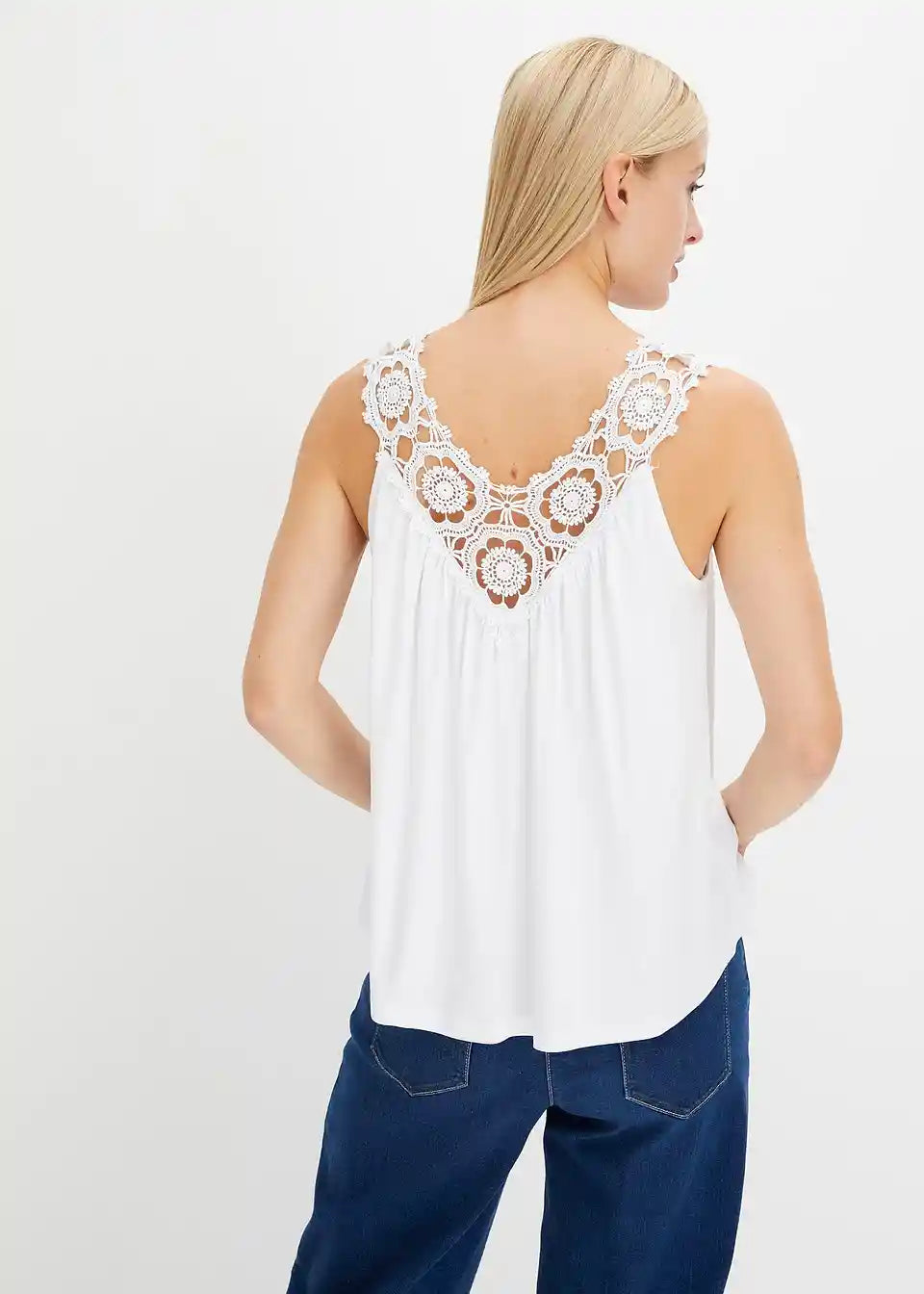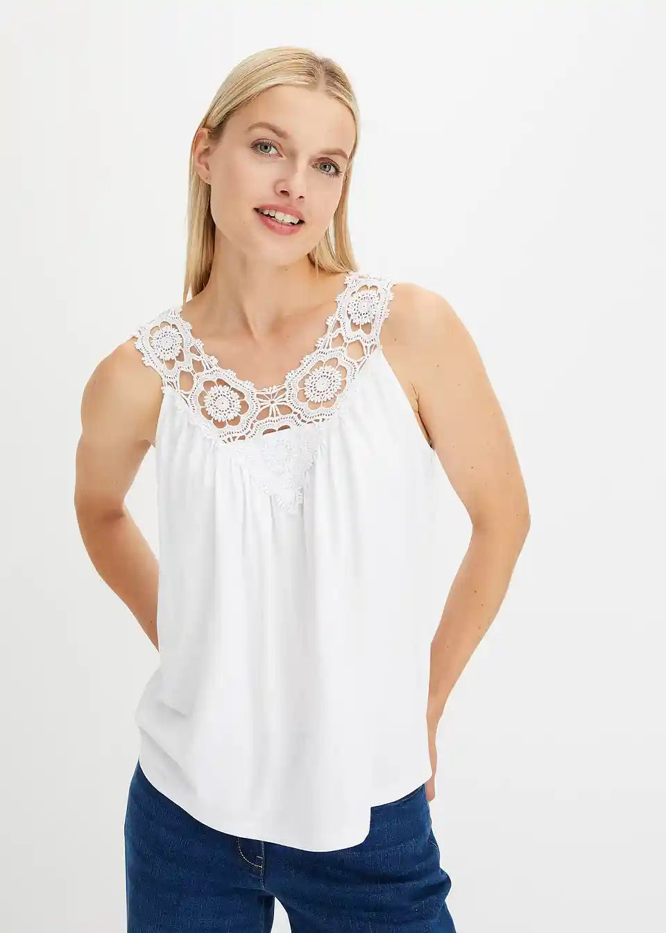 ljetni top s čipkom sprijeda i straga na V-izrezu